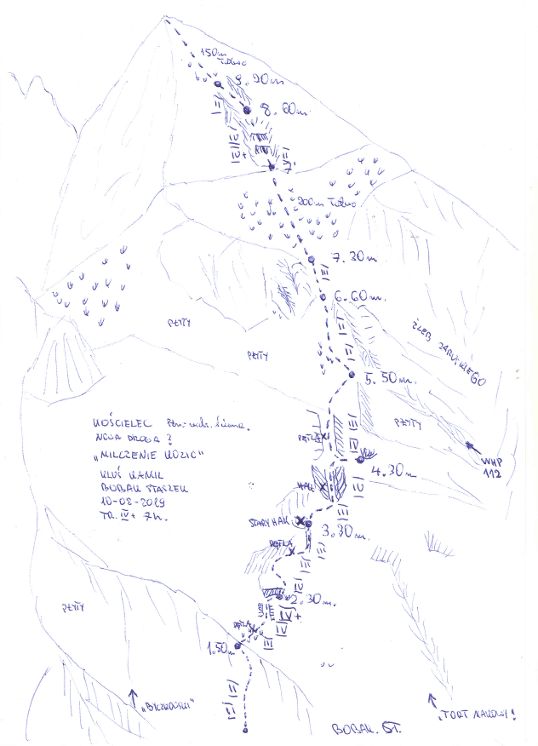 Wycena: M5   Wycena uzupełniająca: lato IV+   Asekuracja: R2   Długość [m]: 700   Wyciągi: 10   Czas [h]: 6   Wystawa: NE   Ocena: 6/10   Komentarz: