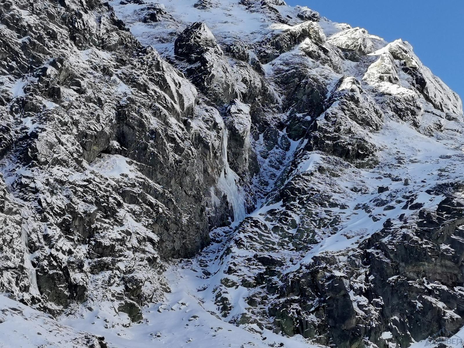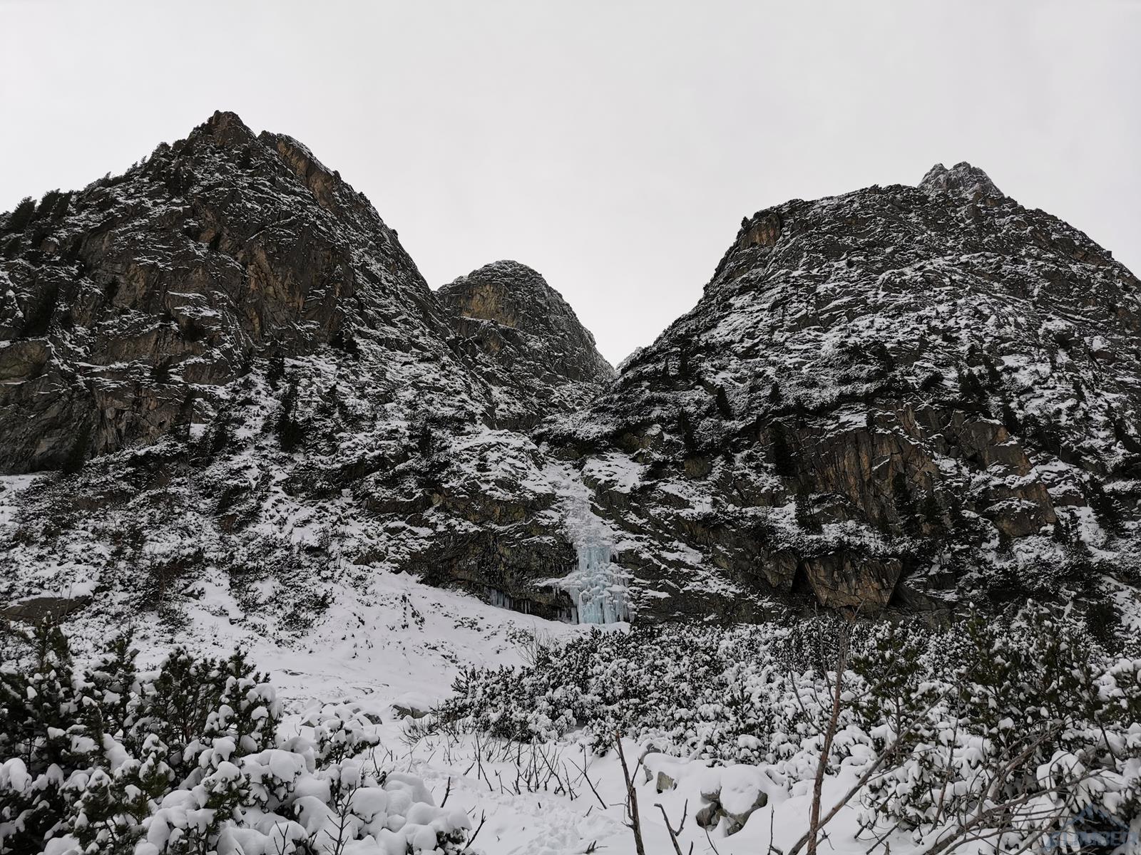 Kilka zdjęć z Doliny Wielickiej, w której przywitaliśmy Nowy Rok. Kiepskie warunki wspinaczkowe nie pozwoliły podziałać na żadnej z okolicznych ścian, na dodatek z powodu silnego wiatru i nawianego śniegu nie udało się nawet wyjść turystycznie powyżej górnego piętra doliny. Z powodu nagłego zamknięcia schronisk (znowu Covid) Słowację musimy opuścić już następnego dnia. W drodze powrotnej odwiedzamy Dolinę Staroleśną i przechodzimy słabo wylany Lodospad Veverki. Podchodzimy jeszcze pod droge mikstową na ścianie powyżej (Niżniej Królewskiej Baszcie), w zastanych warunkach brakło by nam jednak czasu by zrobić ją przed zmrokiem - tym razem więc odpuszczamy.