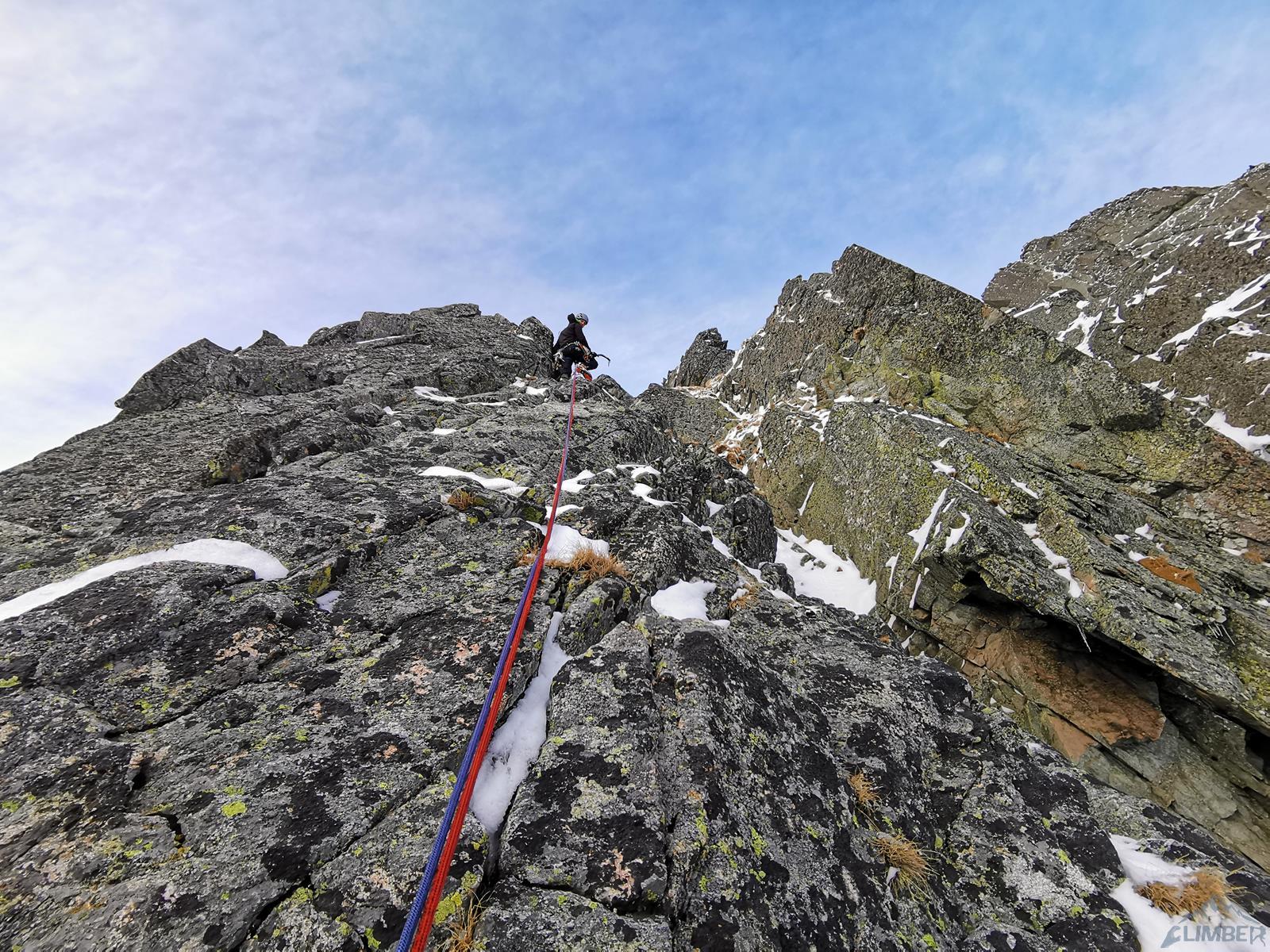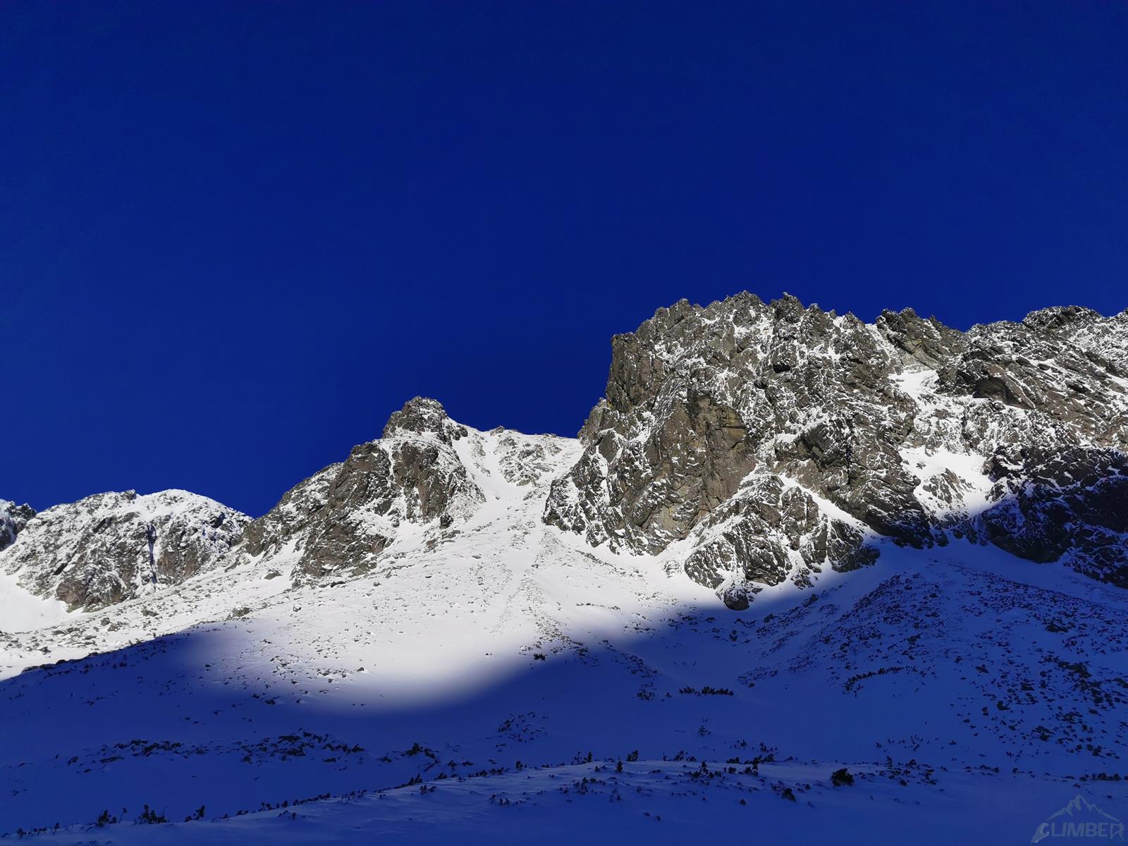 Warunki wspinaczkowe na większości ścian w Tatrach nadal są kiepskie, do tego doszedł mróz – sensowna opcja to więc droga po wypukłych formacjach na słonecznej wystawie. Udajemy się do Doliny Kieżmarskiej, na celownik obierając Południowy Filar Skrajnej Rzeżuchowej. Niestety na miejscu czekają przykre niespodzianki – dużo niższa temperatura niż zapowiadana (-17), nieprzedeptany szlak do Doliny Jagnięcej oraz pokryta luźnym śniegiem ściana, Słońce początkiem zimy jest bowiem za nisko. Nie odpuszczamy jednak ale torujemy wyżej pod Kozią Kopkę, na której świeci – próbujemy więc spróbować nietrudny, popularny latem Filar Puškáša.