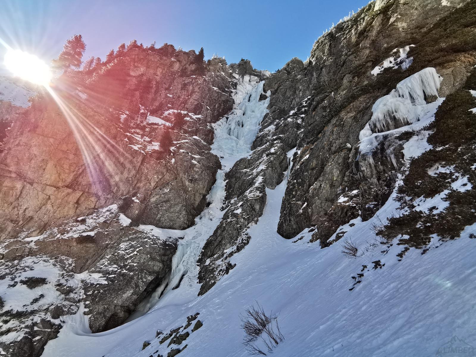 Wycena: WI3+   Wycena uzupełniająca: WI3/4+ II   Asekuracja: R2   Długość [m]: 100   Wyciągi: 2   Czas [h]: 2   Wystawa: E   Ocena: 7/10   Komentarz: