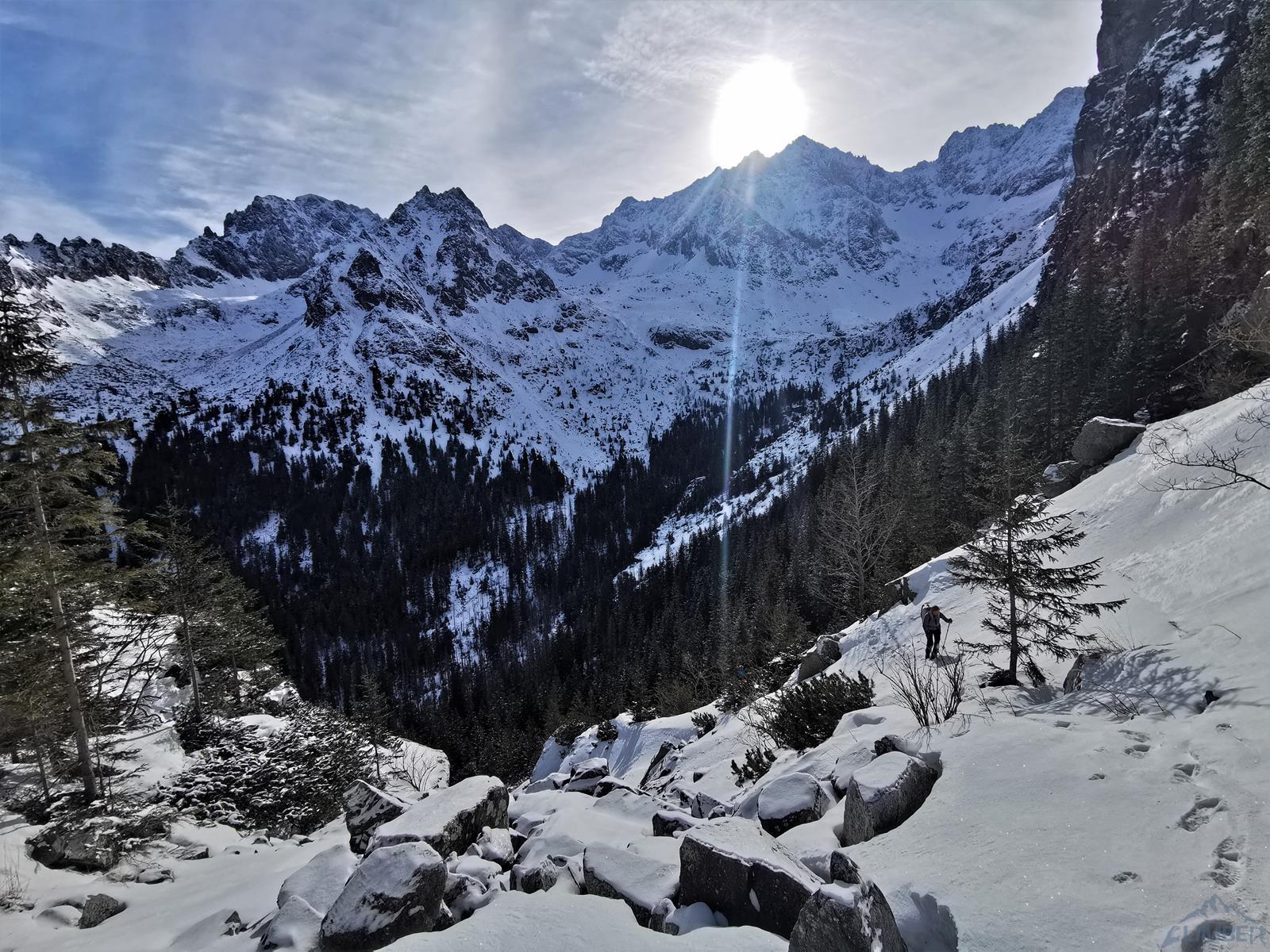 Wizyta w Białej Wodzie i Dolinie Ciężkiej – w planach była jedna z dróg na północnych ścianach, ale po kilku godzinach rekonesansu okazało się, że warunki na tych wystawach są fatalne (masy sypkiego śniegu). Na pocieszenie pozostało nam podziwianie świetnych widoków oraz przejście Ciężkiego Lodospadu (słow. Český ľad) – jednego z klasyków doliny, oferującego w zależności od stopnia wylania i wariantów trudności od WI3 do WI4+. Dla mnie to powrót na ten lód po latach, poprzednio byłem na nim w 2015 i 2016 – linkuję relacje dla porównania warunków.