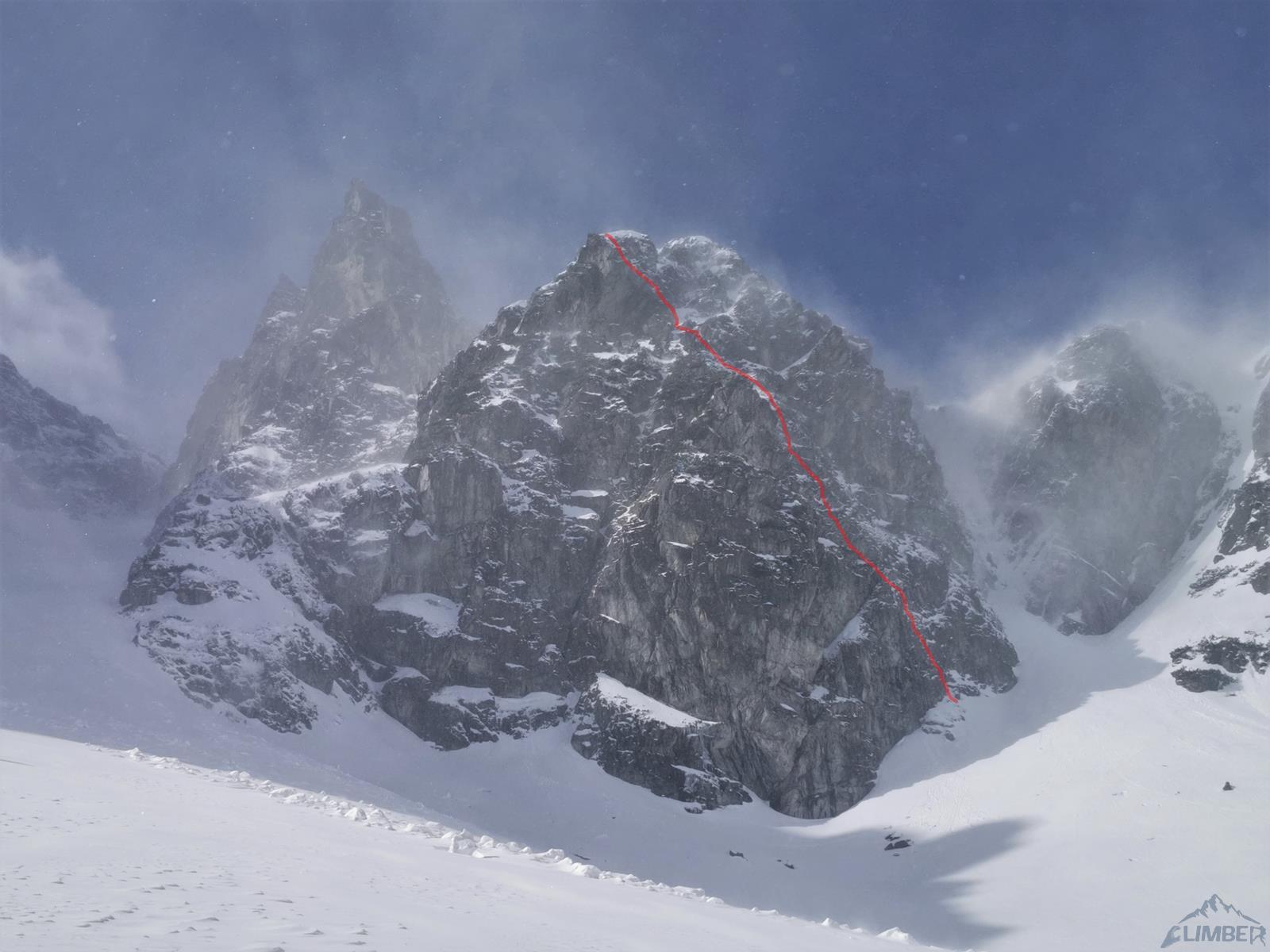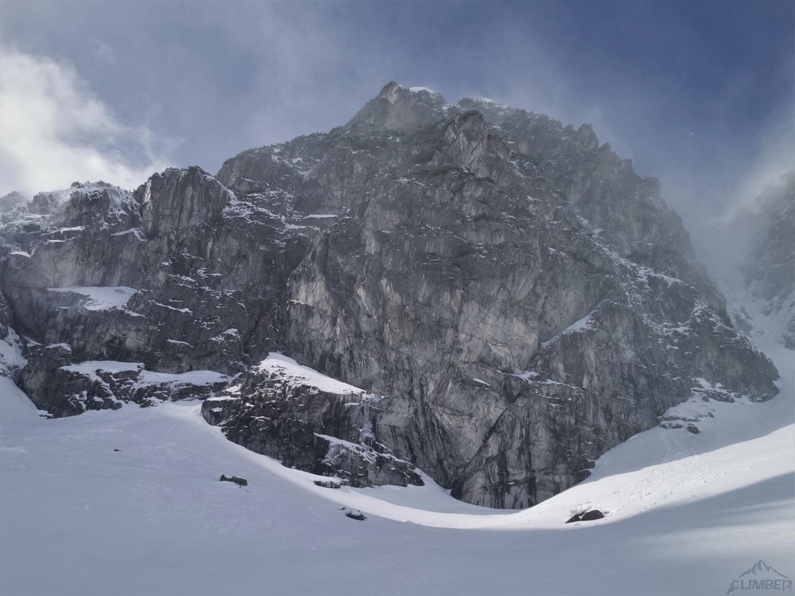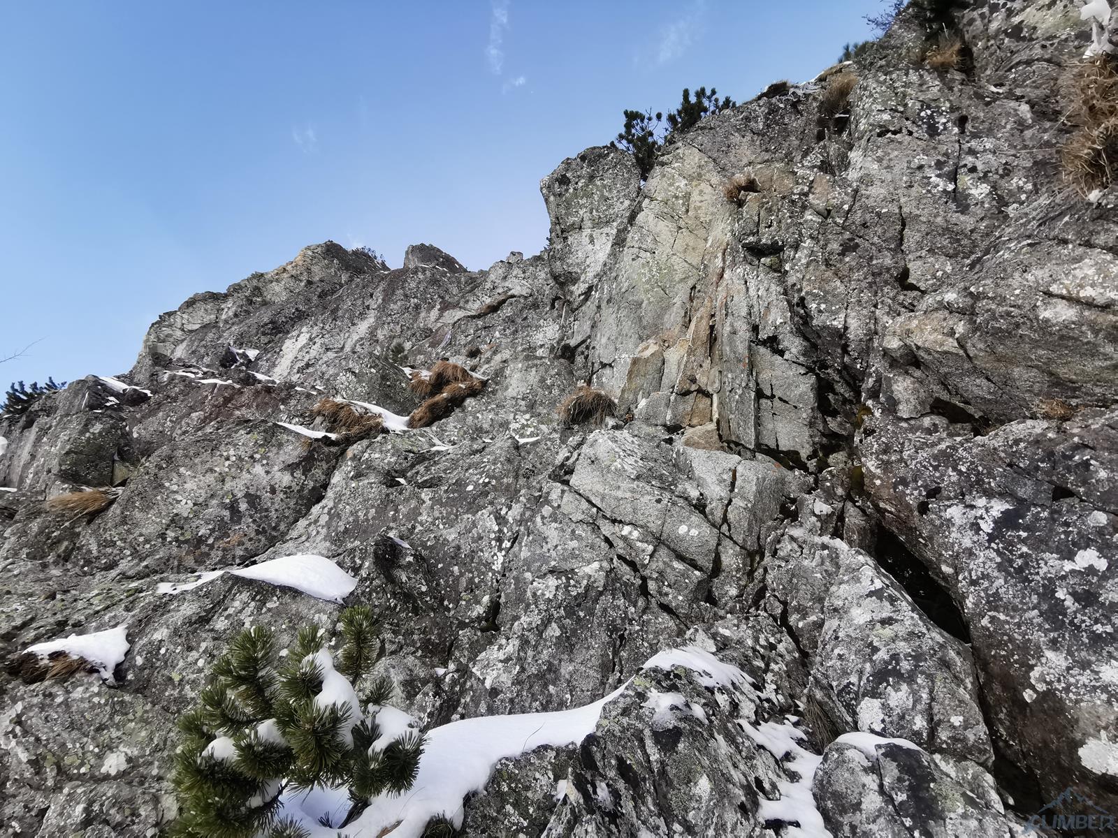 Początkiem kwietnia zima nadal w natarciu, w wielkanocny poniedziałek udajemy się więc ponownie do Morskiego Oka, podobnie jak tydzień wcześniej z zamiarem wspinania na Czołówce MSW. Ostatnio do zmiany planów zmusił nas opad śniegu, tym razem – mocny wiatr zrzucający ze ściany porządne pyłówki, próba rozpoczęcia wspinania kończy się szybkim wycofem. Przenosimy się więc na coś łatwiejszego i mniej narażonego na wiatr – nową (12.2020) drogę na Progu Mnichowym, Smutnej Zabawy (M5), łączącą się po trzech wyciągach z popularnym klasykiem, Wesołej Zabawy (M4+). PS. W Przewodniku Kuby Radziejowskiego pojawiło się info, że kluczowy wyciąg na Smutnej Zabawie to mocne 6.