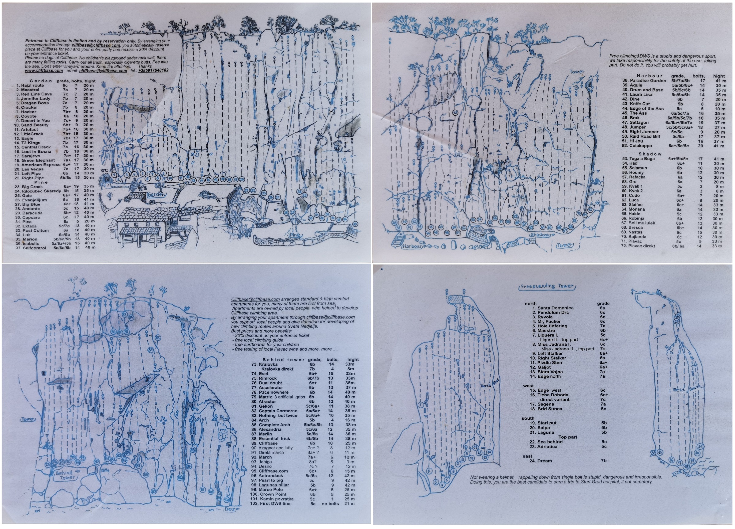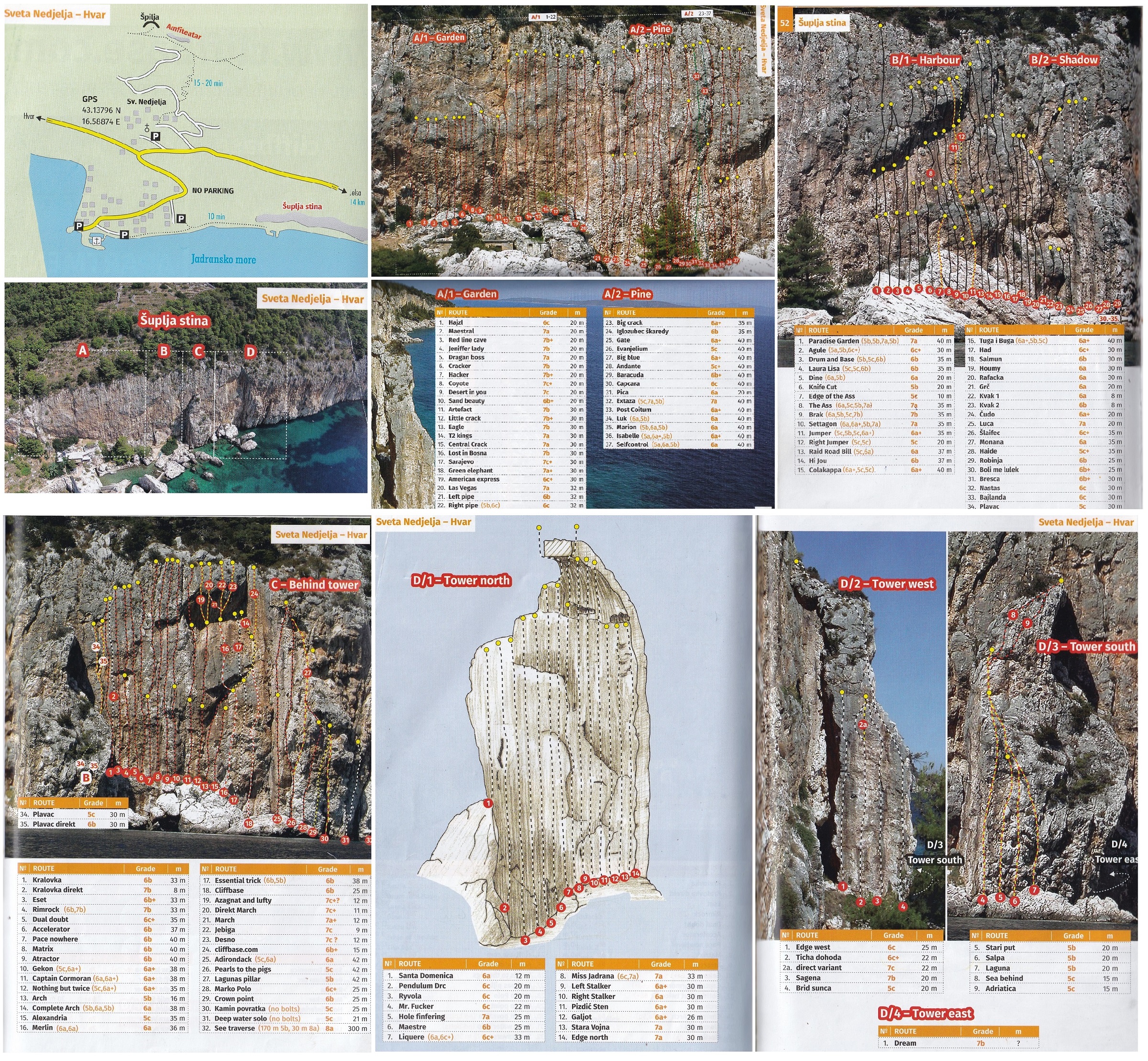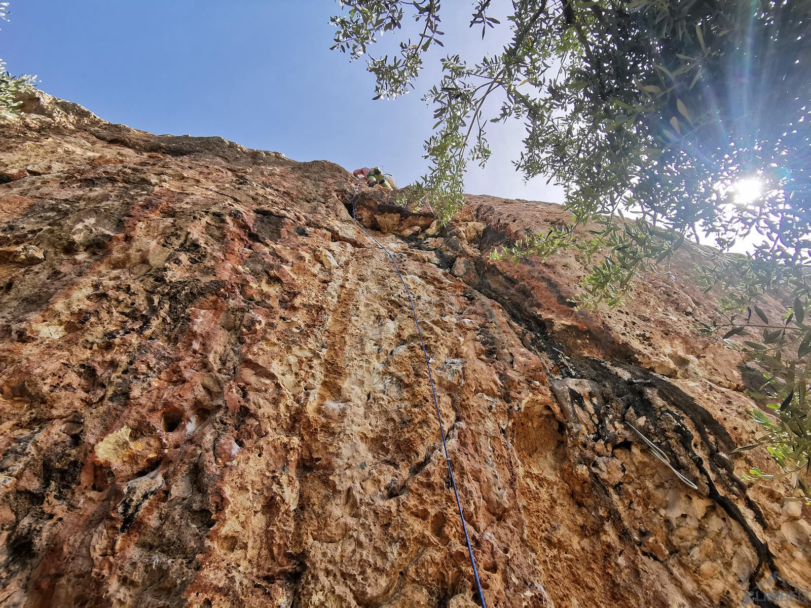 Šuplja Stina to sektor prywatny, za wspinanie płacimy wspomnianemu gospodarzowi, Mirowi - szczegóły i dane kontaktowe na oficjalnej stronie miejscówki, TUTAJ. Do dyspozycji mamy ok. 150 gęsto wciśniętych dróg, z czego większość oscyluje w trudnościach 5c-7a, szczegóły w topo - załączam zarówno to dostępne na miejscu, jak i ze wspomnianego przewodnika Čujića. Ściana ma wystawę południową i podzielona jest na kilka sektorów - Garden (same trudne drogi), centralne Pine i Harbour, położone w prawej części Shadow i Behind Tower oraz wieżę - Tower. Pierwsze trzy sektory są mocno nasłonecznione, przed Słońcem można schować się na tych kolejnych - w "korytarzu" za wieżą oraz na jej północnej i zachodniej wystawie. Podczas 3 dni wspinania, z powodu początku sezonu i żyłki eksploratorskiej nastawiliśmy się na ilość, dzięki czemu zwiedziliśmy sporo dróg w przedziale 5b-7a. Większość dróg była bardzo ładna, w lekkim przewieszeniu i po dobrych chwytach - te położone obok siebie warto było filtrować bo przeważnie były bardzo podobne. Posiadając 60-metrową linę konieczne było również zwracanie uwagi czy drogi 40-metrowe (których nie brakuje) da się zrobić do 1 lub 2 stanowiska - na szczęście w większości jest to możliwe, a w topo osobno wycenione są poszczególne wyciągi.