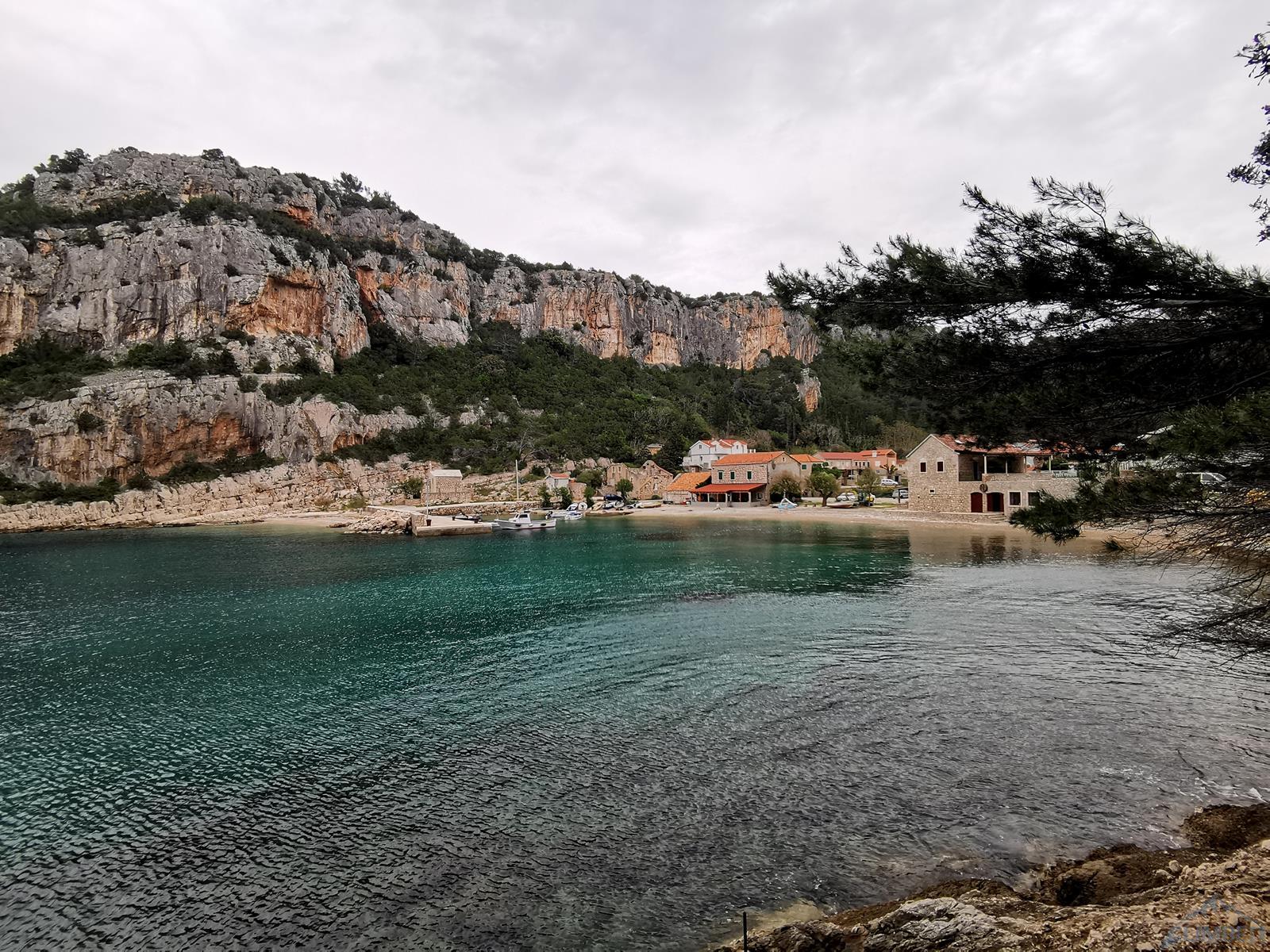 Co prawda można spać u gospodarza, tuż pod samą ścianą, my jednak zdecydowaliśmy się na wynajęcie apartamtentu w Svetej Nedjelji, z której pod ścianę idzie się kilka minut ścieżką i skałami wzdłuż wybrzeża. Na Hvarze znajdziemy jeszcze kilka innych niewielkich rejonów skalnych (szczegóły w przewodniku Borisa Čujića i np. TUTAJ), w tym jeden stale rozwijający się i posiadający większy potencjał - Velika Stiniva. Odwiedziliśmy go w ramach urozmaicenia jednego z dnia spędzonych na wyspie, pozostałe trzy wspinaliśmy się na Cliffbase.