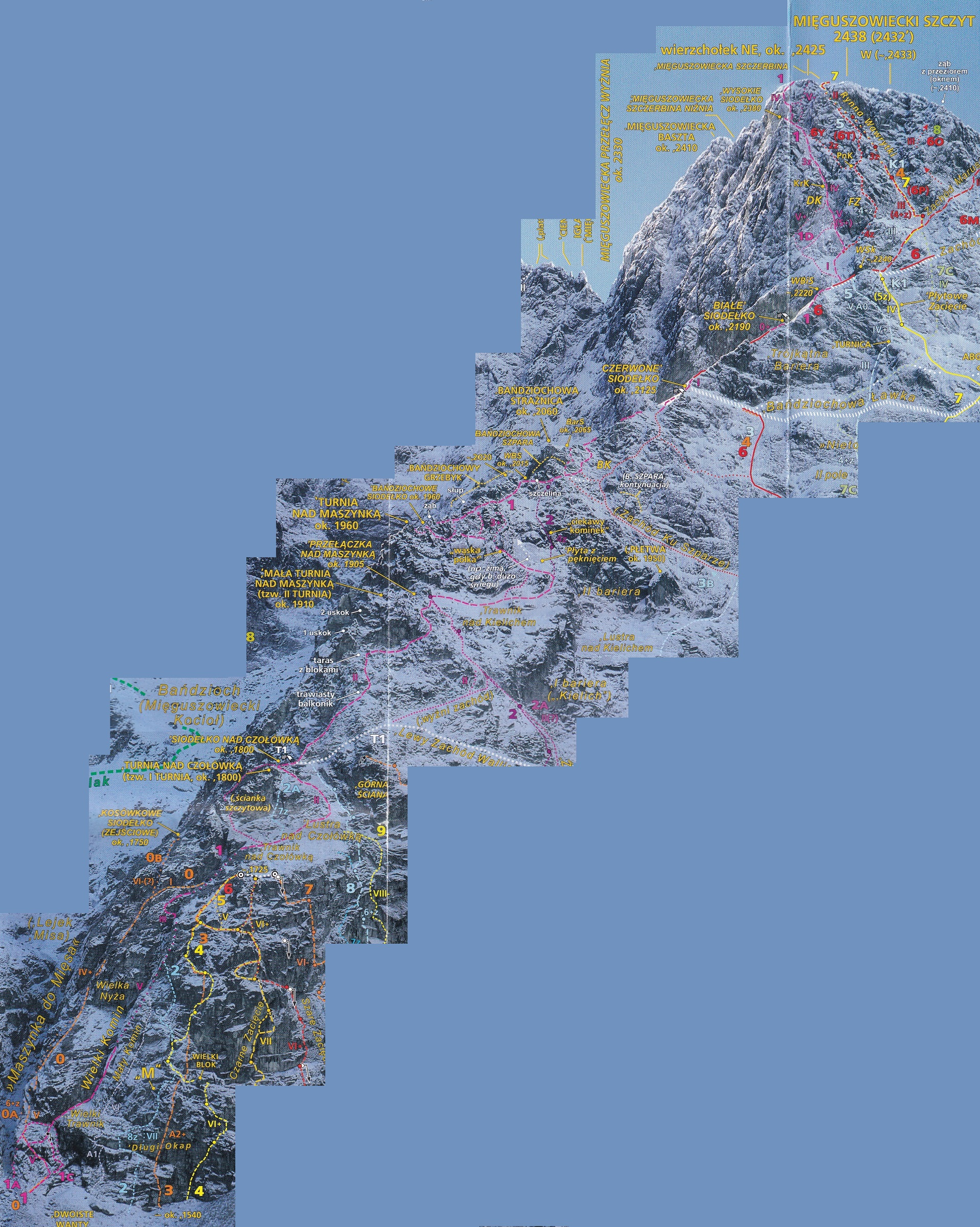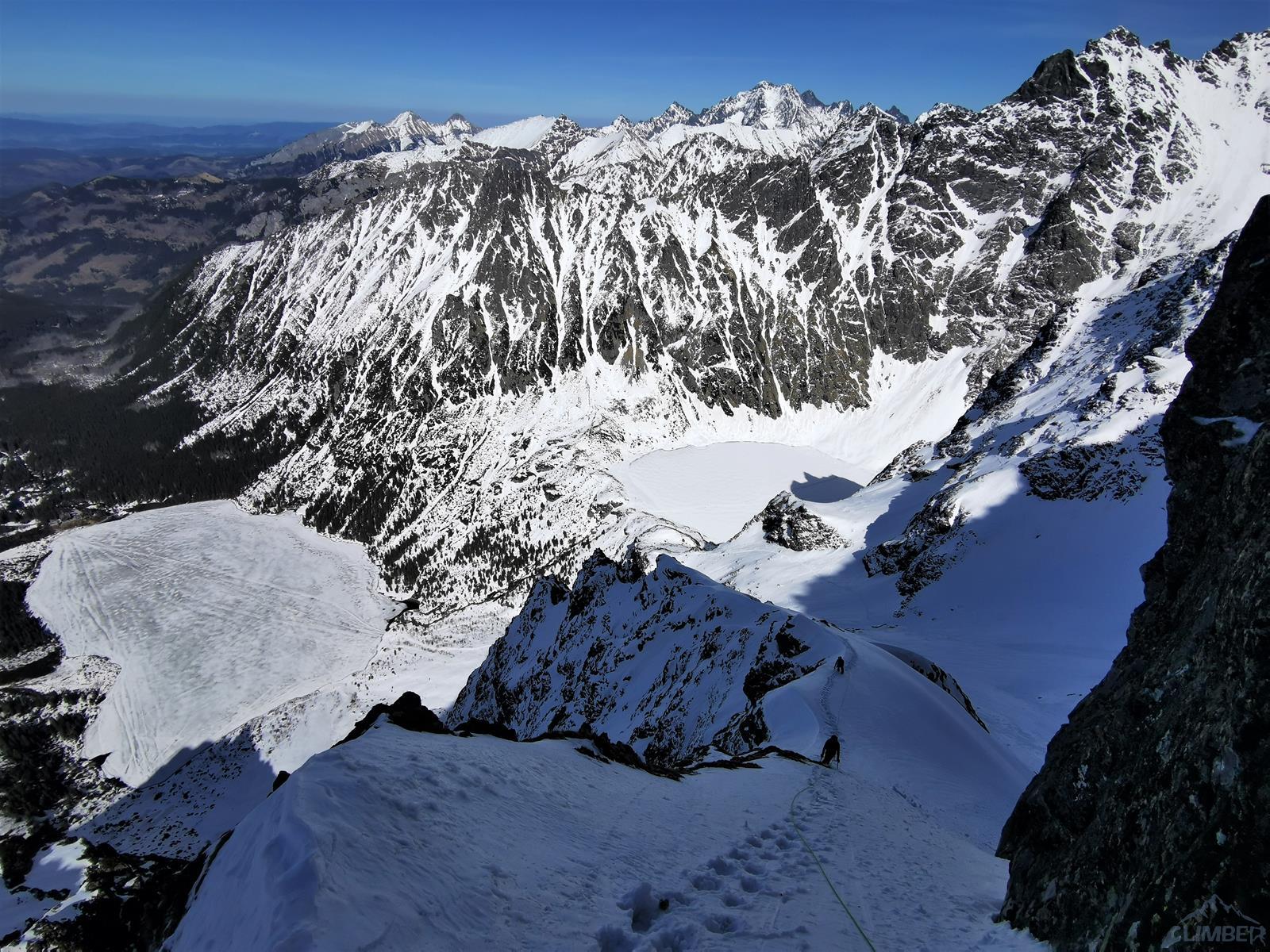 Filar MSW to oczywiście przygoda pierwsza klasa i choć samo wspinanie nie jest na niej szczególnie trudne, a miejscami bywa niezbyt przyjemne - linia jest kapitalna, wystarczy popatrzeć na nią z Włosienicy i serce szybciej bije! By jednak na drodze zapewnić sobie głównie pozytywne wrażenia i nie zabawić na niej tyle co my (15 godzin, standardowo 10-12) sugeruję robić ją w optymalnych warunkach.