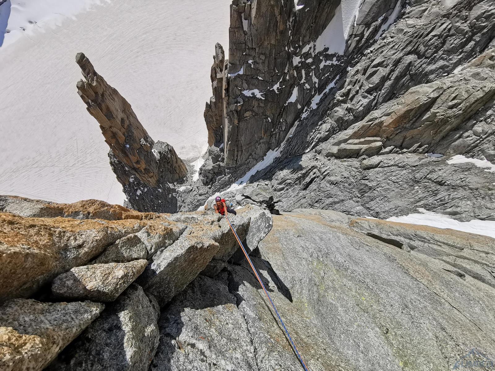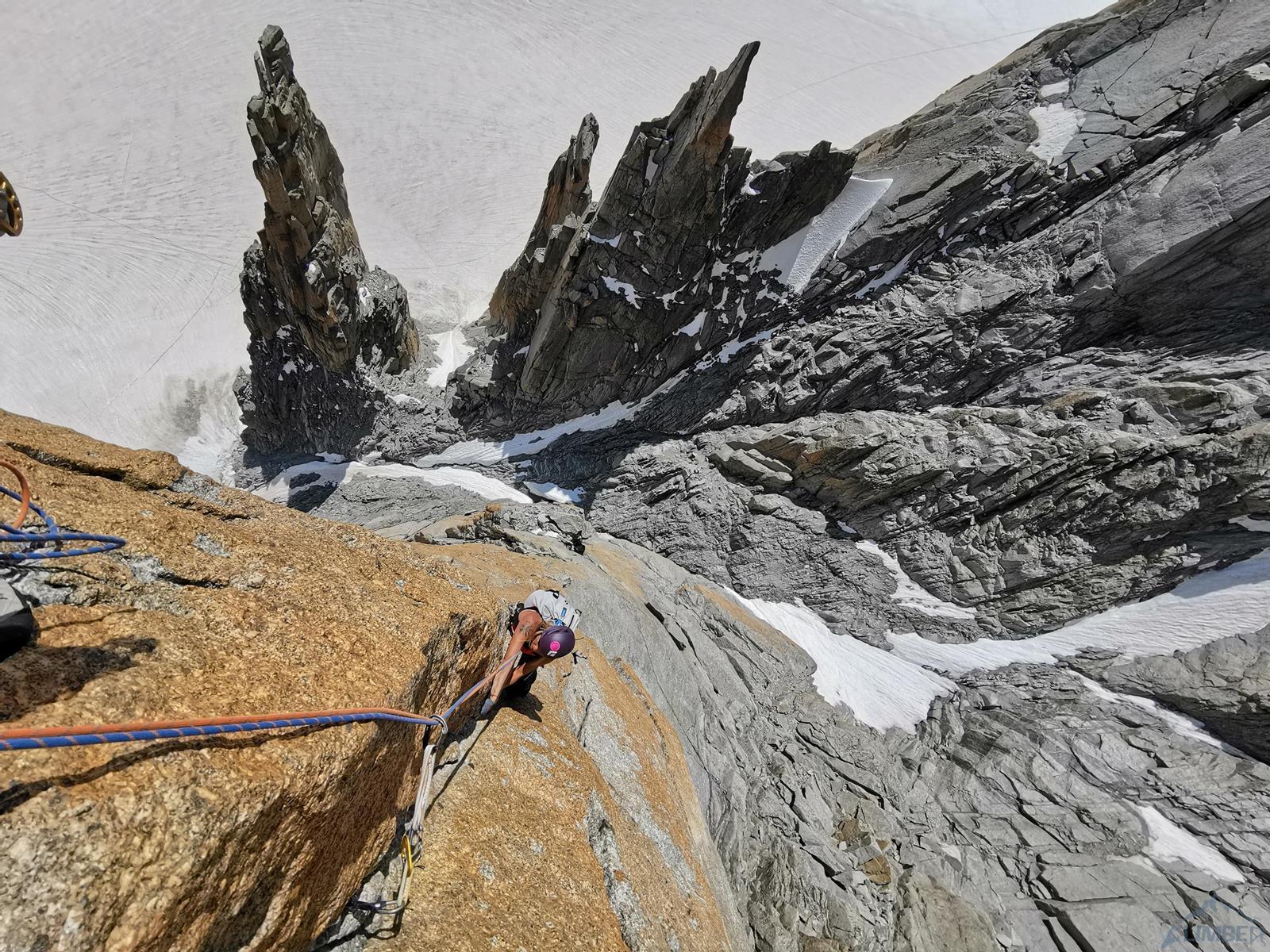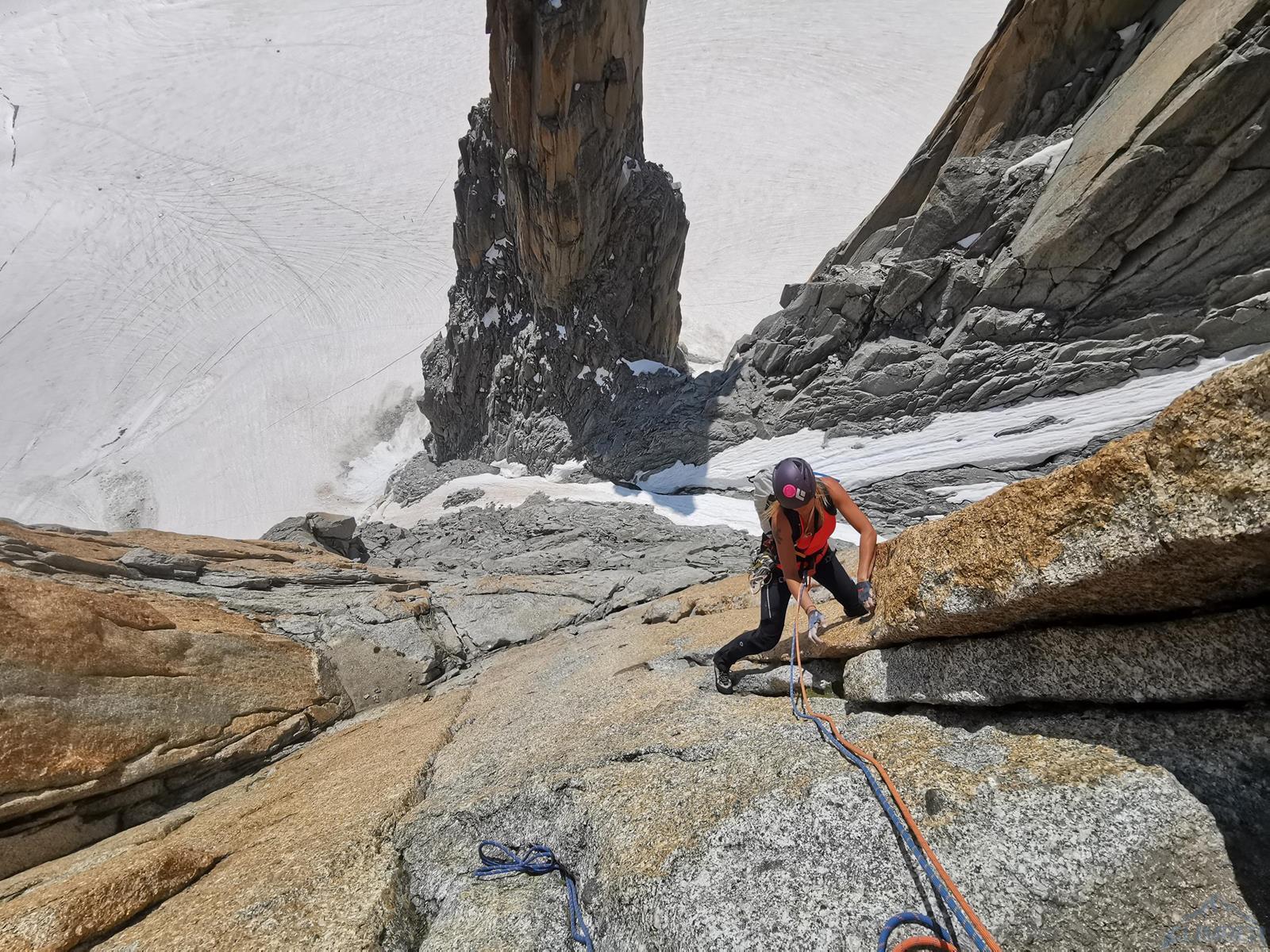 Grand Capucin to według wielu najładniejsza turnia w rejonie Mont Blanc oraz pozycja obowiązkowa dla każdego ambitnego górskiego łojanta 😉. Jej wschodnia ściana jest jednym ze wspinaczkowych symboli Alp i oferuje sporo pięknych dróg w doskonałej jakości granicie - w tym trudne, światowe klasyki. Najprostszym i najbardziej popularnym sposobem zdobycia szczytu jest przejście kombinacji Drogi Szwajcarskiej (6b+A0/~7b) i O Sole Mio (6c) na ścianie południowo-wschodniej – łącząc te dwie drogi uzyskujemy piękną linię o przystępnych trudnościach (6a+). Na początek do pokonania mamy kilka wyciągów dojściowych, później czeka nas już jednak wspinaczkowa uczta w słynnym pomarańczowym granicie. Kto raz spróbuje – na pewno będzie chciał wrócić!