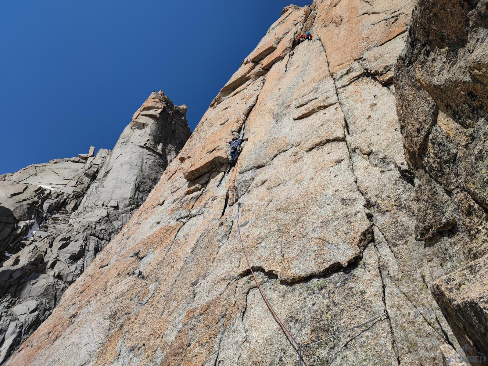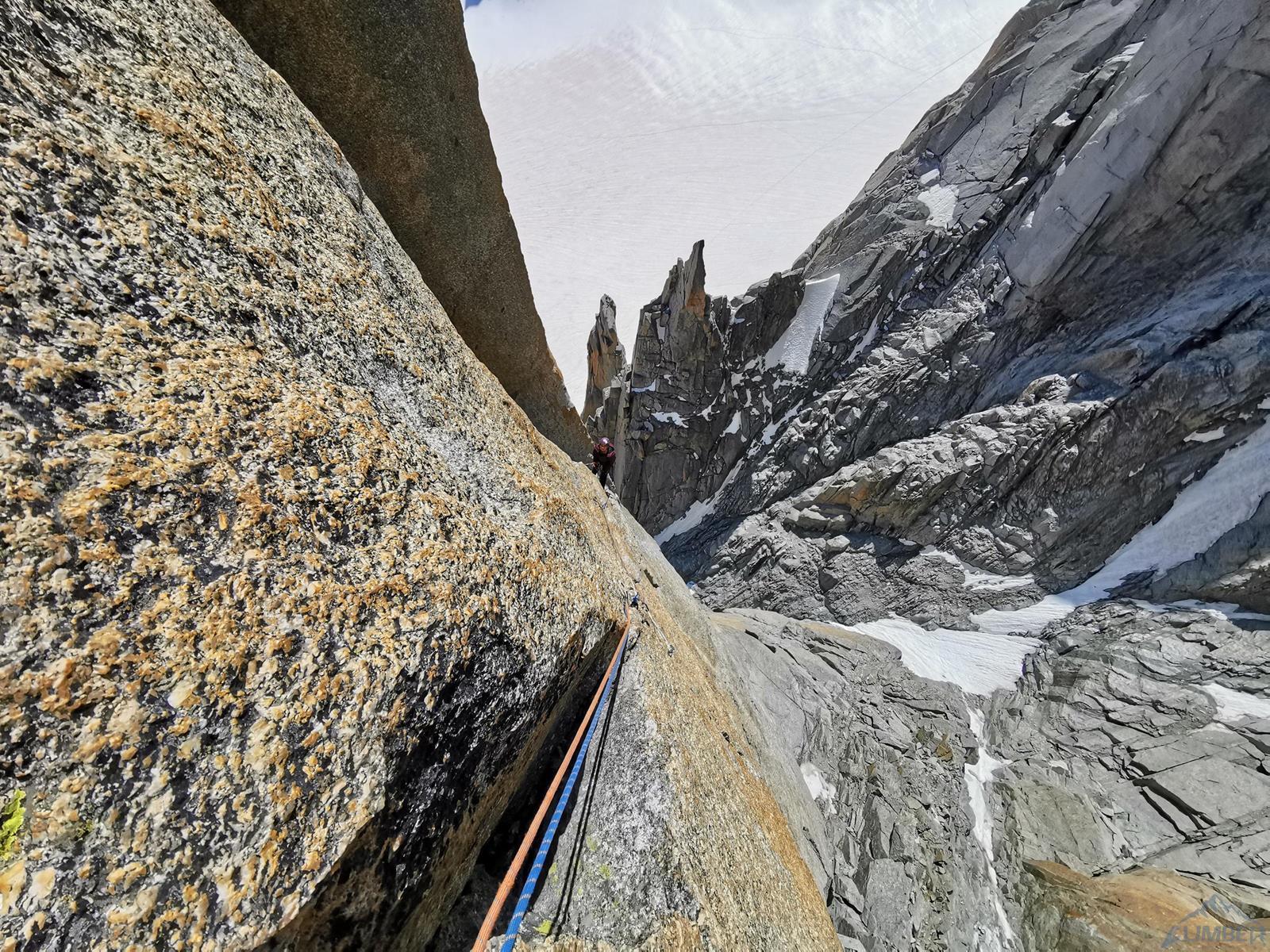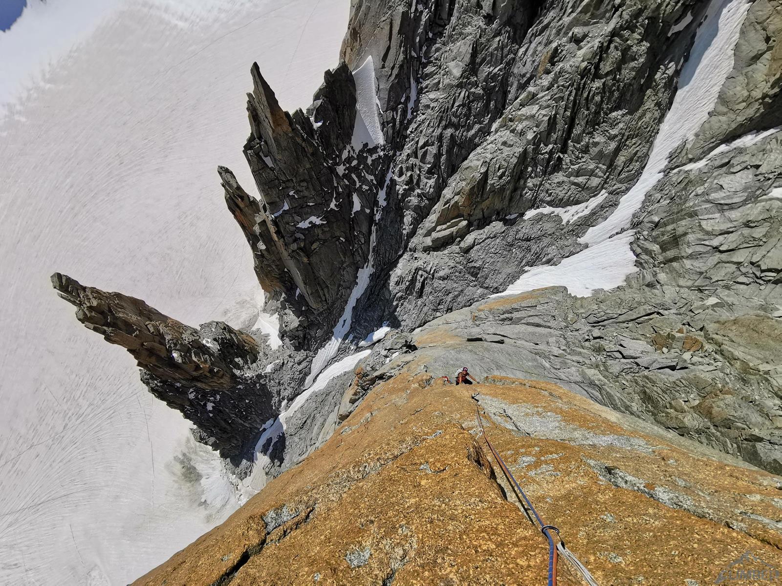 Grand Capucin to według wielu najładniejsza turnia w rejonie Mont Blanc oraz pozycja obowiązkowa dla każdego ambitnego górskiego łojanta 😉. Jej wschodnia ściana jest jednym ze wspinaczkowych symboli Alp i oferuje sporo pięknych dróg w doskonałej jakości granicie - w tym trudne, światowe klasyki. Najprostszym i najbardziej popularnym sposobem zdobycia szczytu jest przejście kombinacji Drogi Szwajcarskiej (6b+A0/~7b) i O Sole Mio (6c) na ścianie południowo-wschodniej – łącząc te dwie drogi uzyskujemy piękną linię o przystępnych trudnościach (6a+). Na początek do pokonania mamy kilka wyciągów dojściowych, później czeka nas już jednak wspinaczkowa uczta w słynnym pomarańczowym granicie. Kto raz spróbuje – na pewno będzie chciał wrócić!
