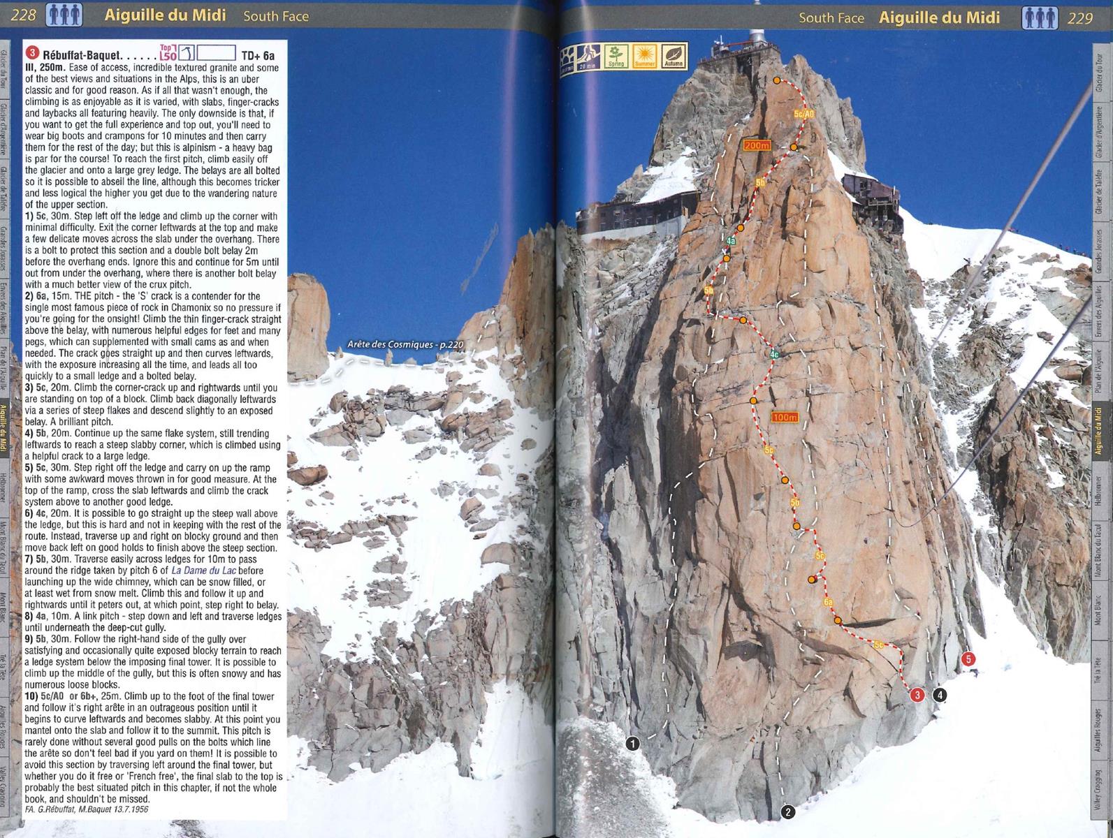Wspinanie na Rébuffacie najlepiej zaczynać bardzo wcześnie (z pierwszej kolejki lub wprost ze schroniska) lub dużo później – mamy wtedy szansę uniknięcia korków. My startujemy przed południem, dzięki temu większość zespołów jest już w górnej części ściany. Dodatkowo decydujemy się rozpocząć wspinanie u samej podstawy ściany – pięknym zacięciem, które doprowadzi nas do „standardowego” stanowiska startowego. Prowadzę wszystkie wyciągi – Ani droga co prawda bardzo się podoba, nie ma jednak zaufania do wyślizganej skały i nie chce psuć sobie wrażeń niepotrzebnym stresem.