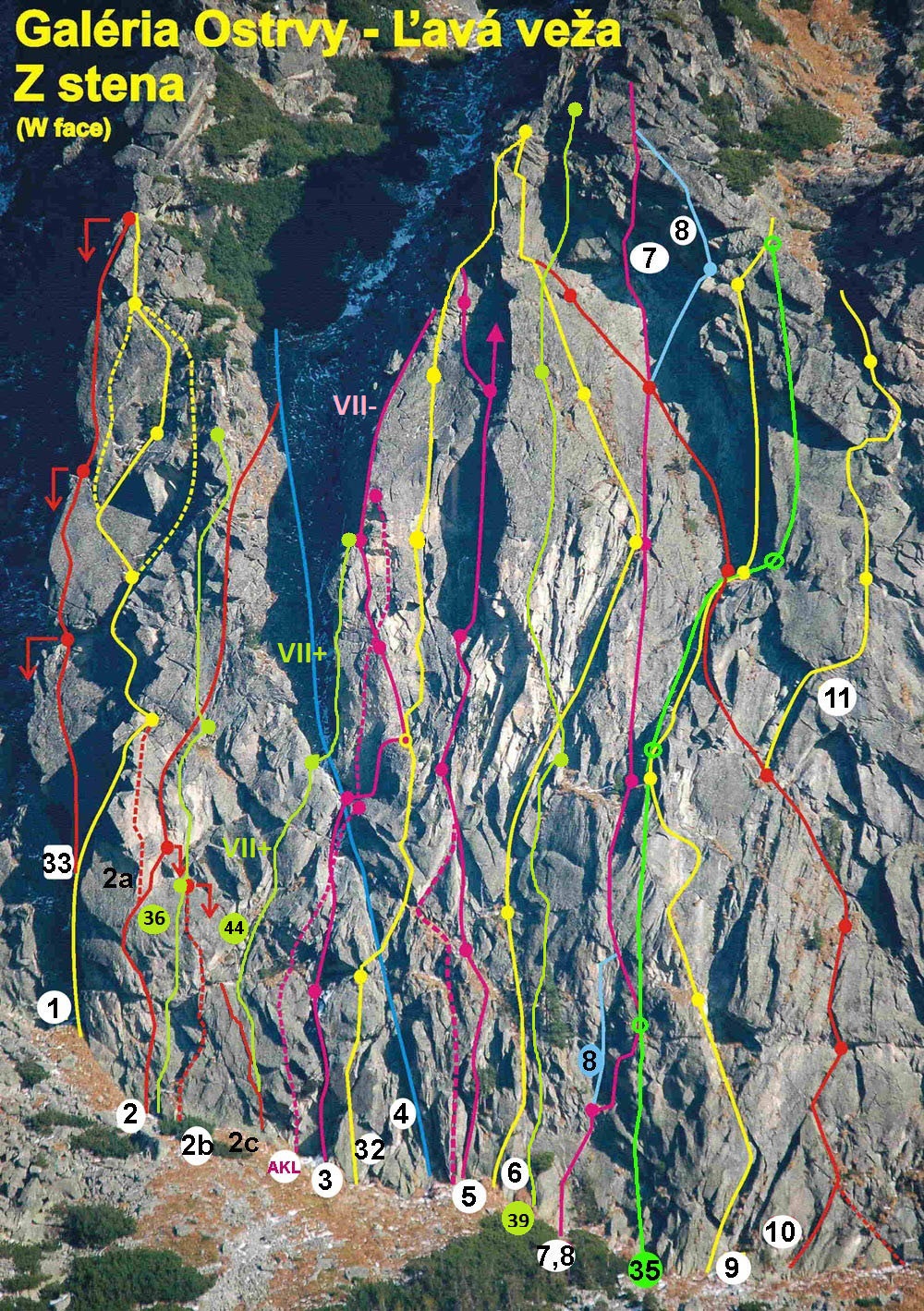 Drugi wyciąg (VII+, ok. 25 metrów, 5 spitów) prowadzi pięknym, choć trochę porośniętym kantem – jest bardzo powietrznie ale chwyty są dobre, w naszym przypadku problemem są jedynie wysoka wilgotność i niska temperatura powodujące nadmierne bułowanie, udaje się przejść od strzału ale zajmuje to sporo czasu. Z drugiego stanowiska możemy zjechać (na dwa razy lub pełne 60 metrów) ale logiczna i ciekawa opcja to kontynuowanie kantem do góry – kluczowym wyciągiem drogi Foxuv sen (VII-). W tym przypadku czeka nas bardzo ładny odcinek – zaczynami ścianką wprost (1 spit) i kontynuujemy rysą na własnej aż do wyjścia w połogie płyty. Tutaj możemy kontynuować łatwym terenem na szczyt turni lub przejść trawersem w prawo do stanowiska z pięknej drogi Správny čas, zlokalizowanego pod przewieszoną ścianką. Na ziemię wracamy dwoma długimi zjazdami.