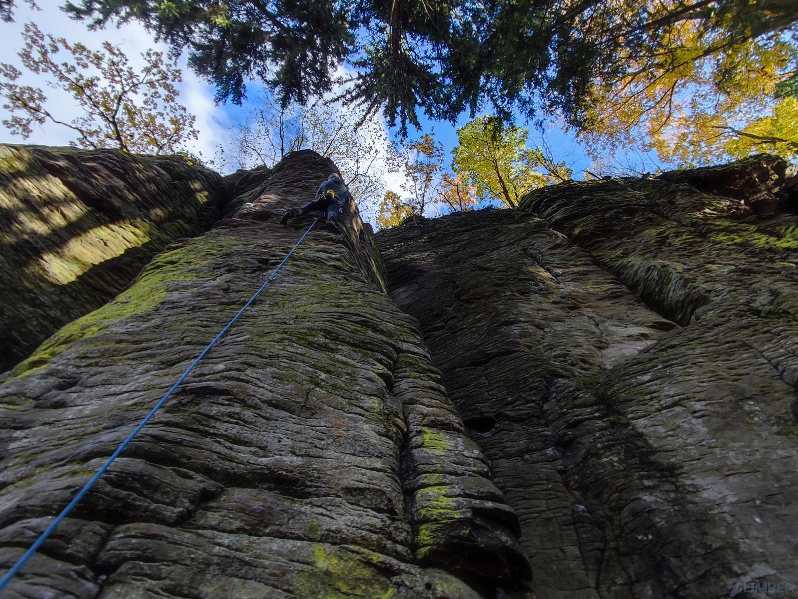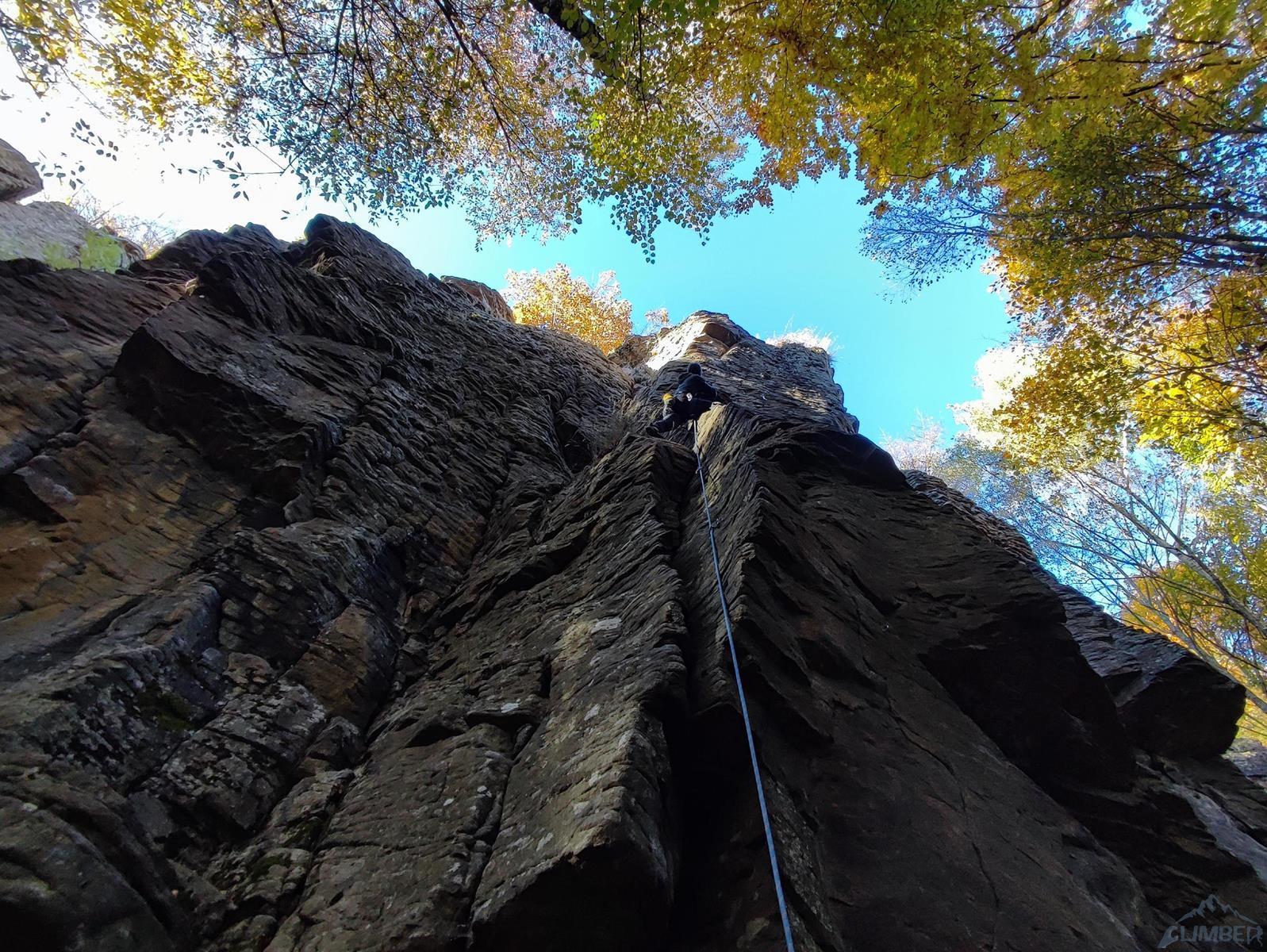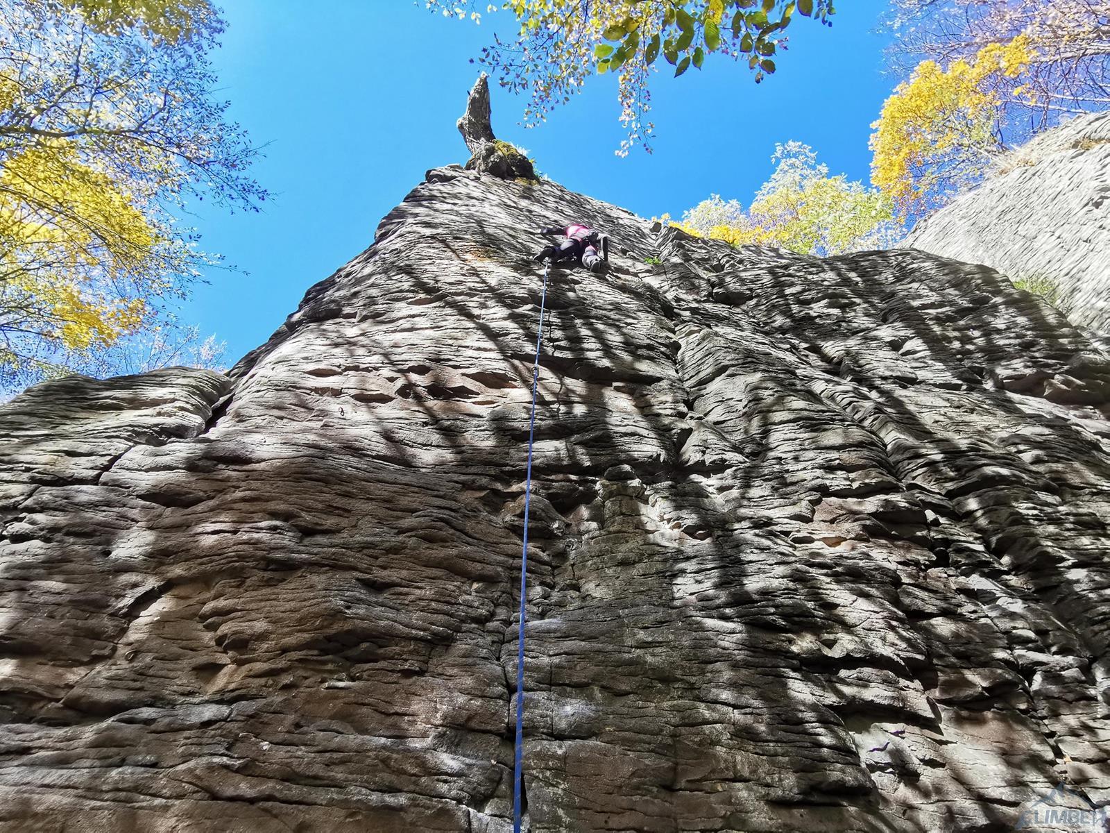 Dwa największe sektory w Kalamárce to Horné i Dolné skaly, kolejne trzy to Južné i Boriakove oraz Melichova. Póki co udało mi odwiedzić się te dwa pierwsze – nagromadzenie klasyków i ładnych dróg jest tak spore, że na pierwsze wizyty wystarczy. Niektóre drogi oznaczone są tabliczkami na skale, na Internecie znaleźć można trochę starych schematów, najlepiej jednak wyposażyć się w bardzo dobrze opracowany przewodnik, zaktualizowany ostatnio w roku 2020 – szczegóły na oficjalnej stronie rejonu TUTAJ. Krótka charakterystyka rejonu pojawiła się kiedyś w magazynie Góry, wstęp do artykułu TUTAJ, na dobre opracowanie z którego również korzystałem natrafiłem dodatkowo TUTAJ. Nocować można w jednej z wynajmowanych chat na miejscu lub w pobliskich miejscowościach, możliwe jest również rozbijanie się z namiotami na polanie przy parkingu - szczegóły oraz informacje na temat dojazdu na przywołanej już stronie.