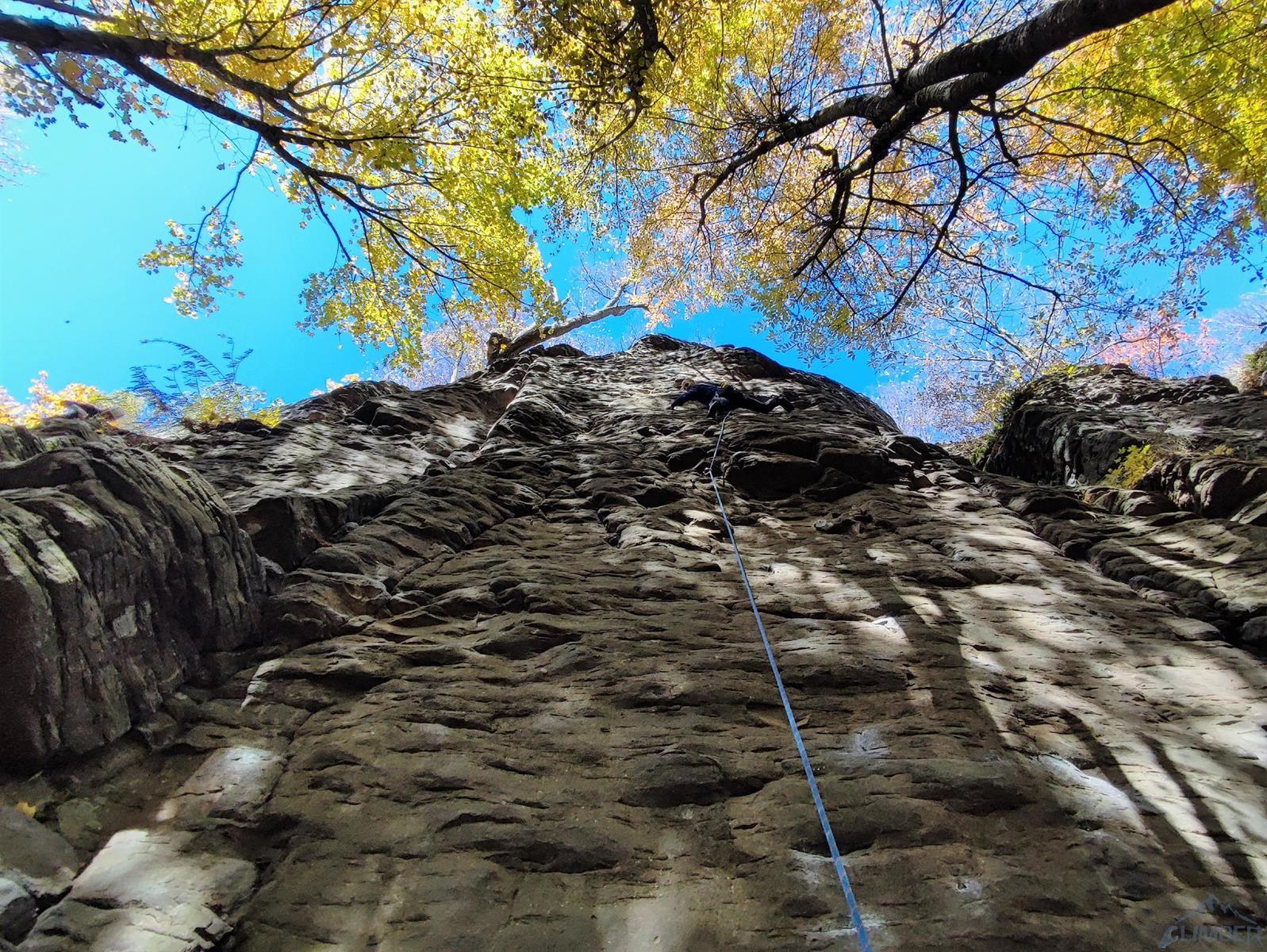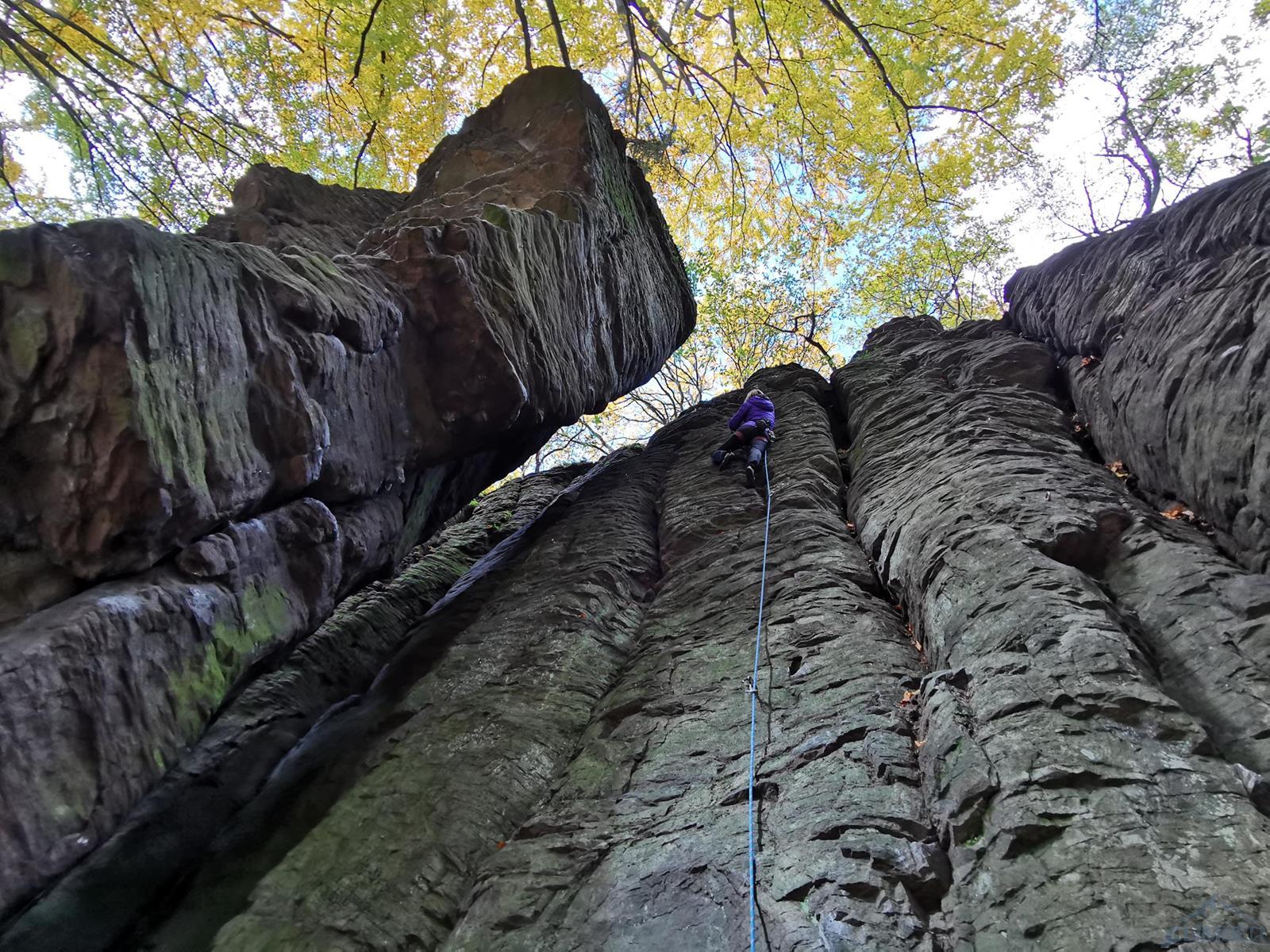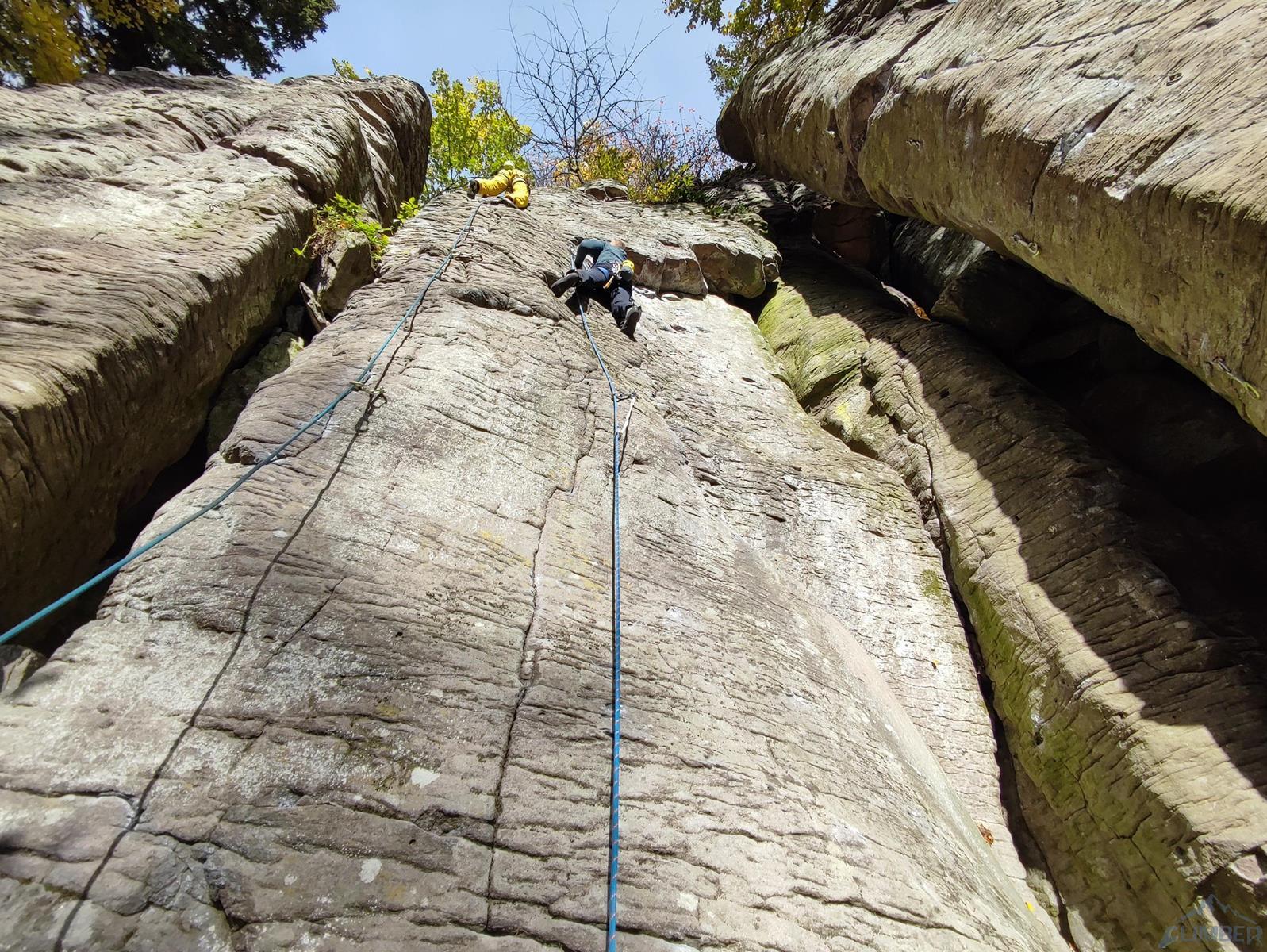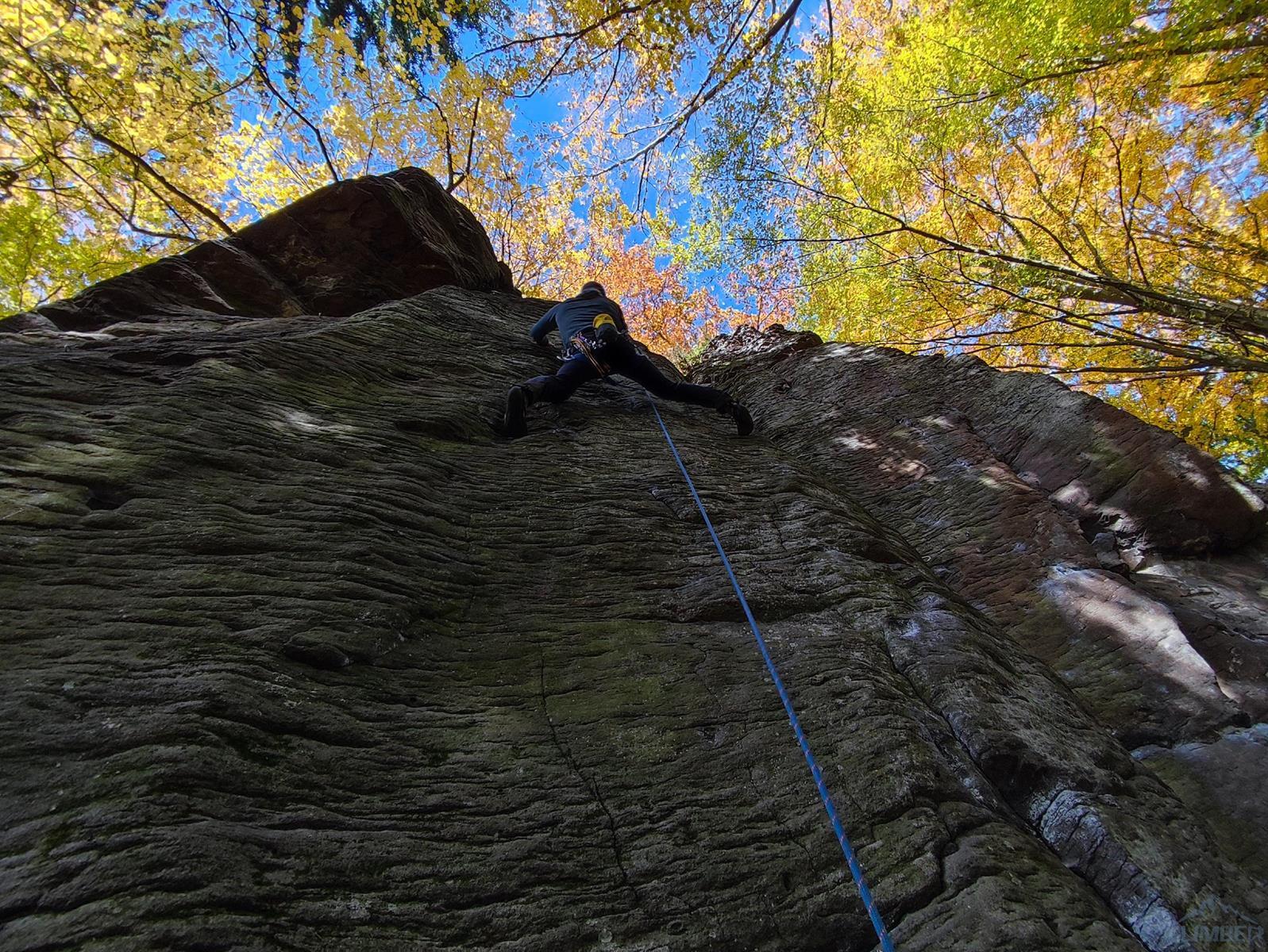 Dwa największe sektory w Kalamárce to Horné i Dolné skaly, kolejne trzy to Južné i Boriakove oraz Melichova. Póki co udało mi odwiedzić się te dwa pierwsze – nagromadzenie klasyków i ładnych dróg jest tak spore, że na pierwsze wizyty wystarczy. Niektóre drogi oznaczone są tabliczkami na skale, na Internecie znaleźć można trochę starych schematów, najlepiej jednak wyposażyć się w bardzo dobrze opracowany przewodnik, zaktualizowany ostatnio w roku 2020 – szczegóły na oficjalnej stronie rejonu TUTAJ. Krótka charakterystyka rejonu pojawiła się kiedyś w magazynie Góry, wstęp do artykułu TUTAJ, na dobre opracowanie z którego również korzystałem natrafiłem dodatkowo TUTAJ. Nocować można w jednej z wynajmowanych chat na miejscu lub w pobliskich miejscowościach, możliwe jest również rozbijanie się z namiotami na polanie przy parkingu - szczegóły oraz informacje na temat dojazdu na przywołanej już stronie.