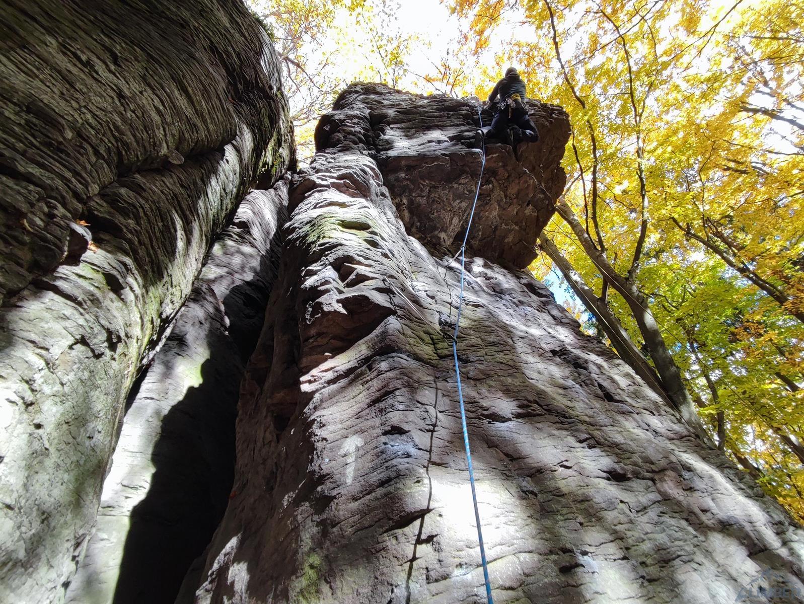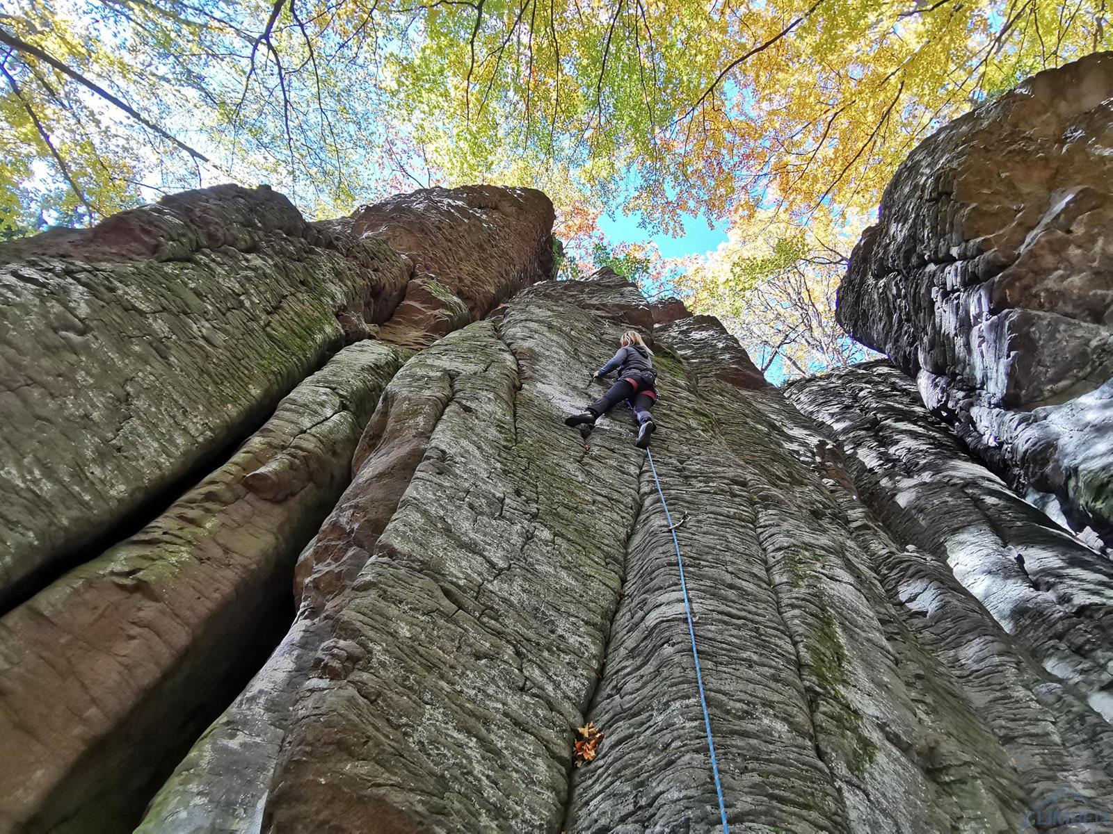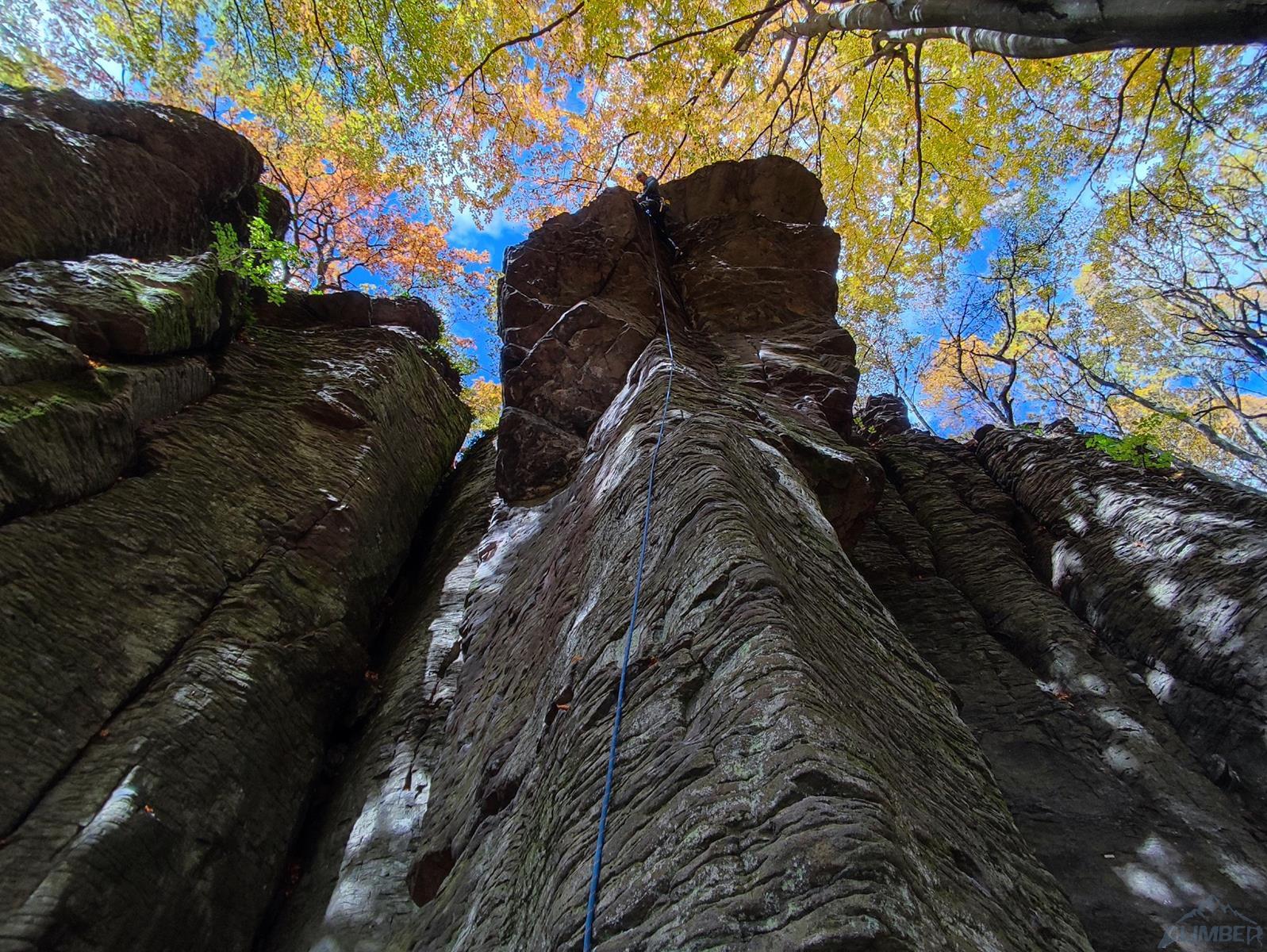 Kalamárka to jeden z najstarszych słowackich rejonów wspinaczkowych, położony w centralnej części kraju – w okolicy miejscowości Detva (rejon Bańska Bystrzyca). Skała to twardy wulkaniczny andezyt, o warstwowej budowie (świetne chwyty i stopnie) i bardzo dobrym tarciu. Do dyspozycji w tym niezwykle urokliwym miejscu mamy kilkaset obitych dróg o długości do 25 metrów, mnóstwo w przedziale V-VI i sporo VII-VIII – na kilka wizyt każdy z pewnością znajdzie coś dla siebie. Rejon słynie z rzadkiego obicia (szczególnie starsze linie) dlatego też dla własnego bezpieczeństwa lepiej nie wstawiać się w niektóre drogi na swoim limicie 😉. Na miłośników tradów również czeka mnóstwo propozycji, szczególnie tych łatwiejszych – jest to świetne i bezpieczne (rzeźba!) miejsce do nauki.