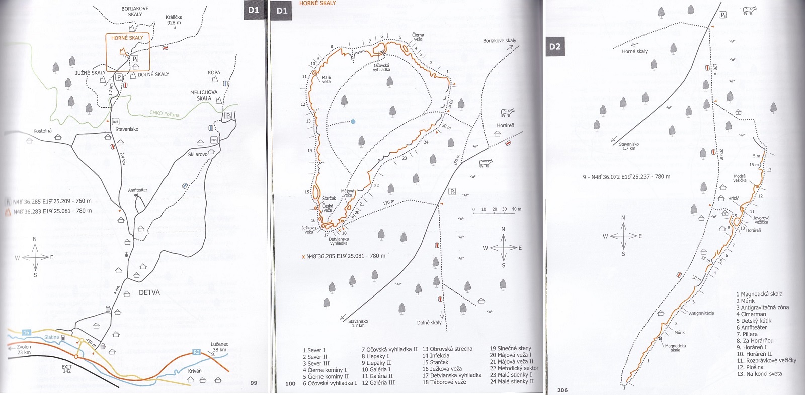 Poniżej w galerii zdjęcia z niektórych z w/w dróg. Dodatkowo mapka z lokalizacją sektorów oraz rzut na Horne i Dolné skaly.