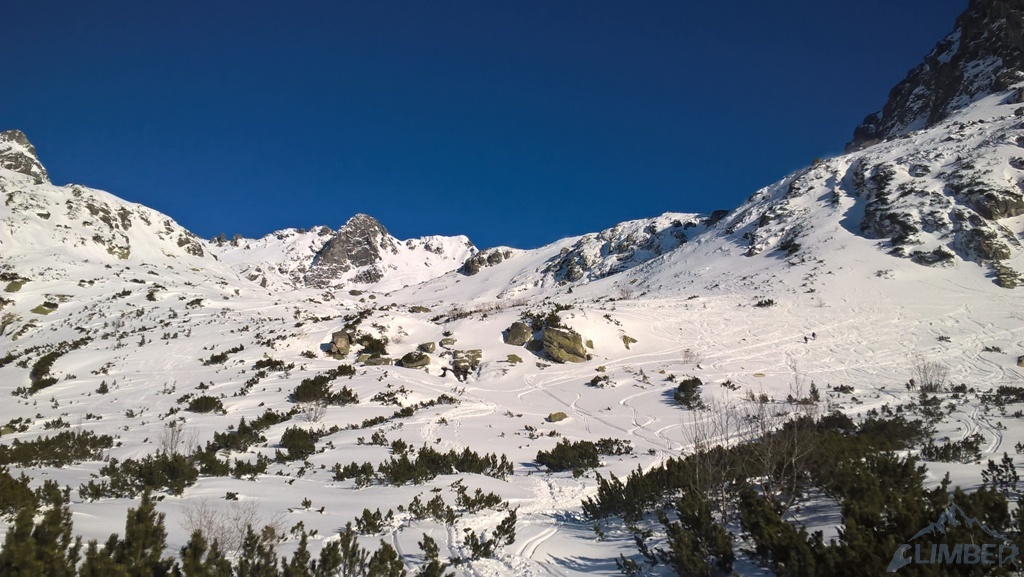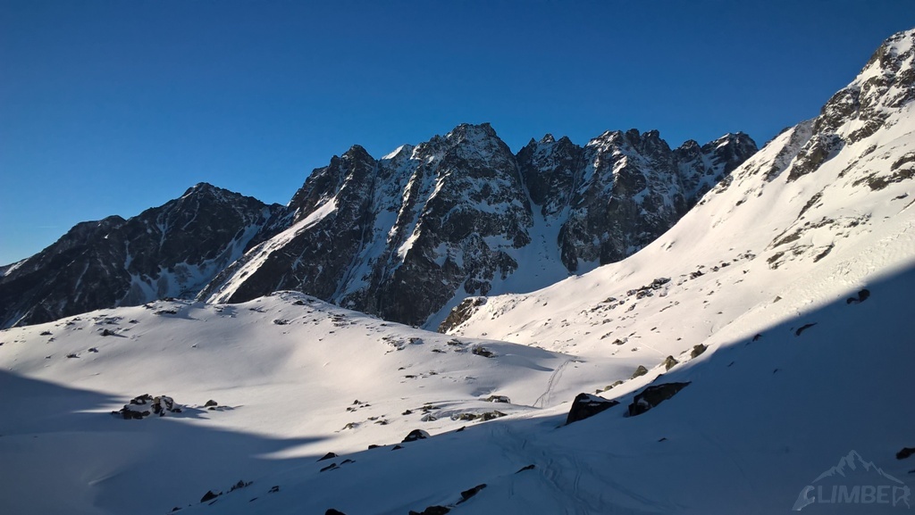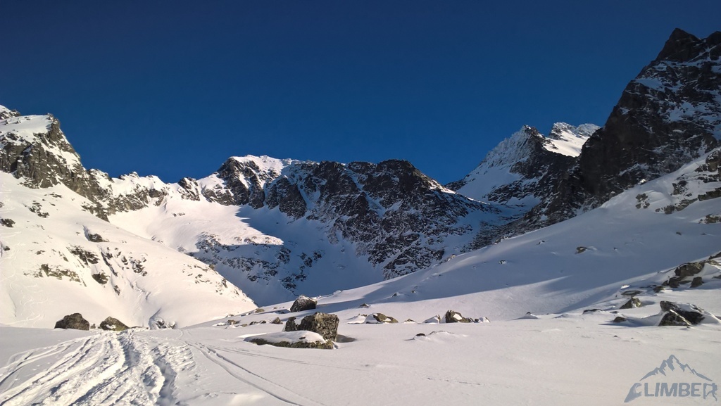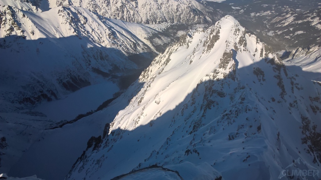 Po nacieszeniu się widokami (i rewelacyjną pogodą!) wracam granią, zapinam narty i śmigam najpierw na Wagę i dalej w doliny, z krótkim przerywnikiem w postaci ponownego przetrawersowania progu nad Żabimi Stawami.