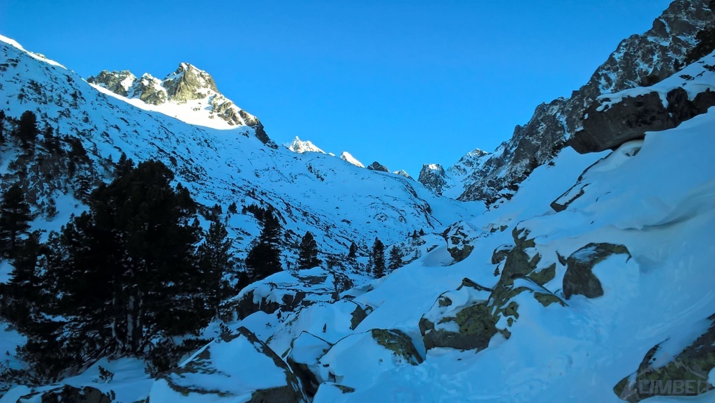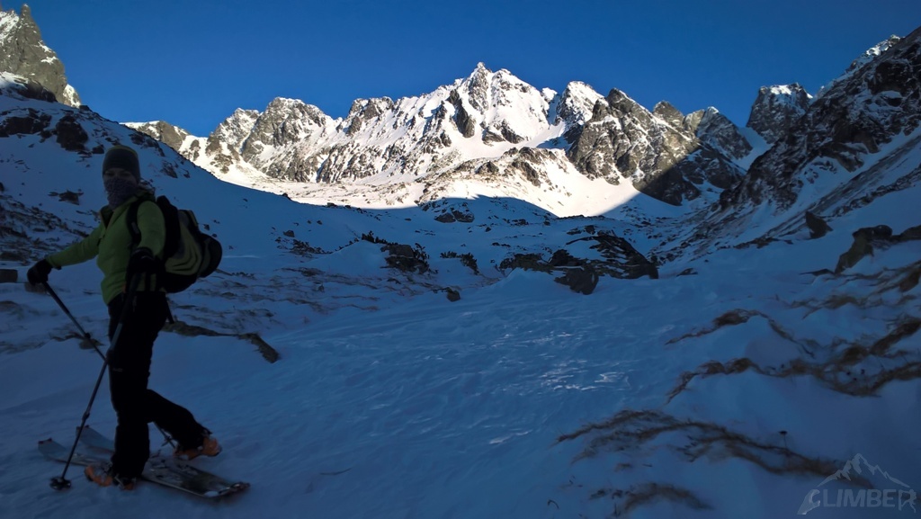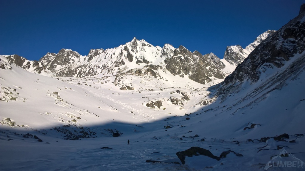 W piątek ruszamy do Doliny Złomisk na rozeznanie. Na szczęście całe dno doliny jest zasypane więc narty zapinamy przy schronisku i nie ściągamy przez cały dzień. Same stoki po stronie słowackiej okazują się miejscami mocno wywiane, ale tam gdzie śnieg został jest dobry pod zjazdy. Turystykę pieszą można sobie jednak wybić z głowy, myślałem wcześniej o zabraniu Uli na Ganek ale gdy zobaczyłem jak wygląda podejście na przełęcz, dałem sobie spokój :)