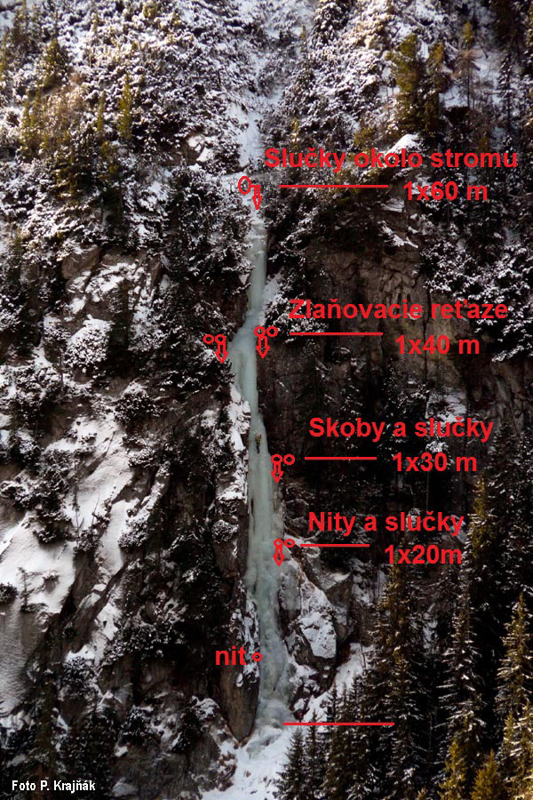 Kilka zdjęć z popołudniowej wizyty na Záhradkach. Lód jest tym razem świetnie wylany i daje kilka możliwości przejścia - od ok. WI4 z prawej strony do ok. WI5 z lewej. Idąc na jeden wyciąg do łańcuchów zjazdowych mamy ok. 50 metrów od podstawy lodu. Załączam dodatkowe zdjęcie z rozmieszczeniem stanowisk oraz zdjęcia Prawych Záhradek (ok. WI3). Dla porównania wpis z 2018 roku - TUTAJ.
