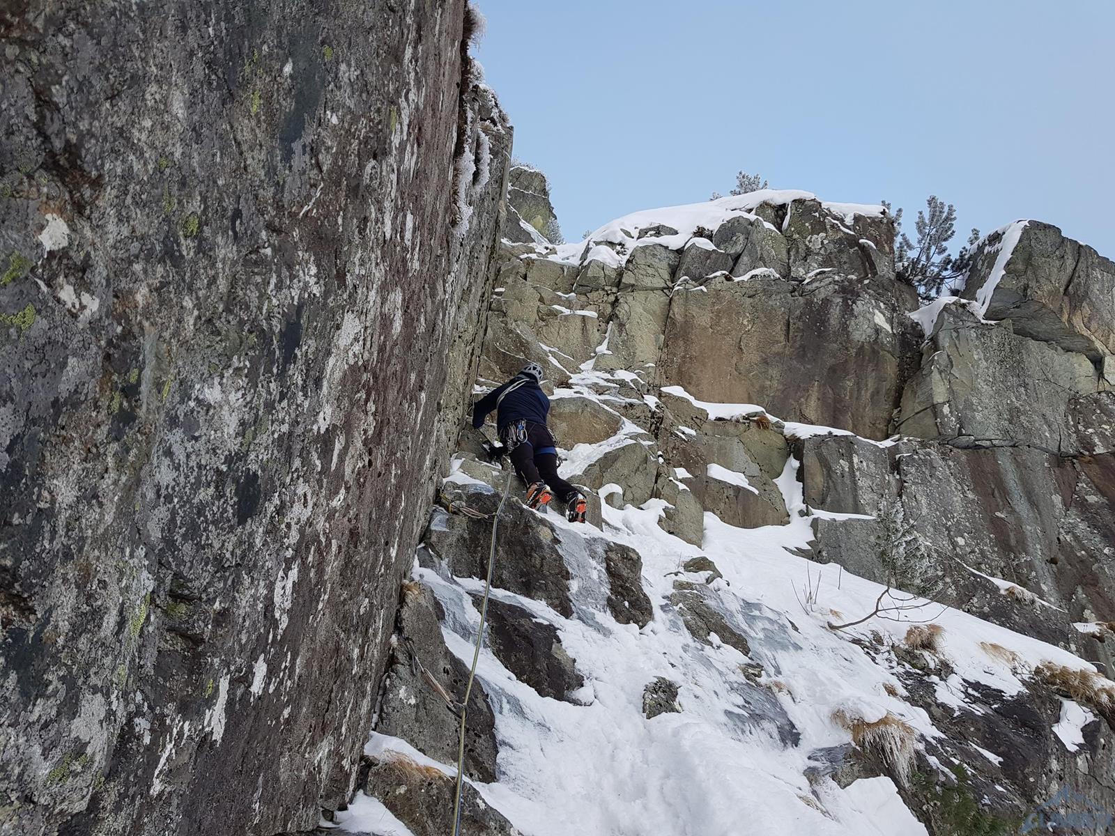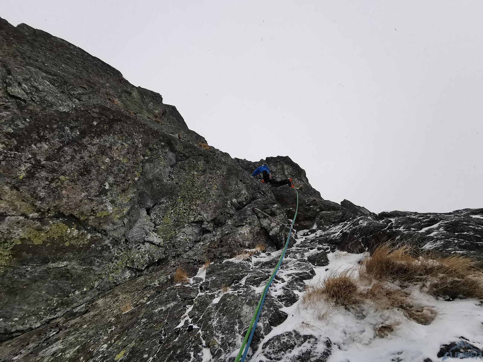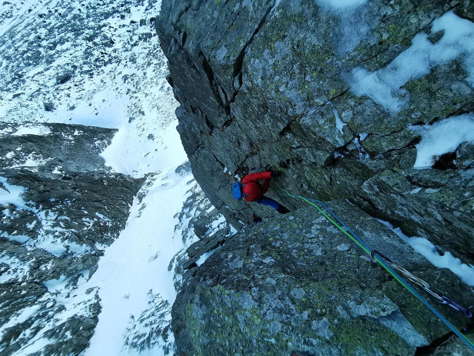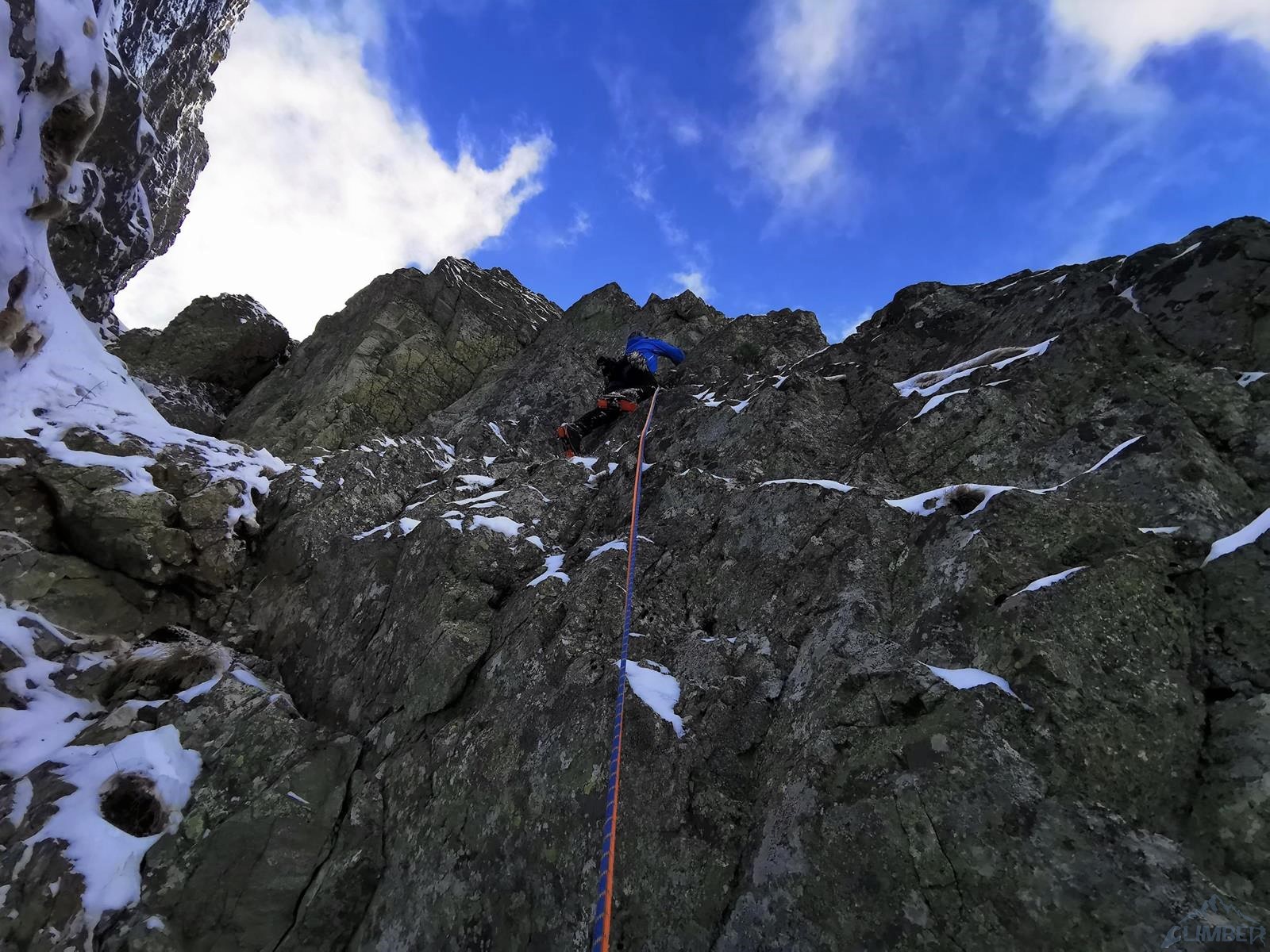 Pod koniec lutego wraz z klubowym obozem meldujemy się na kilka dni nad Zielonym Stawem w Kieżmarskiej. Pierwszego dnia pobytu z okazji urodzin Ani zabieram ją na jedną z najdłuższych i najładniejszych alpiniad w Tatrach, tzw. Filar Grosza (a właściwie Filar Północno-Zachodni (M3)) na Małym Kieżmarskim, w dolnej części ściany przechodzimy dodatkowo drogę Żuławskiego (M3). Dzień później sypie i wieje, będąc jednak na miejscu ciężko się nie wspinać - z Mateuszem i Michałem robimy więc Zivagove blues (M5+) na Skrajnym Kieżmarskim Strażniku. Trzeciego dnia czas na danie główne - mimo iż pogoda jest taka sobie, z Michałem i Szymonem decydujemy się wejść w północną ścianę Kieżmarskiej Kopy - droga Atlantida (M6) okazuje się mocno przygodowa, a kluczowy odcinek daje nieźle popalić.