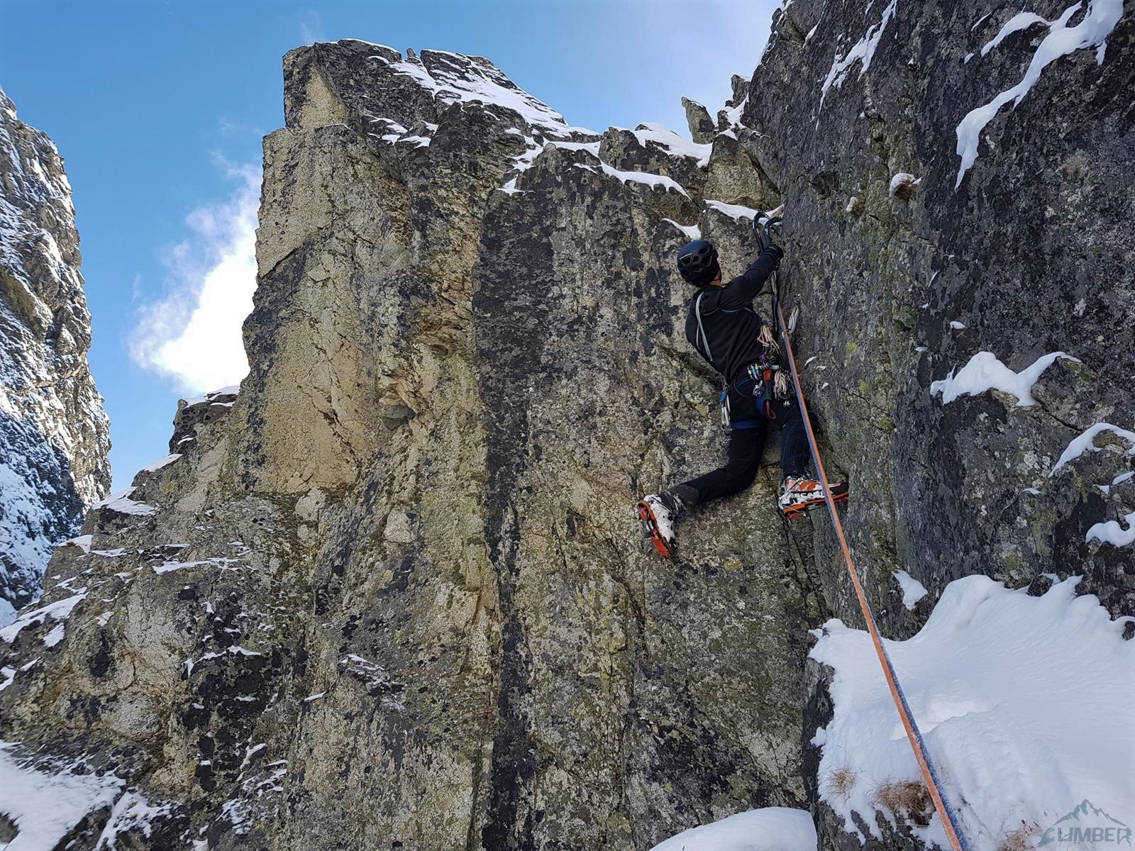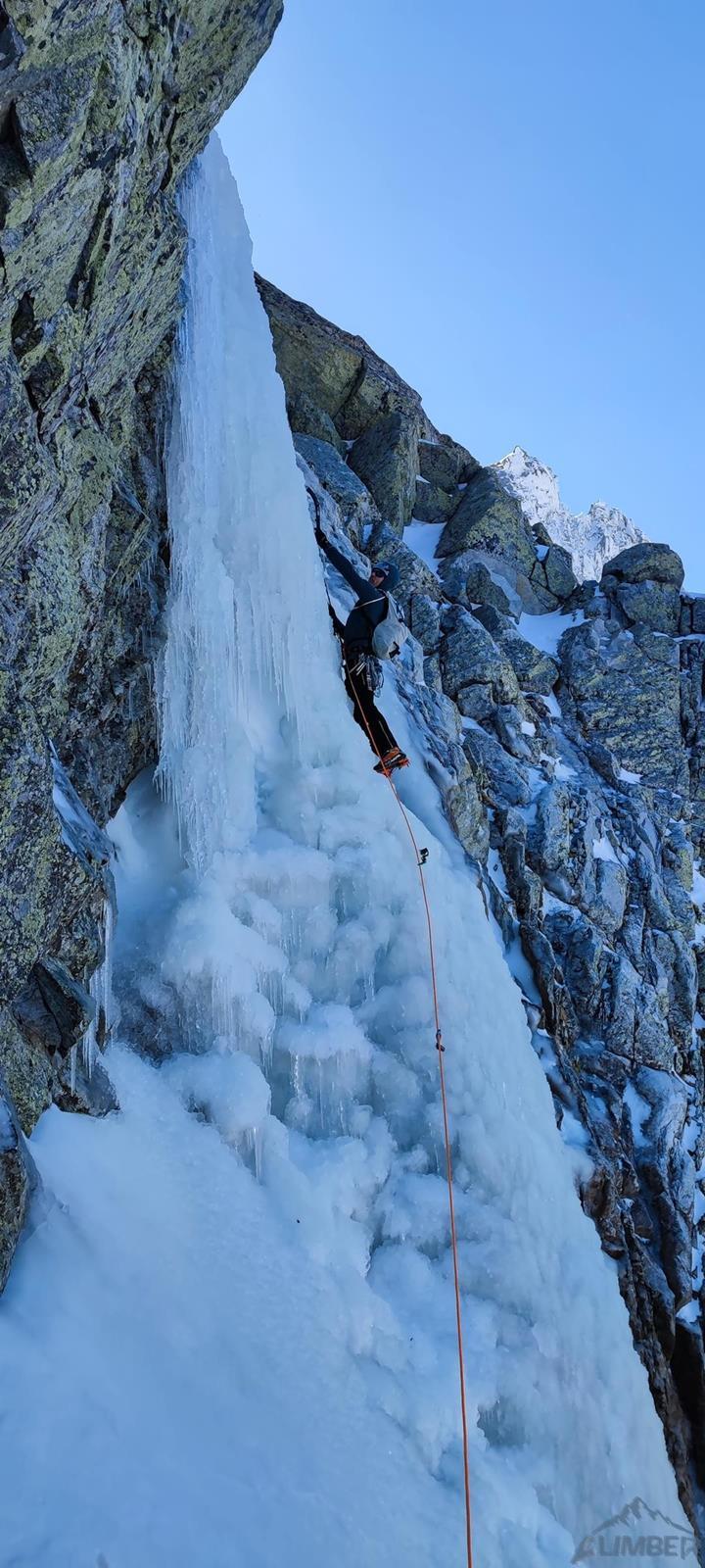 Po powrocie trzeba zmierzyć się z mrozami i ponownym przyzwyczajeniem do dziab i raków - na taką okoliczność drogą w sam raz jest Spisska cesta (M4+) na Huncowskim Szczycie, którą przechodzę z Michałem. Dwa dni później w tym samym składzie wybieramy się na poważniejszą ścianę (Wielką Granacką Basztę) i drogę, na której w końcu doczekałem się świetnych warunków - Środkowa Depresja - Lewe Zacięcie (M5+). Tydzień później pogoda nadal dopisuje, do naszej dwójki dołącza więc Szymon i jedziemy na weekend do Doliny Kieżmarskiej. Na rozgrzewkę przechodzimy drytoolowe Nas nedobegat (M5) na Kieżmarskiej Buli, a dzień później delektujemy się daniem głównym - całą północną ścianą Małego Kieżmarskiego Szczytu, którą pokonujemy Stanisławskim i Szczepańskim - warunki są kapitalne i prawie całość pokonujemy w lodzie i firnie (WI4 M5). Dzień później zaczyna sypać i w Tatrach zaczyna się okres gorszej pogody - wysoko położone ściany odpadają, można jednak podziałać niżej.