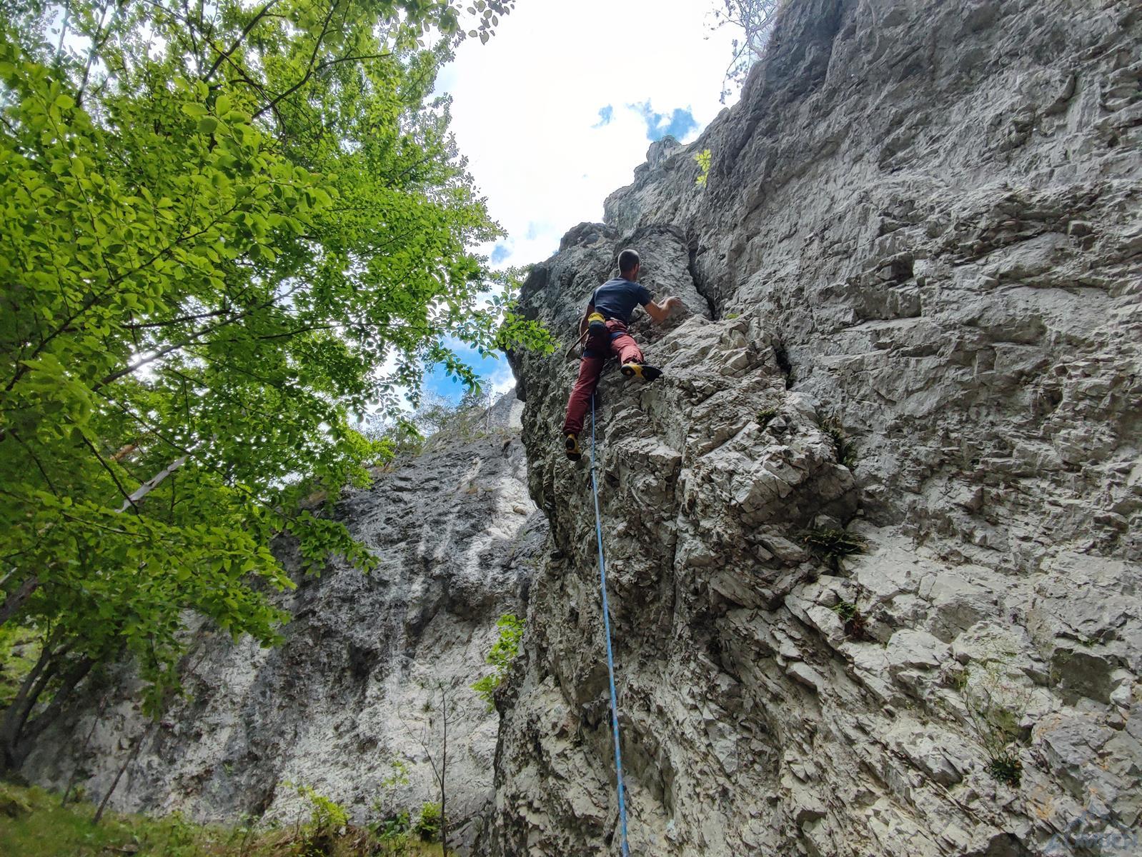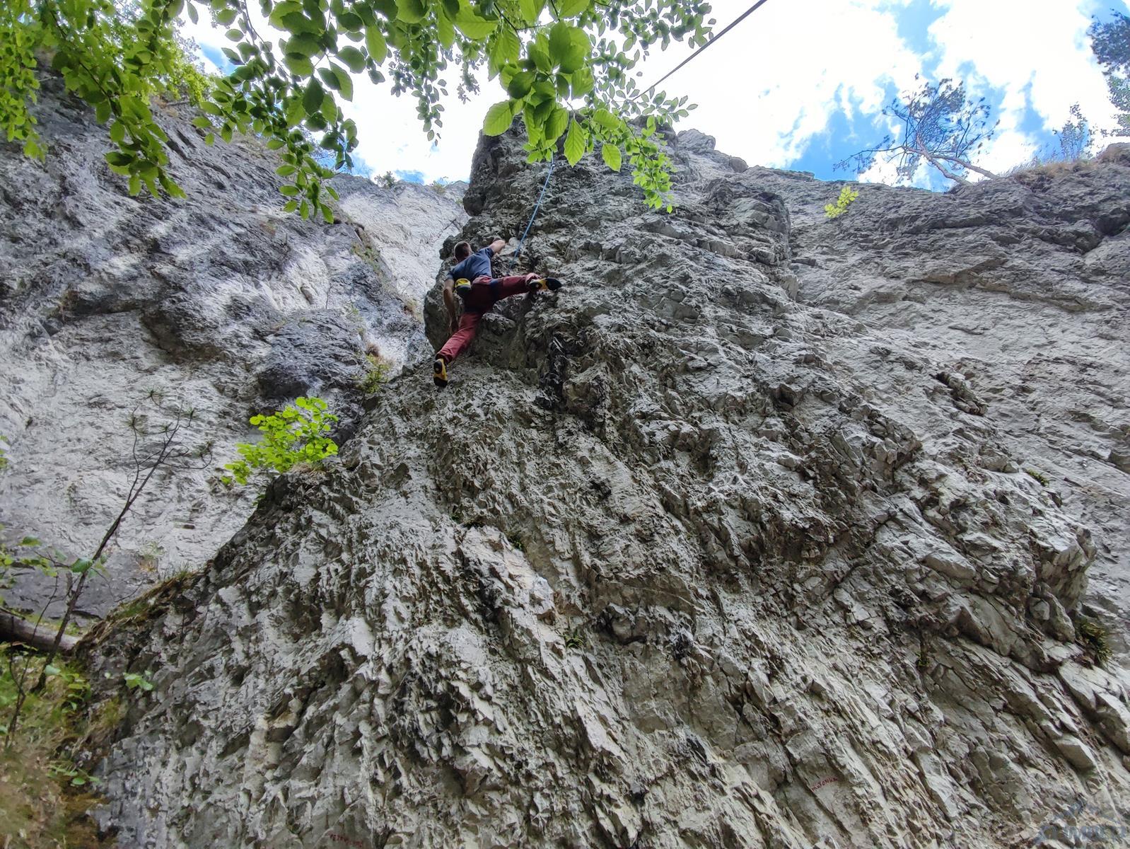 Słowackie Slnečné skaly to rejon położony w miejscowości Porúbka, niedaleko Rajeckich Teplic. Znajdziemy tutaj około 30 sektorów, na których wytyczono około 300 dróg, skała to oferujące dobre tarcie szare wapień i dolomit. W roku 2019 wydany został przewodnik po rejonie, do nabycia w księgarniach lub w recepcji campingu położonego pod skałami. Jak widać na załączonej mapce, część sektorów ulokowana jest po lewej stronie (na te lepiej podchodzić z zatoczki przy drodze kilkaset metrów za campem), część po prawej (na te idziemy parkując na campie albo wcześniej przy drodze). W moim wpisie znajdziecie zdjęcia z niektórych dróg, aktualizowane co jakiś czas i ułożone od najnowszego do najstarszego. W przyszłości być może pojawi się lista polecanych dróg i opis sektorów.
