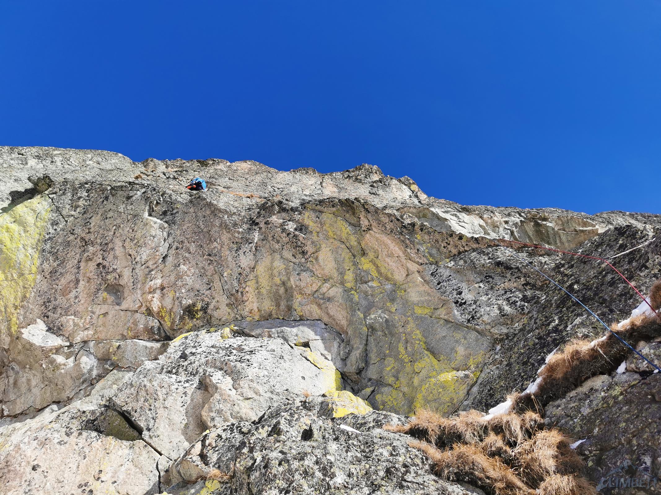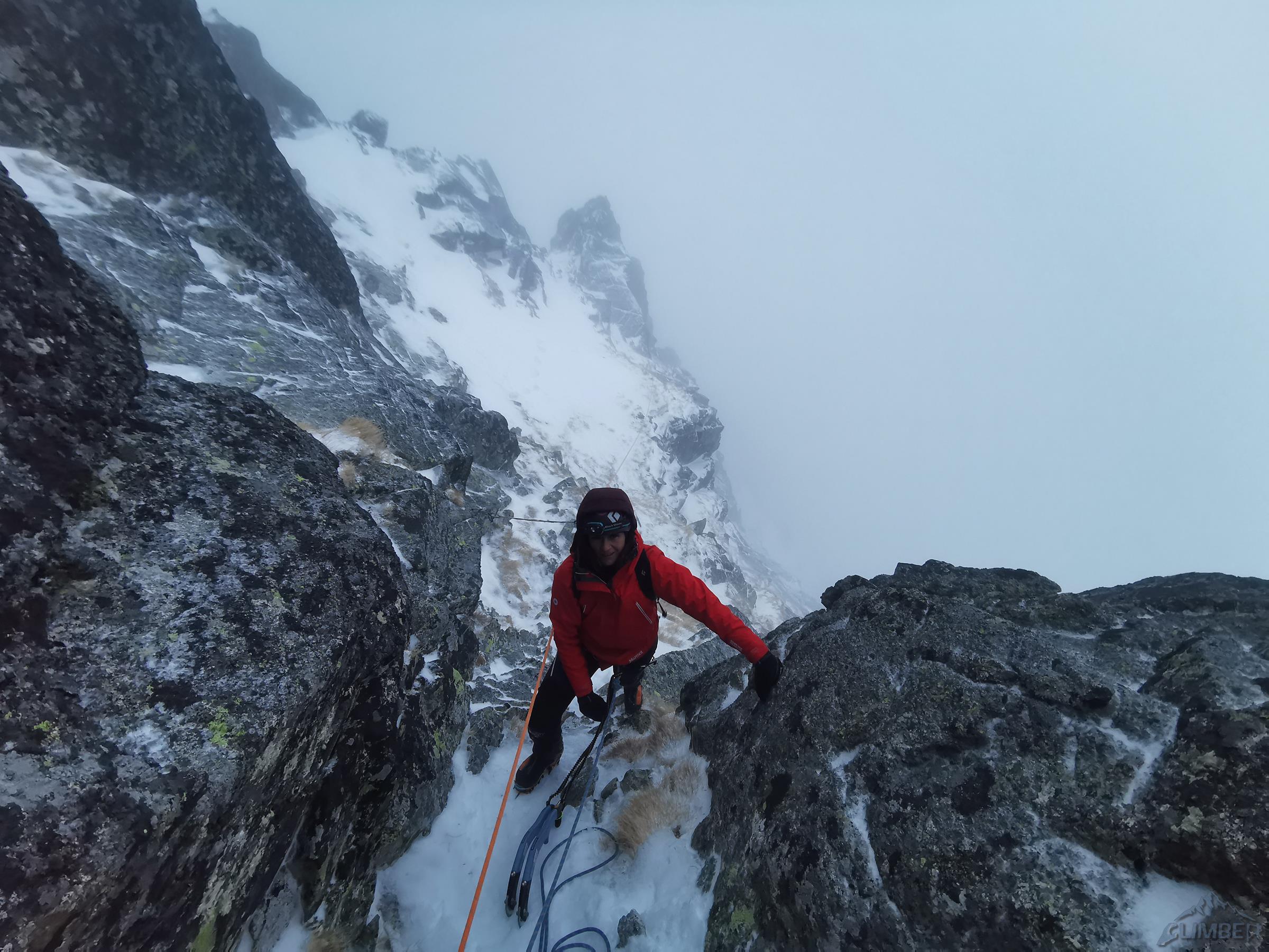 MARZEC. Skuszeni widokiem sprzed tygodnia jedziemy z Marcinem na Lód w Osterwie – ten na miejscu okazuje się jednak „niewspinalny”, zbiegamy więc w dół i przenosimy się do Staroleśnej na Veverkę (WI4) i ładne Chlapcom z Pumori (M5+ OS). Sezon zimowy „ratuje” kolejny weekend (pierwszy pogodny tej zimy!), który ambitnie przeznaczamy z Szymonem i Michałem na dwa główne cele sezonu. W sobotę próbujemy swoich sił na przepięknym Czarnym Zacięciu (M7+), którego kluczowy wyciąg ku naszemu zdziwieniu OS-em robi Michał i nam pozostaje w ten sam sposób rozprawić się z resztą drogi. Dzień później w końcu spełnia się jedno z marzeń – przechodzimy zimowo główne spiętrzenie Kazalnicy z wyjściem na szczyt. Ła-Pa (M7- RP) choć długa i poważna, w dobrych warunkach nie daje nam popalić – w kominach mamy lód, a na Ściance Problemowej świetną asekurację. Tydzień później idąc za ciosem odwiedzamy kolejną dużą północną ścianę – Jaworowy Mur, gdzie z Marcinem i Michałem robimy długo planowany, ale słabo niestety wylodzony Komin Navratov (M5 WI4).