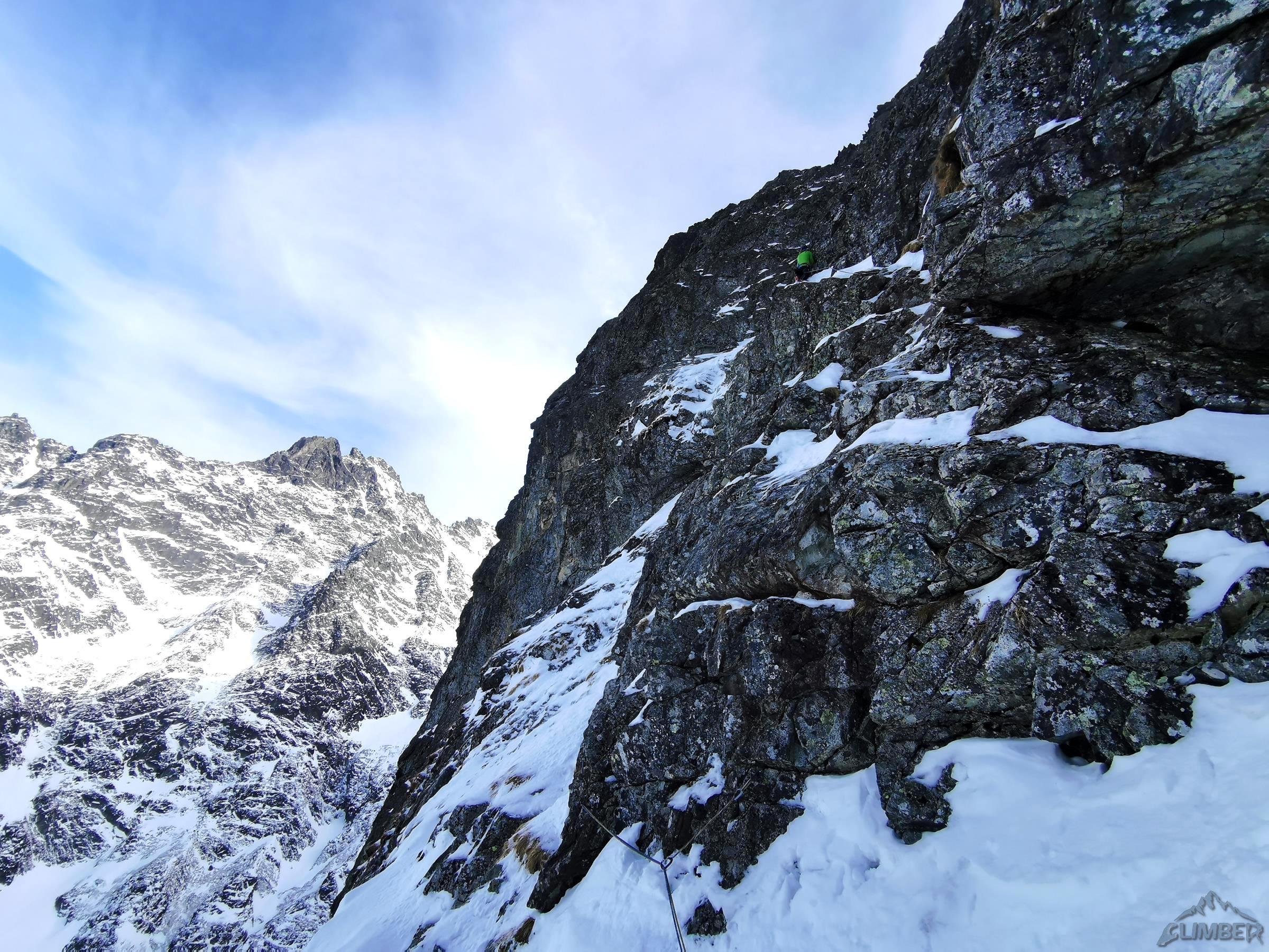 - Veličova cesta (M5+ OS), Kieżmarska Bula: jedna z ciekawszych linii na ścianie, krótka ale zajmująca i dość poważna jak na swoją wycenę.