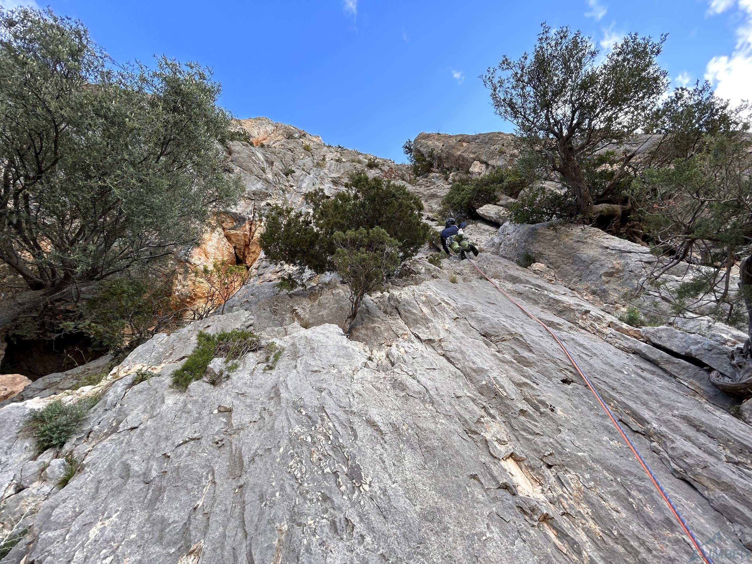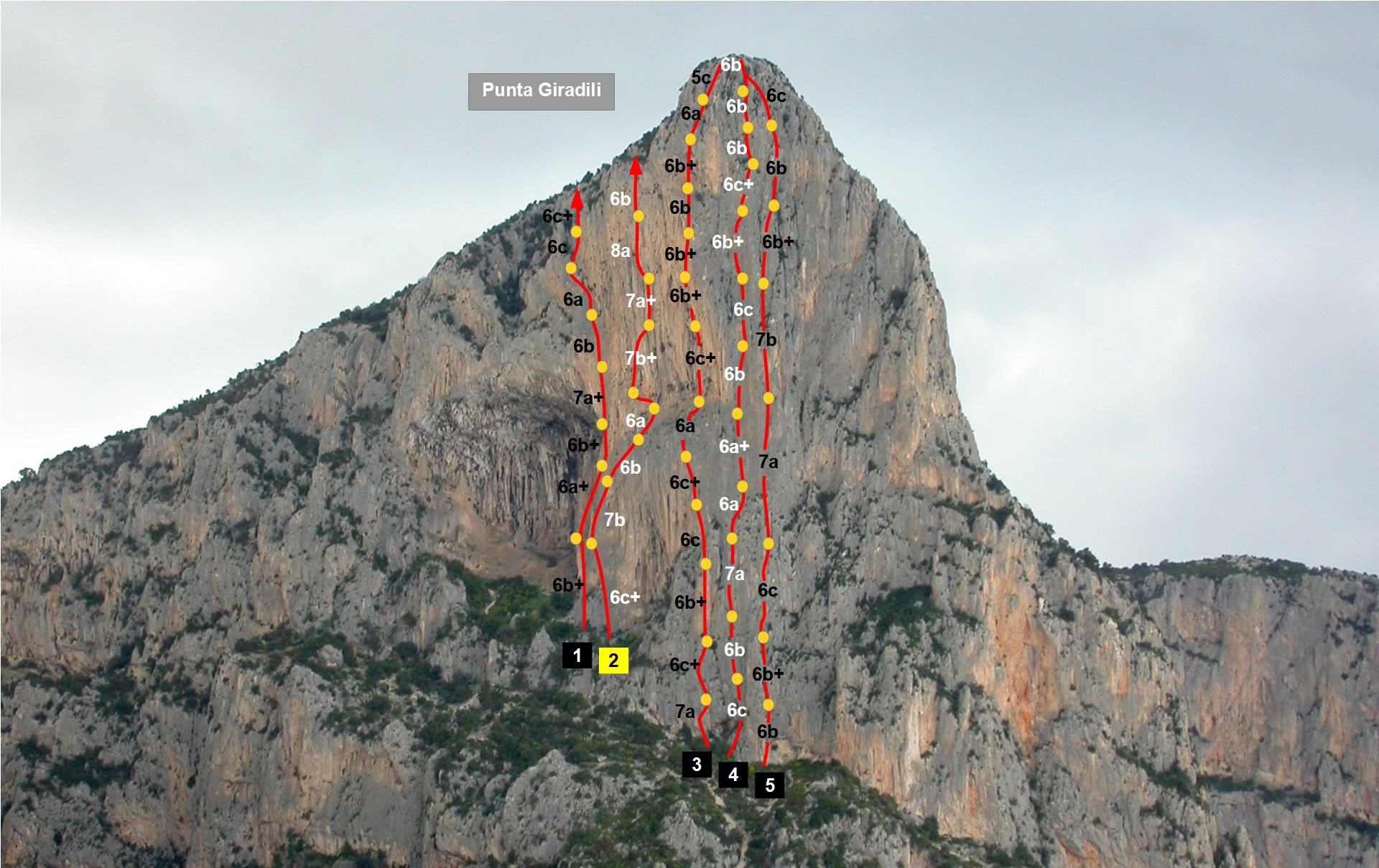 Gdy tydzień przed majówką łapię bolesną kontuzję barku wydaje się, że nici z jakiegokolwiek wyjazdu. W ostatniej chwili decydujemy się jednak polecieć na Sardynię – słysząc o tym mój fizjoterapeuta wymownie puka się w głowę, proszę więc o podwójne zaplastrowanie i obiecuję się oszczędzać 😉. Gdy jednak na sportowym sektorze Pietra Filosofale w Isili (OPIS) okazuje się, że unikając niektórych ruchów daję radę się wspinać i ramię boli tylko czasami, postanawiamy zaryzykować i spróbować wymarzonego Wolfganga Güllicha (7a) na słynnej Punta Giradili. Tą przepiękną 400-metrową linię prowadzącą środkiem centralnego filara mieliśmy na celowniku od momentu wspinania na innym tutejszym klasyku – Mediterraneo (RELACJA).