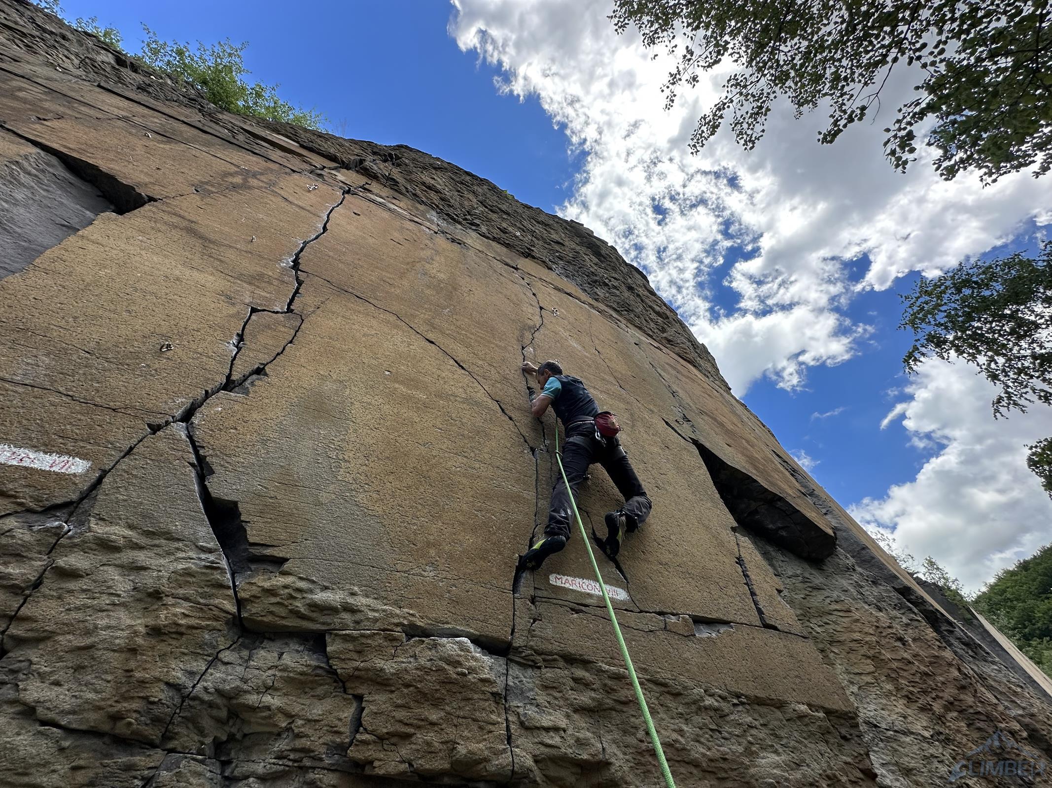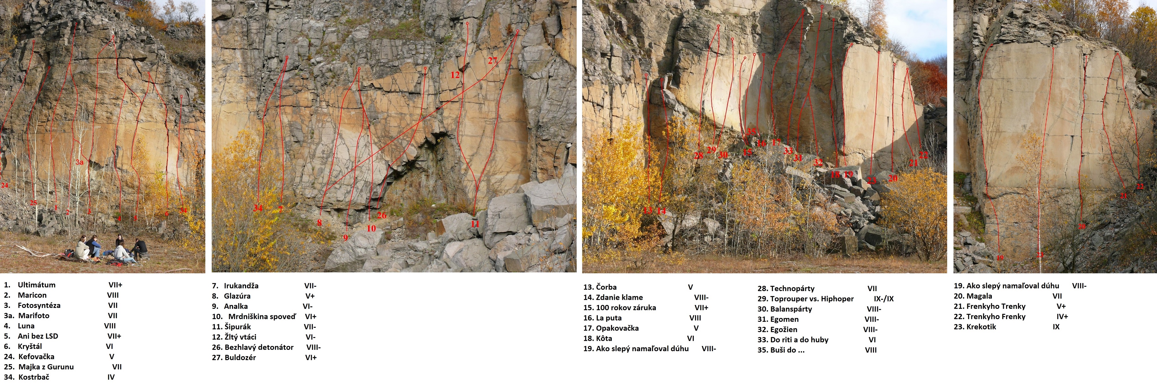 Ponieważ skała w gładszych miejscach ma słabsze tarcie, lepiej nie wspinać się gdy jest gorąco i bezchmurnie - mur wystawiony jest na południowy zachód. Lokalizacja ściany to 48.693742, 18.640992, najlepiej podejść pod nią z parkingu przy cmentarzu (ok. 20 minut), można podjechać bliżej jeżeli mamy wysokie zawieszenie. Na miejscu jest duża polana i miejsce na ognisko. Topo i mapka są na stronie HK Banik - TUTAJ (załączam ze stanem 06.2023), czy np. na The Crag - TUTAJ, są też podpisy na ścianie. W galerii trochę zdjęć z wybranych polecanych dróg wraz z opisem.