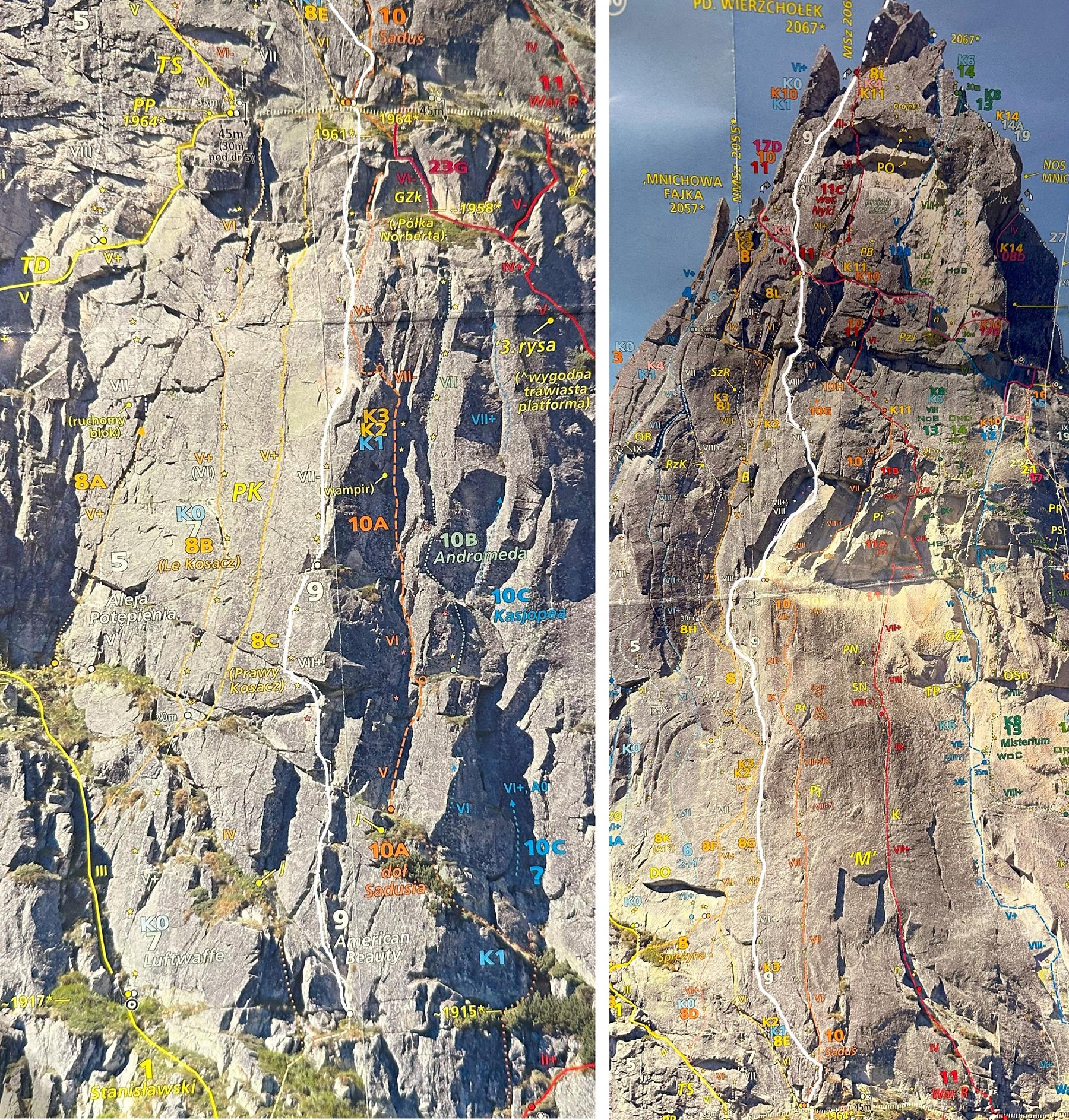 Wycena: VIII+   Wycena uzupełniająca: VIII/VIII+   Asekuracja: S1   Długość [m]: 190   Wyciągi: 7   Czas [h]: 6   Wystawa: E   Ocena: 9/10   Komentarz: