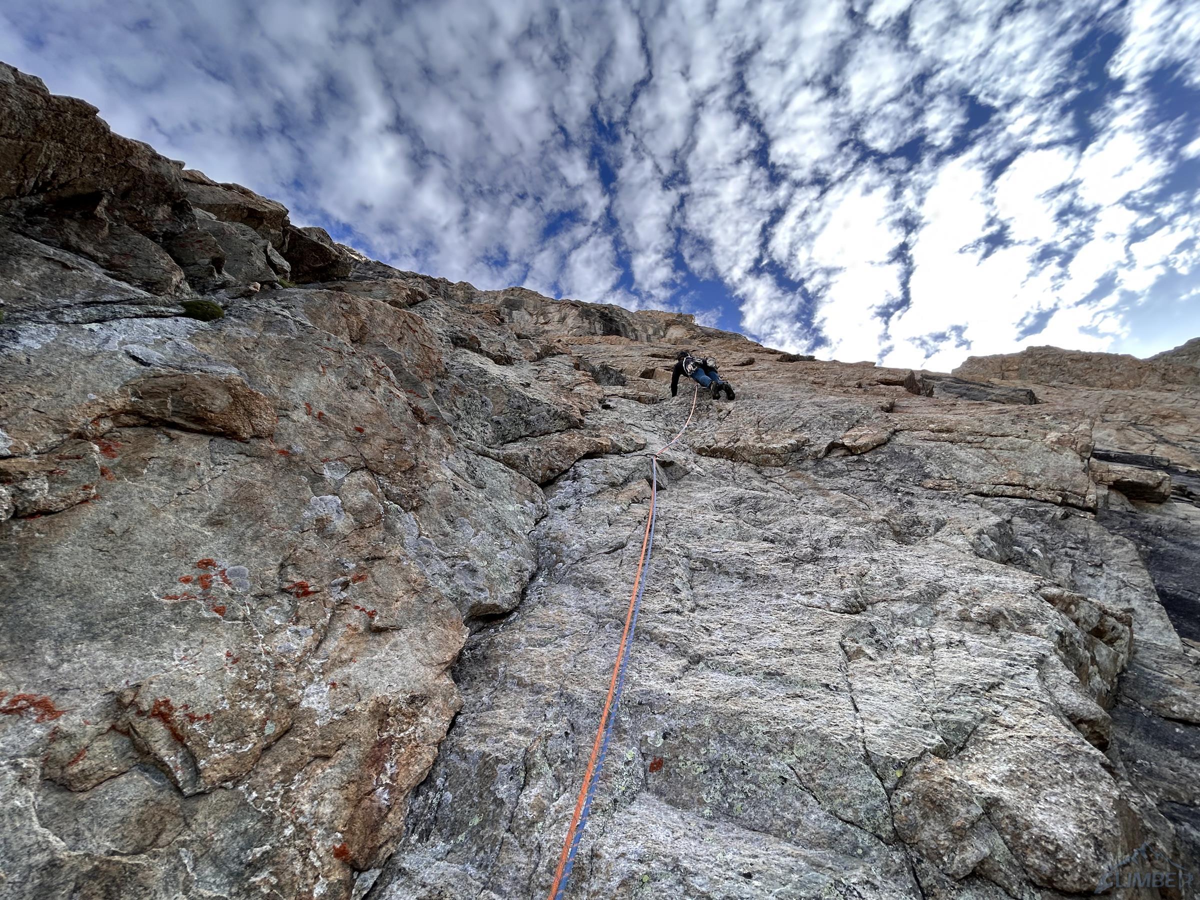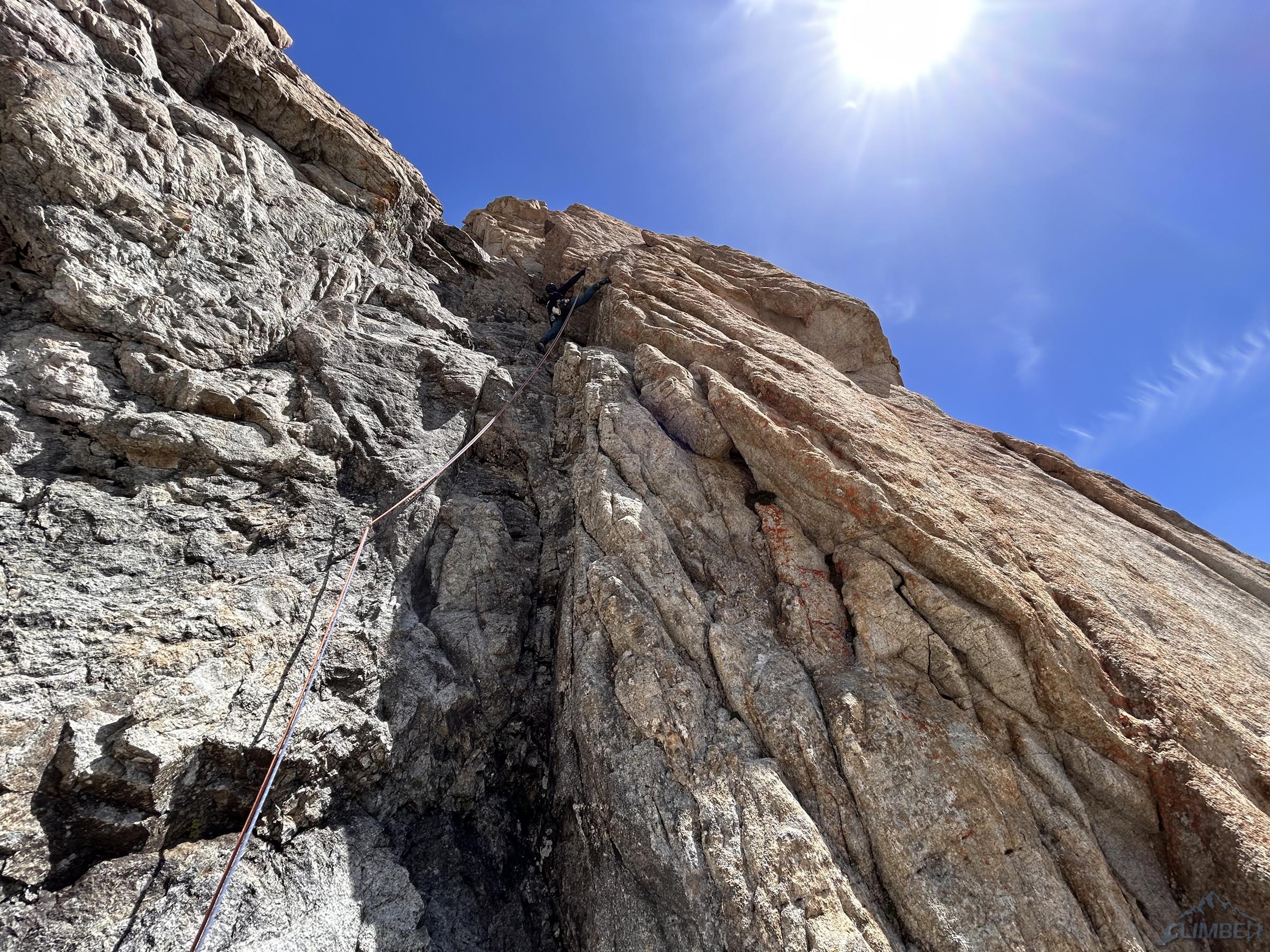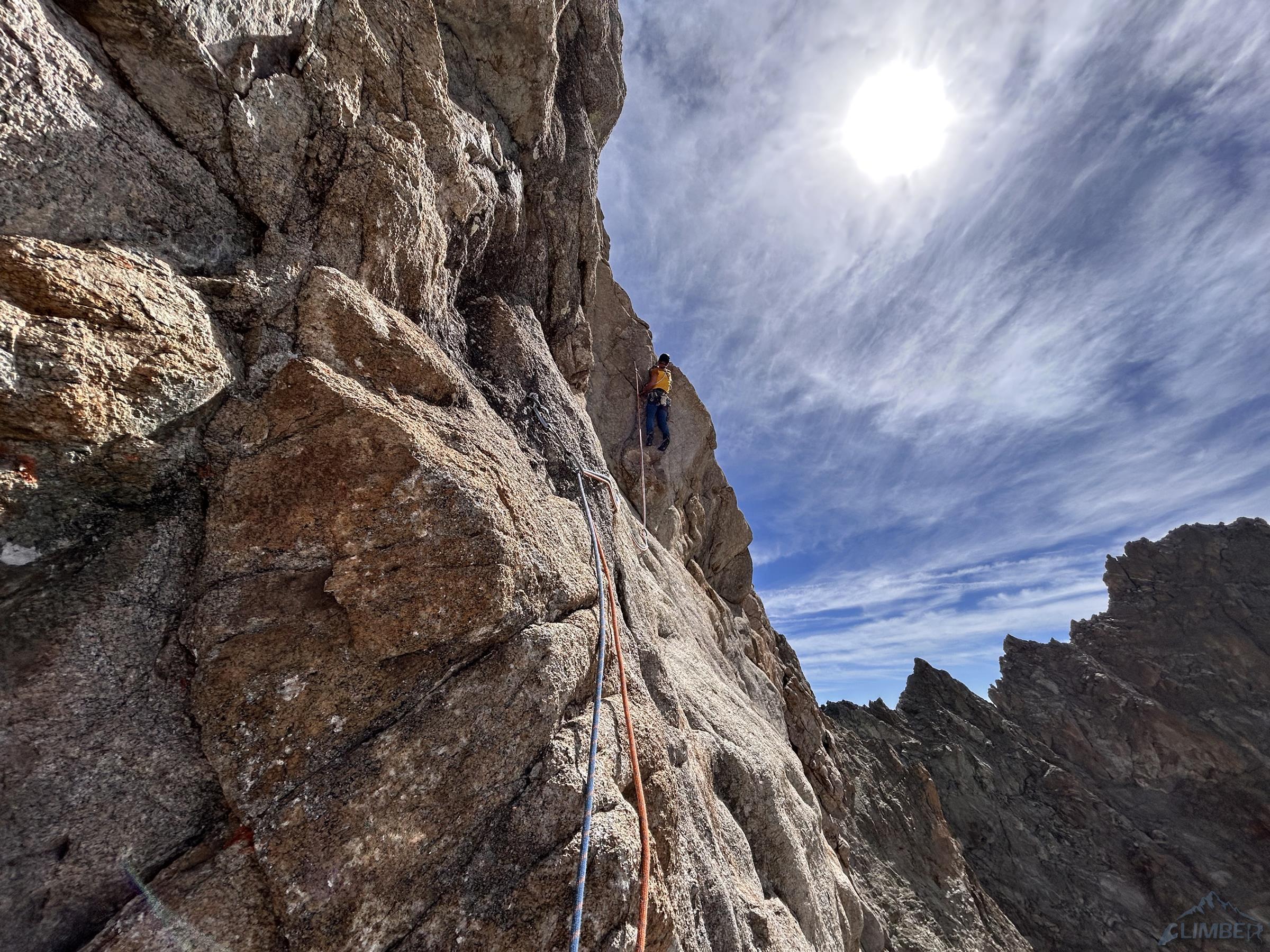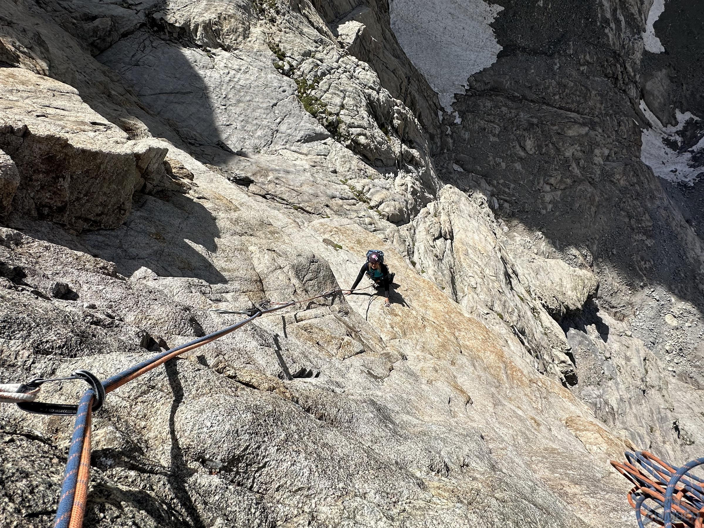 W dalszej części obozu klubowego w Alpach Delfinackich postanawiamy zmierzyć się z jedną z najładniejszych ścian w całym masywie – południową wystawą Aiguille de Sialouze (3576m). Świetnych dróg jest tutaj co najmniej kilka, a wśród nich absolutnym klasykiem jest 13-wyciągowa Attaque à Main Armée (wyceniana w zależności od źródła od 6c do 7a). Jak na większości najpopularniejszych górskich linii w Écrins możemy liczyć na dobre obicie (świeża re-ekipacja w 2021 roku), a własny sprzęt potrzebny jest tylko na ostatnie rysowe wyciągi. Wspinanie jest bardzo ładne i różnorodne, do tego od połowy ściany pojawia się piękny pomarańczowy granit, rodem z Grand Capucin – myślę że to wystarczająca rekomendacja!