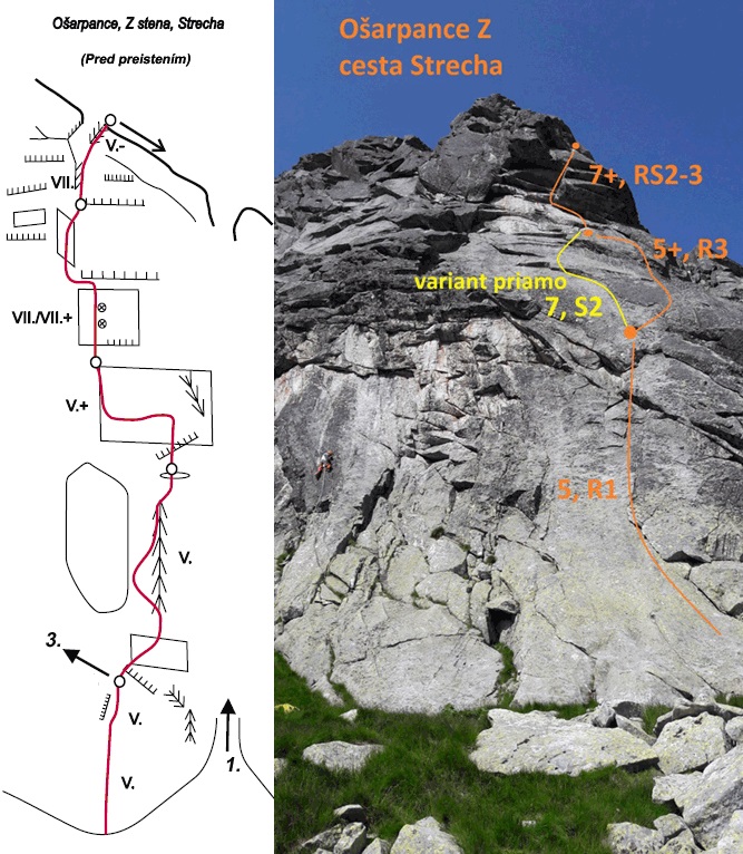 Niespotykanie jak na ten sezon pogodny weekend następujący po kilku dniach bez opadów przyczynił się do prawdziwego oblężenia tatrzańskich ścian. W końcu podziałać można było również na północnych wystawach, stąd decyzja by wybrać się na rzadko suchą Galerię Gankową. Postanawiamy więc w sobotę powspinać się w Złomiskach by kolejnego dnia rano przejść do położonej tuż obok Doliny Ciężkiej. Spośród kilku potencjalnych celów wybór pada na zachodnią ścianę Szarpanej Turni, gdzie od dawna na oku mam dwie nieczęsto powtarzane, ale naprawdę piękne i godne polecenia linie – Strechę (VII+) oraz Sedem životov (VIII).