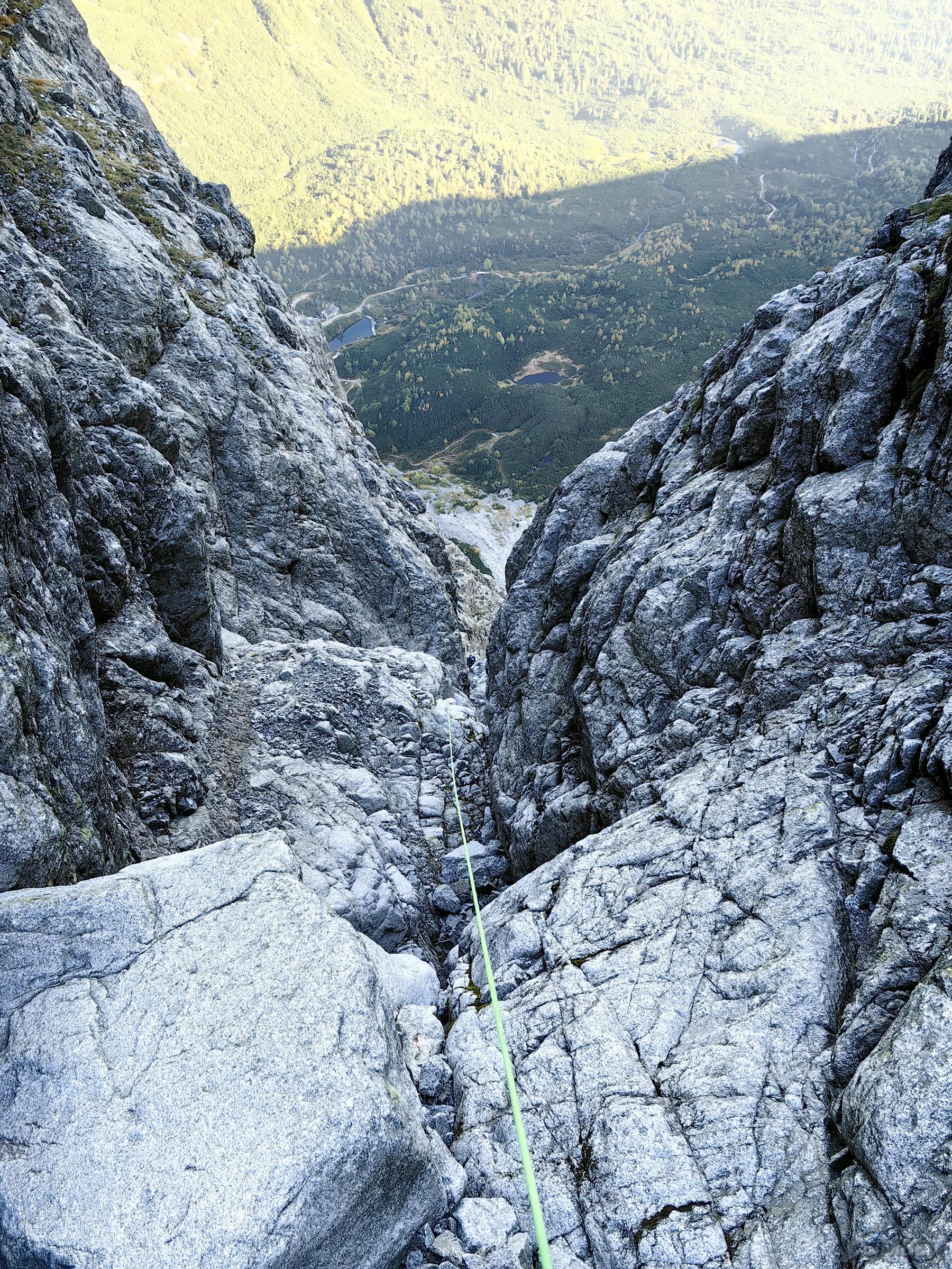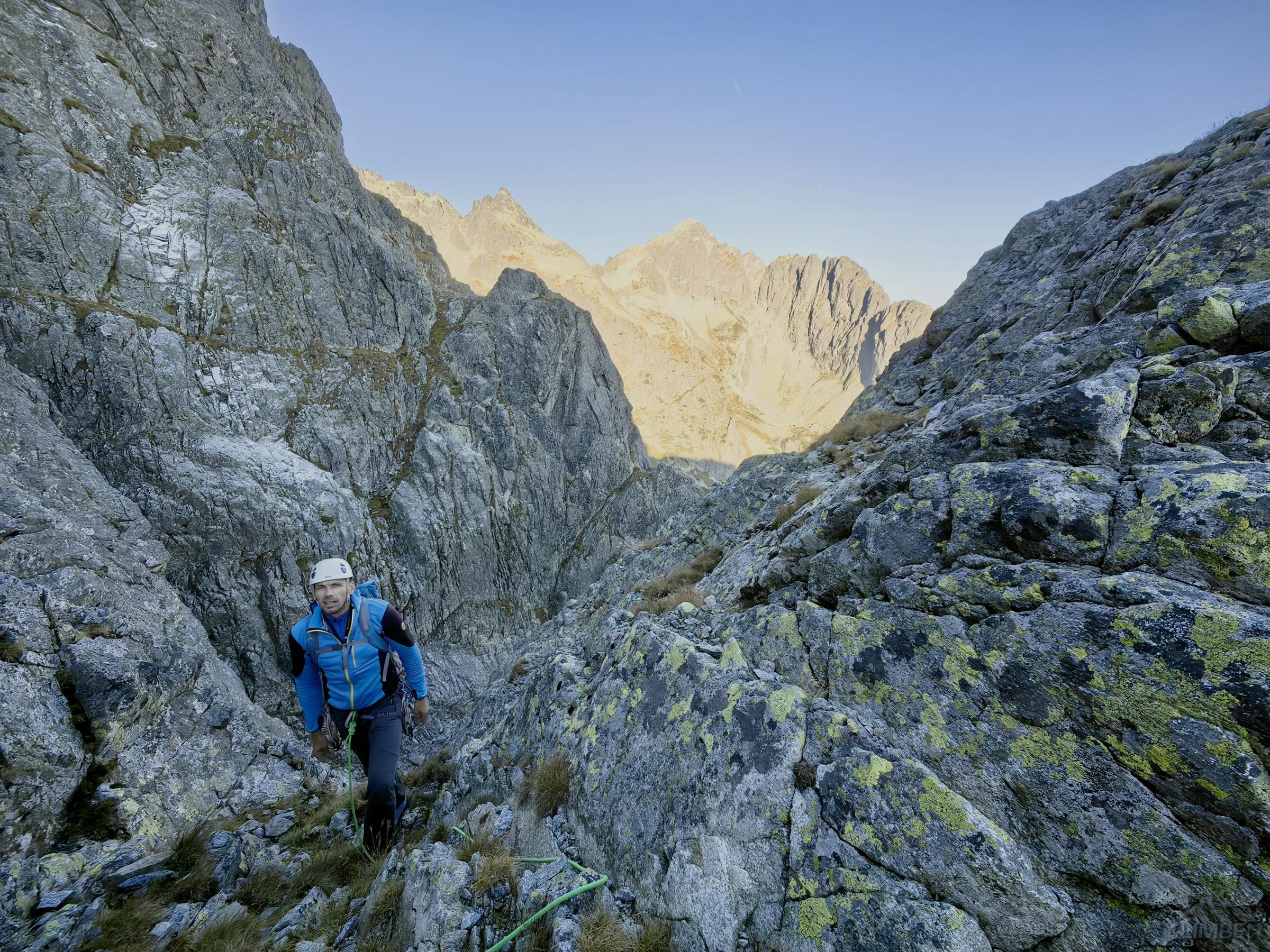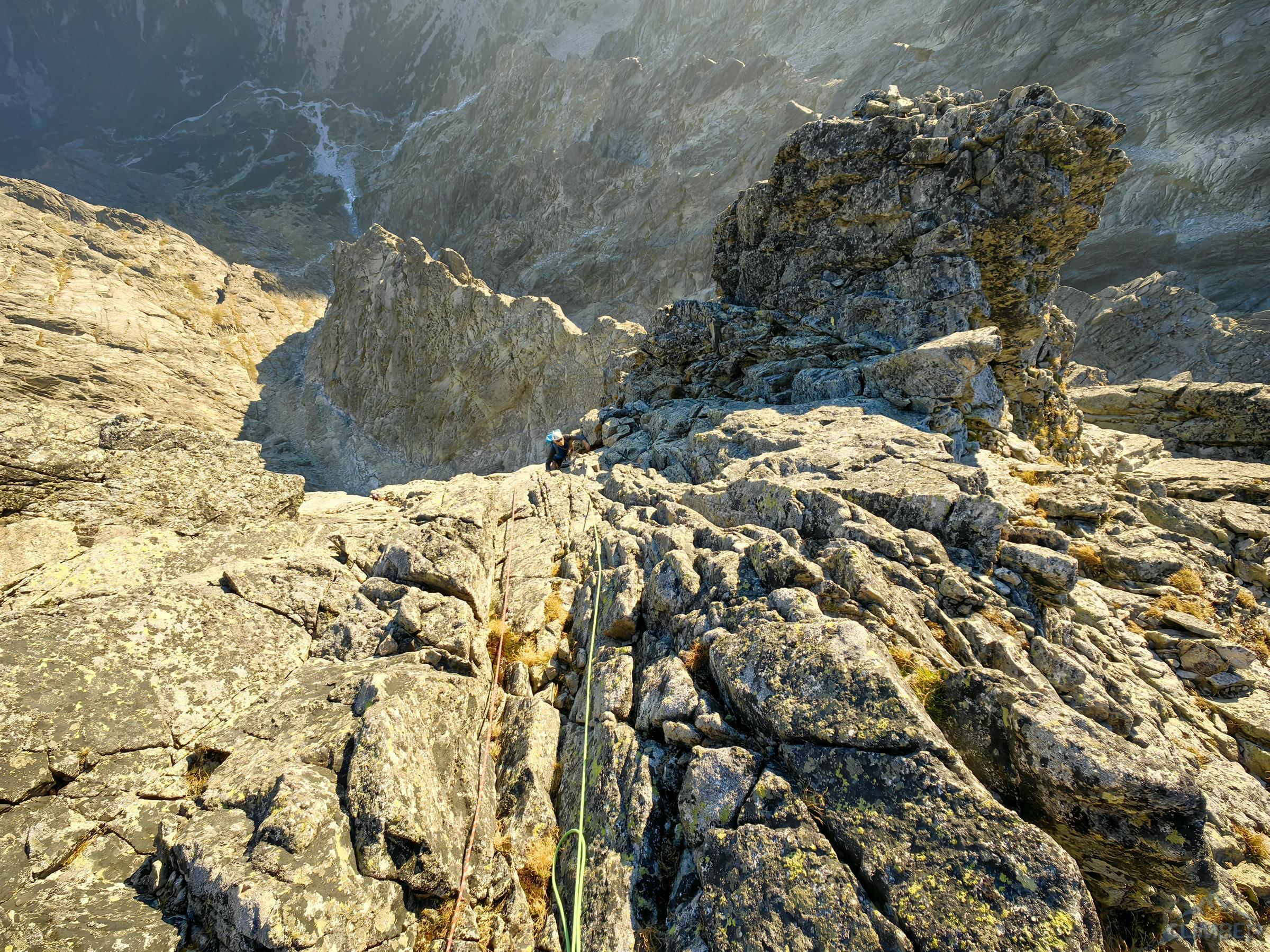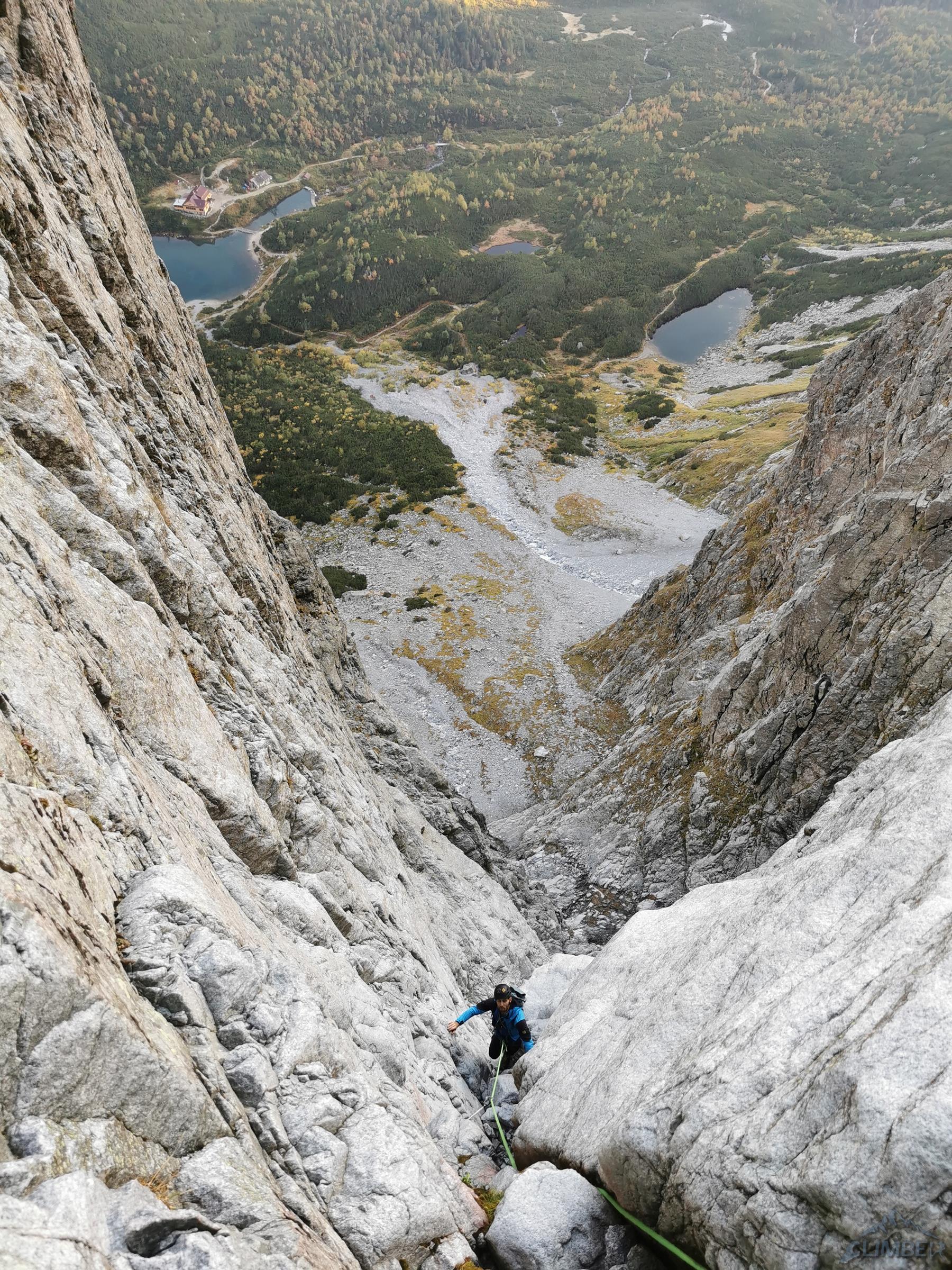 Z liną schodzi oczywiście więcej czasu jednak mimo braku znajomości dwóch dróg, robienia przerw i wielu zdjęć oraz pilnowania stylu klasycznego (również na drugiego) udaje nam się spokojnie wyrobić od świtu do zmierzchu w krótszy już jesienny dzień. Przygoda jest rodem z długich alpejskich klasyków - wspinania (choć nietrudnego) wychodzi około 2000 metrów, a więc ta i podobne kombinacja to świetny sposób na „wydłużanie” tatrzańskich ścian 😊.