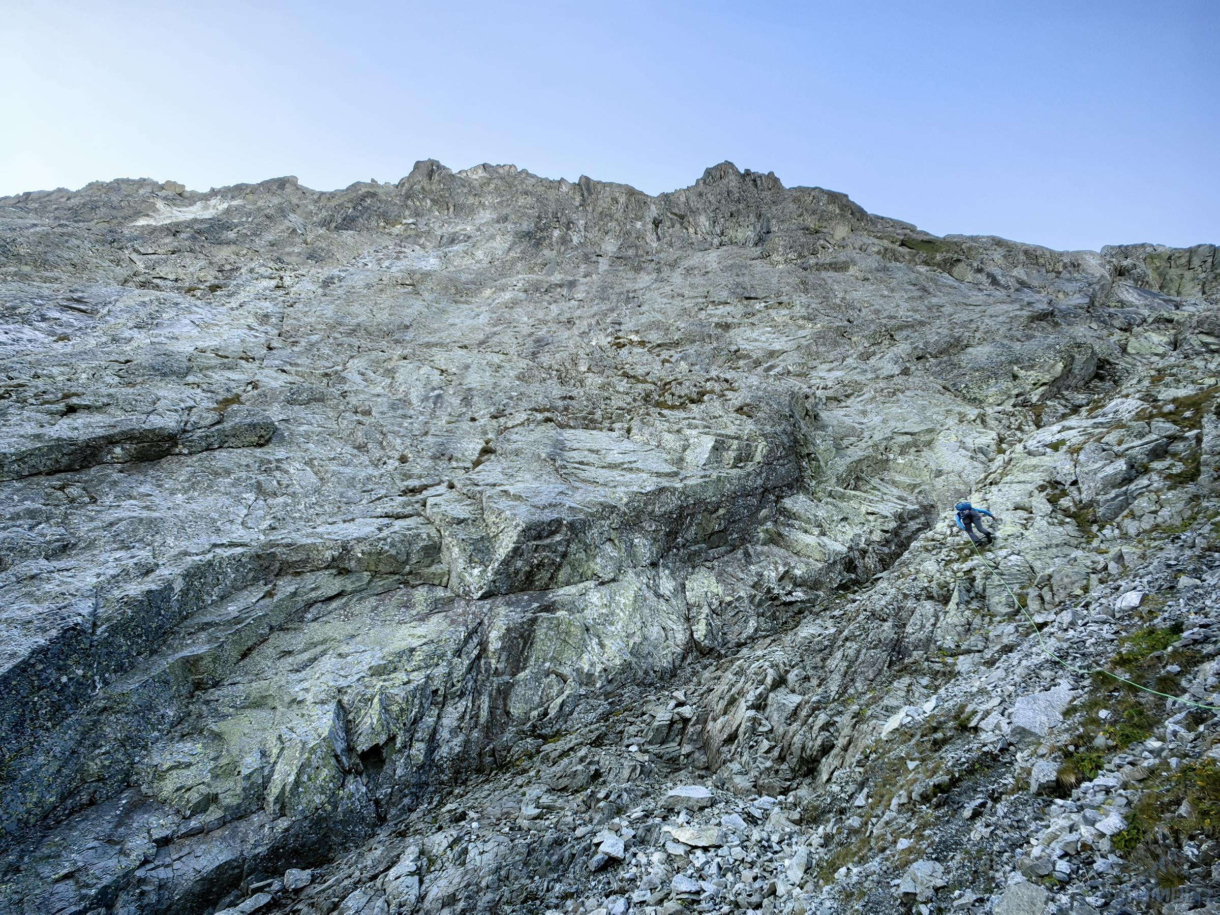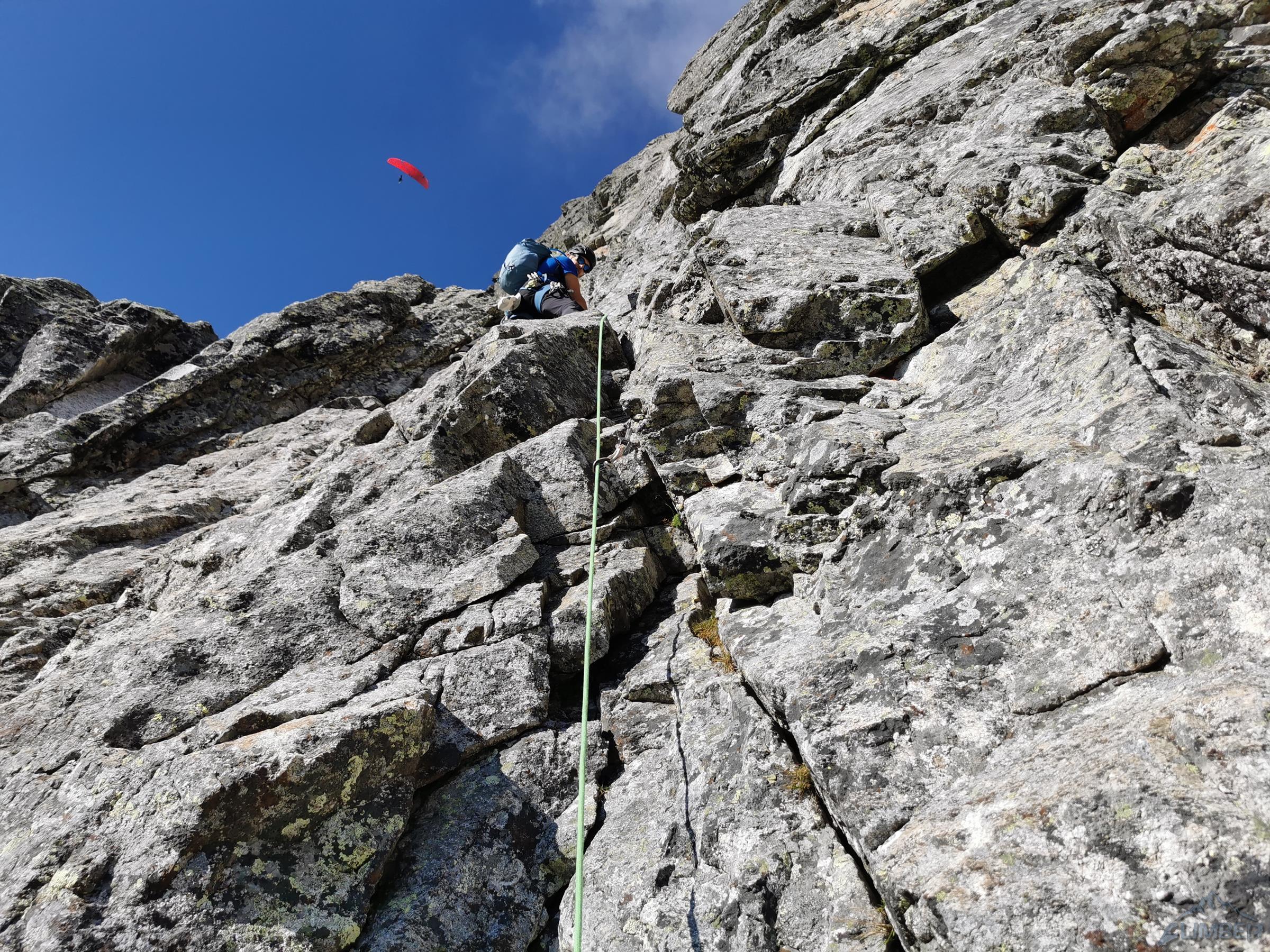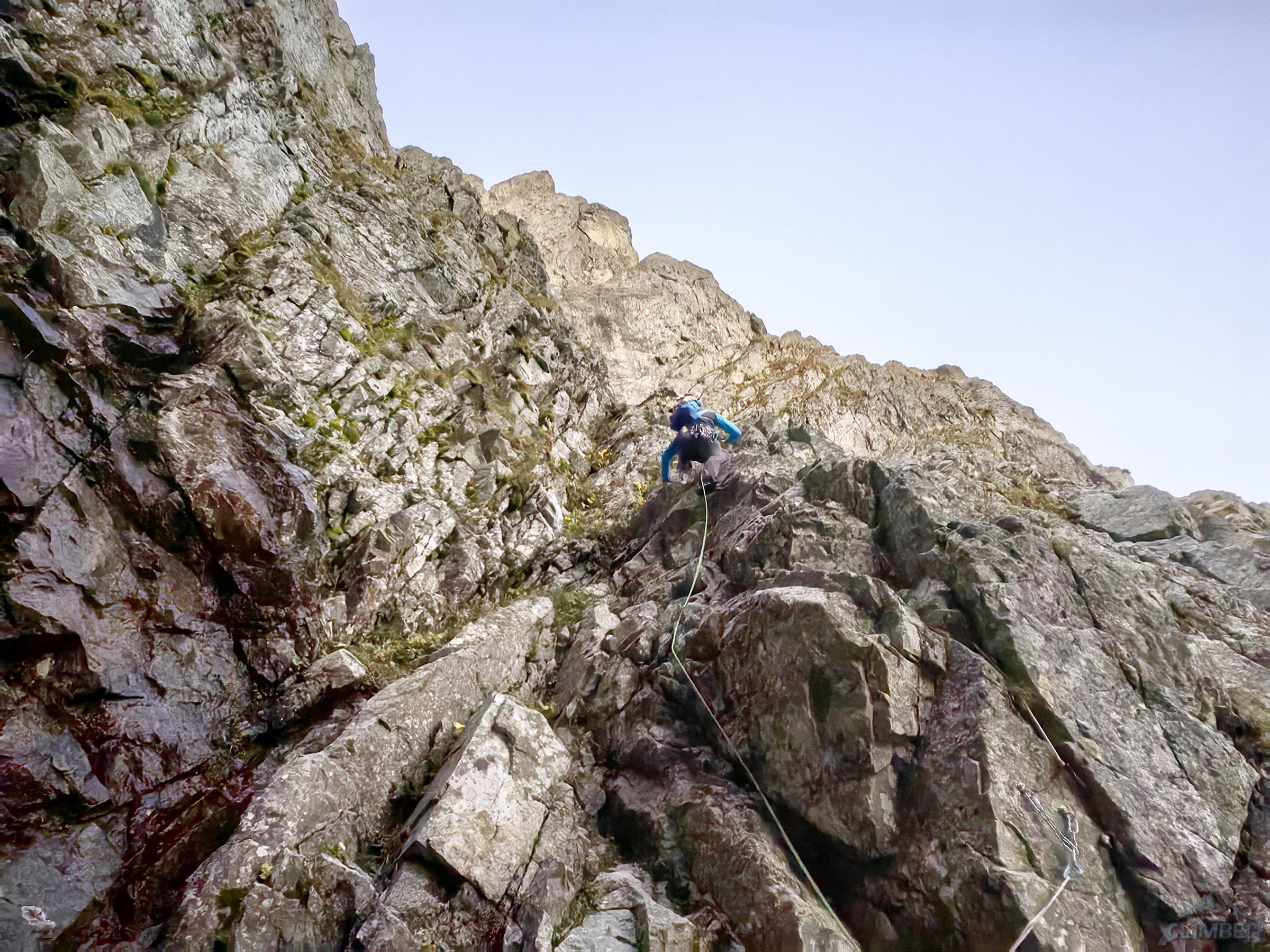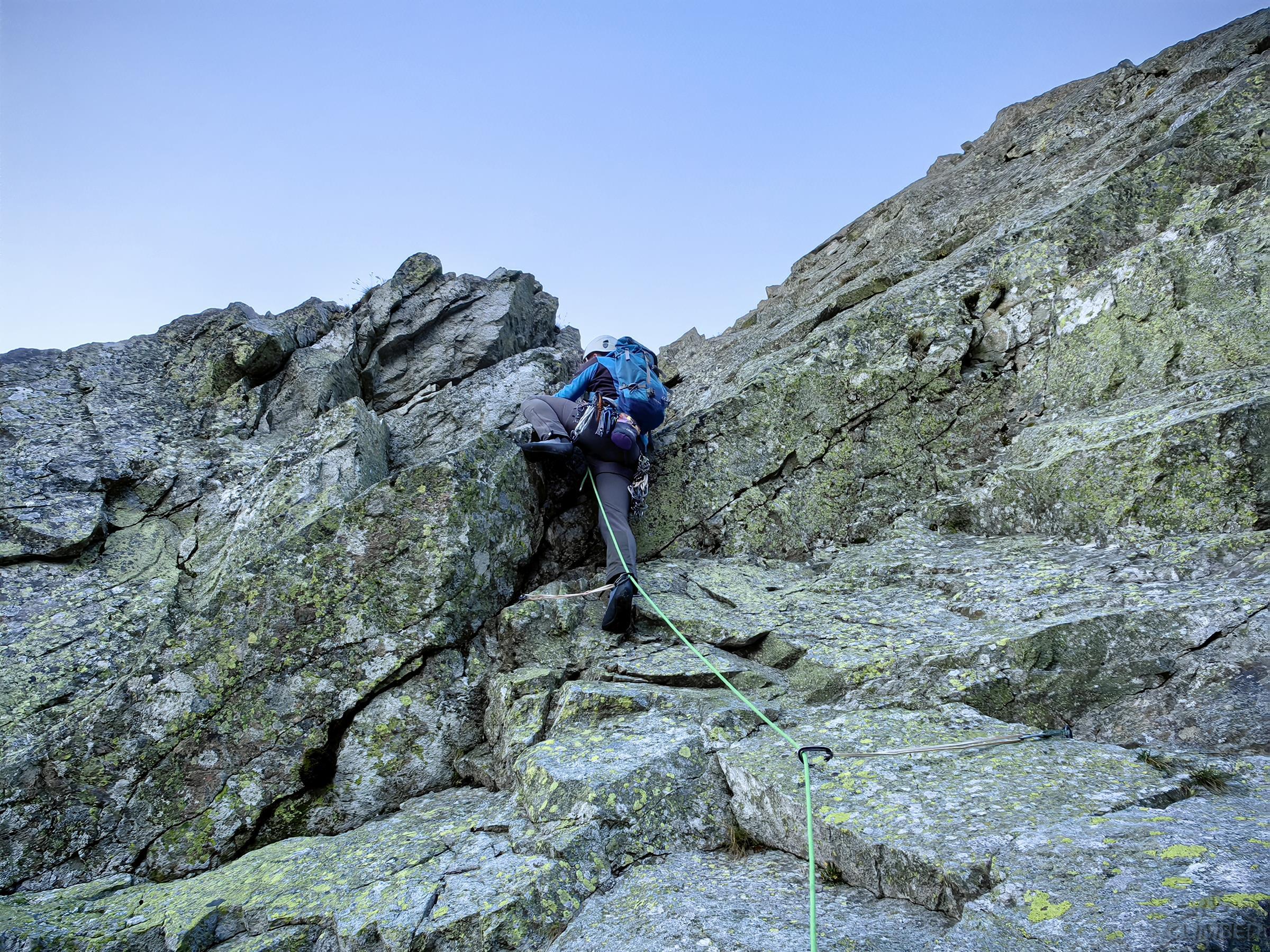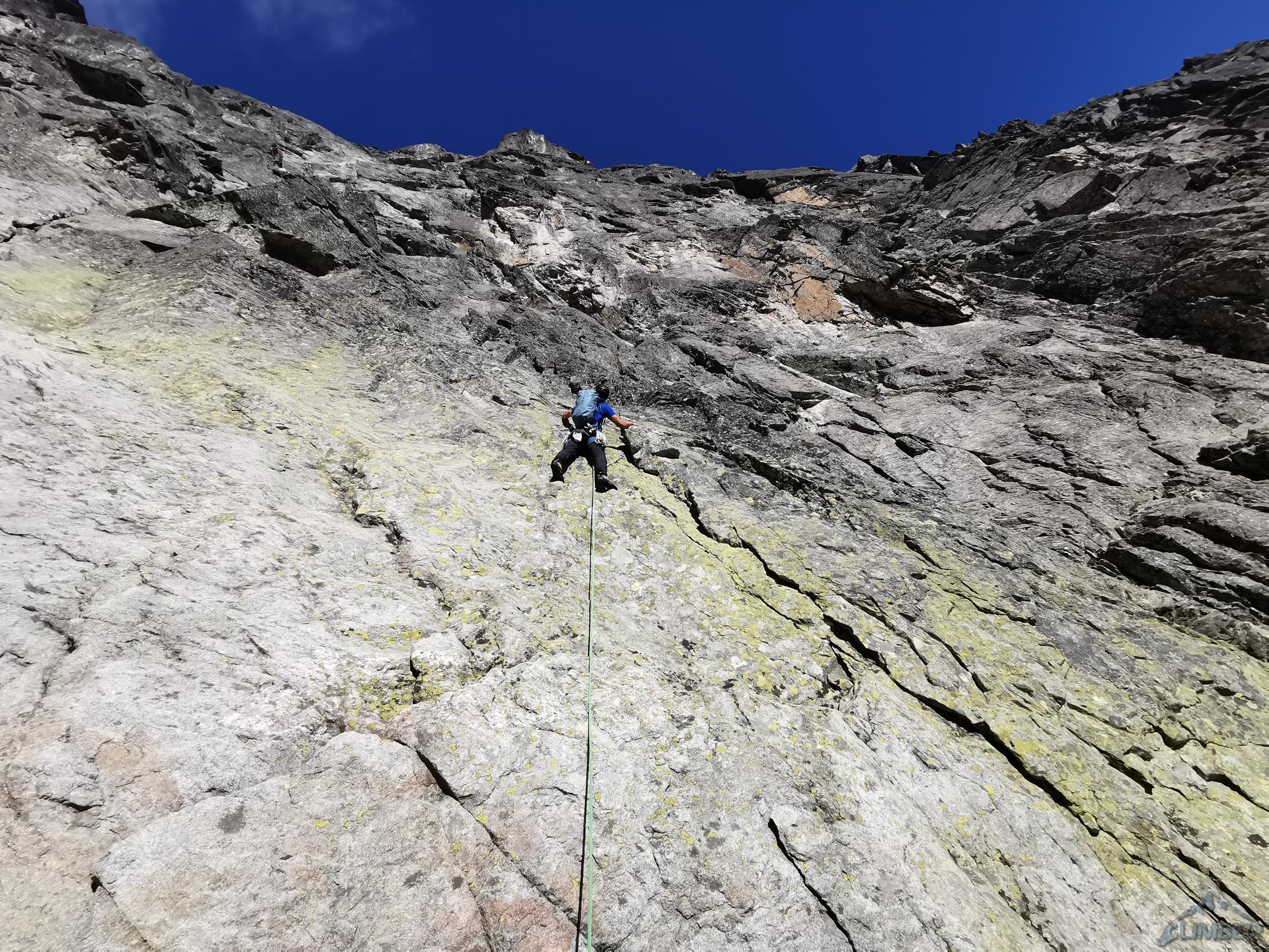 Z liną schodzi oczywiście więcej czasu jednak mimo braku znajomości dwóch dróg, robienia przerw i wielu zdjęć oraz pilnowania stylu klasycznego (również na drugiego) udaje nam się spokojnie wyrobić od świtu do zmierzchu w krótszy już jesienny dzień. Przygoda jest rodem z długich alpejskich klasyków - wspinania (choć nietrudnego) wychodzi około 2000 metrów, a więc ta i podobne kombinacja to świetny sposób na „wydłużanie” tatrzańskich ścian 😊.