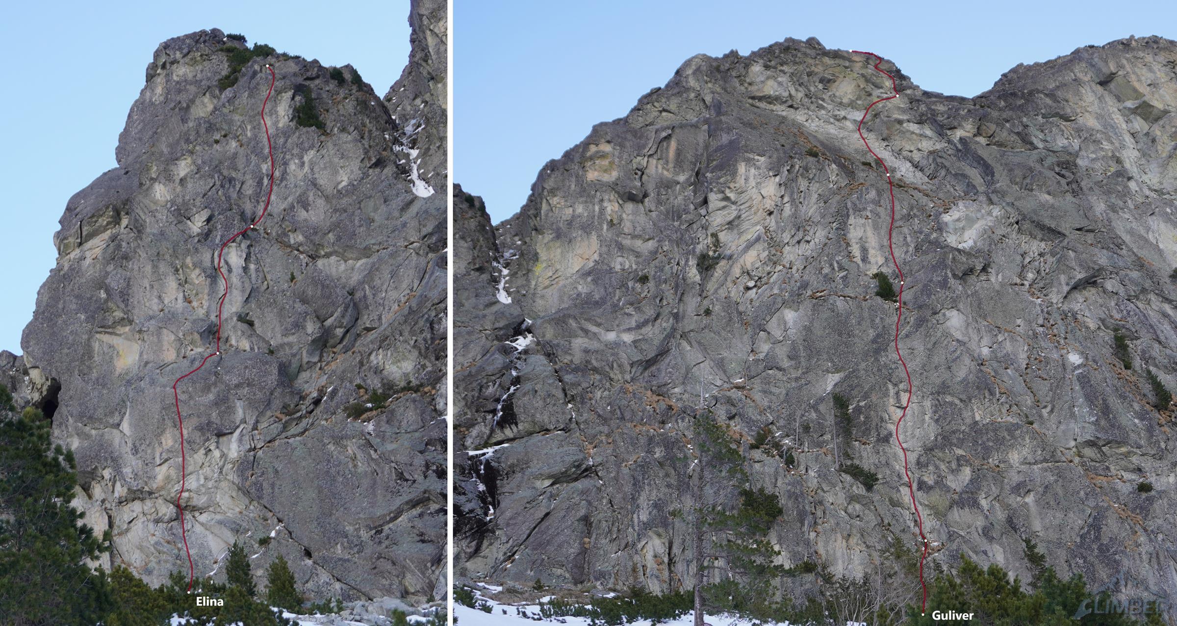 Guliver zlokalizowany jest na tzw. Lewej Turni i biegnie pomiędzy dwoma innymi obitymi liniami o podobnych trudnościach – Carpe Diem i Ślepą Uliczką. Co ciekawe nie jest to zupełnie niezależna droga, a wariant starszego Priamo cez previs – nowe jest prostowanie na drugim wyciągu oraz cała końcówka.