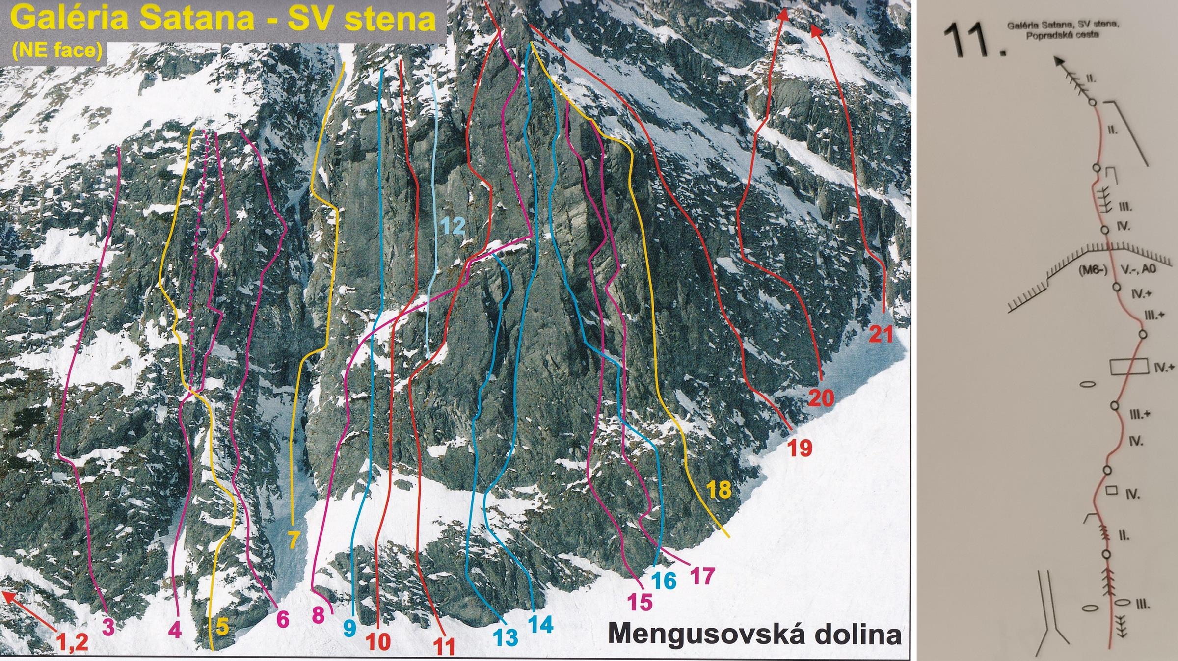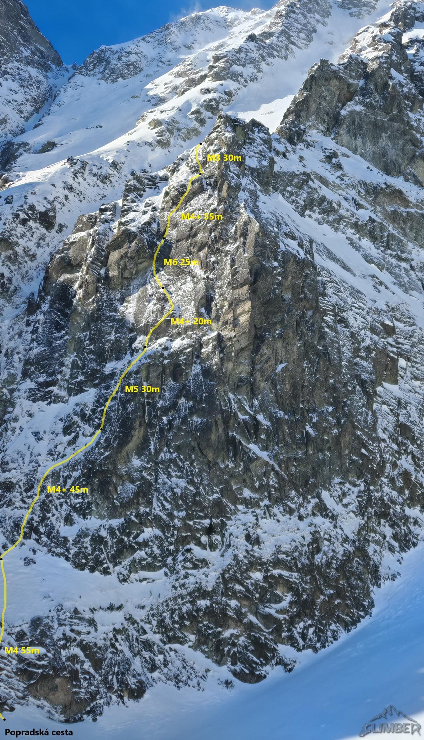 Po powrocie z Sycylii ciężko z powrotem przestawić się na tryb zimowy, gdy jednak w Tatrach nadchodzi słoneczna (choć mroźna i wietrzna) sobota nie ma co szukać dalszych wymówek 😉. Niezbyt sprzyjające warunki powodują, że porzucamy plan by działać wysoko i wybieramy się na Galerię Szatana, której mimo planów nie udało się jeszcze nigdy odwiedzić. Północno-wschodnia zerwa oferuje ponad 20 dróg, a nowych cały czas przybywa – dominują linie średnio-trudne, choć nie brakuje i ekstremów jak Fyzioklinik (M11), Magická linia (M8+) czy słynna Popradská strecha (M9). Obok tej ostatniej biegnie stara Popradská cesta (oryg. M6-) o potwierdzonej zimowej urodzie - to właśnie ją bierzemy na celownik przy okazji pierwszej wizyty.