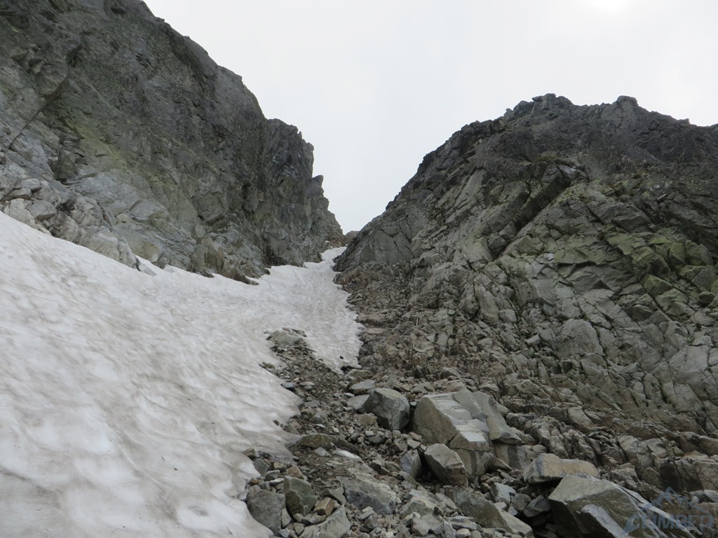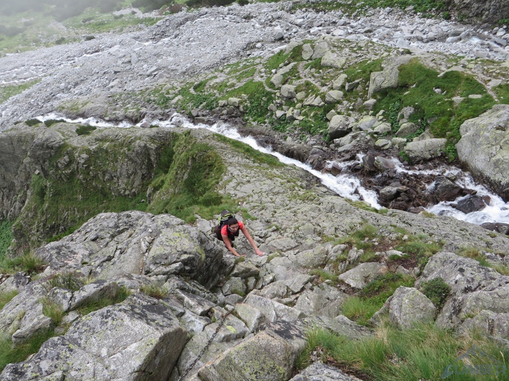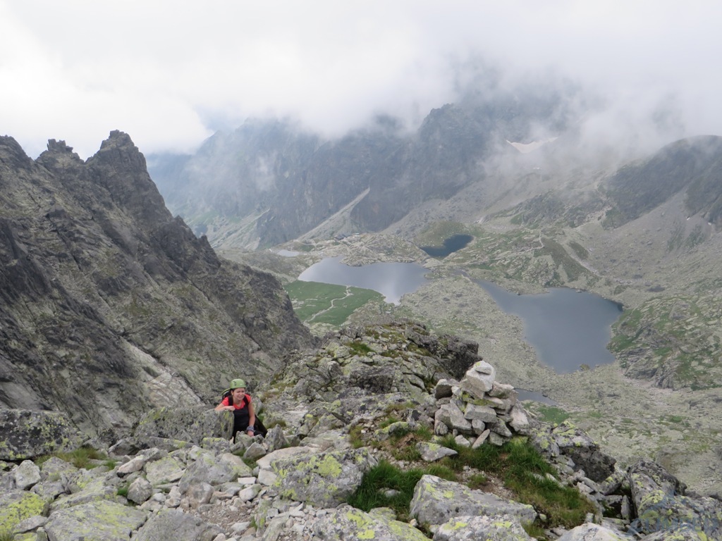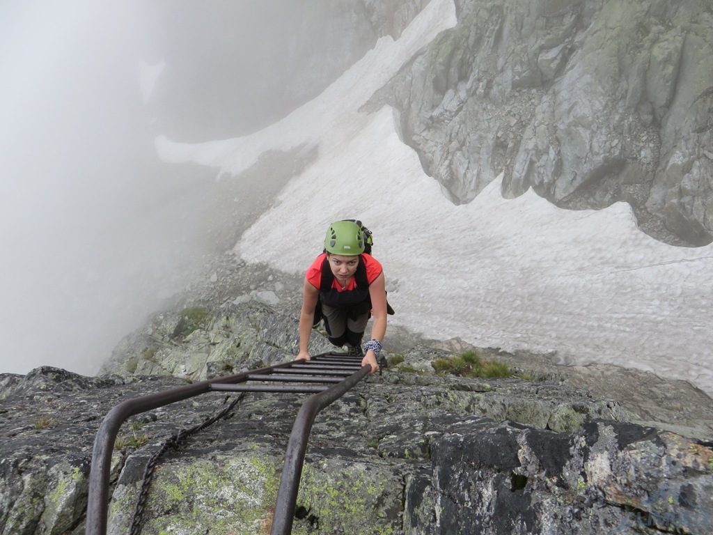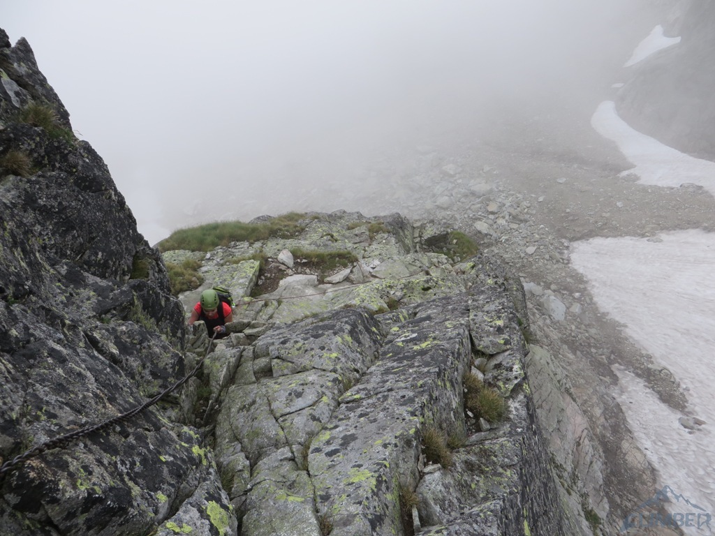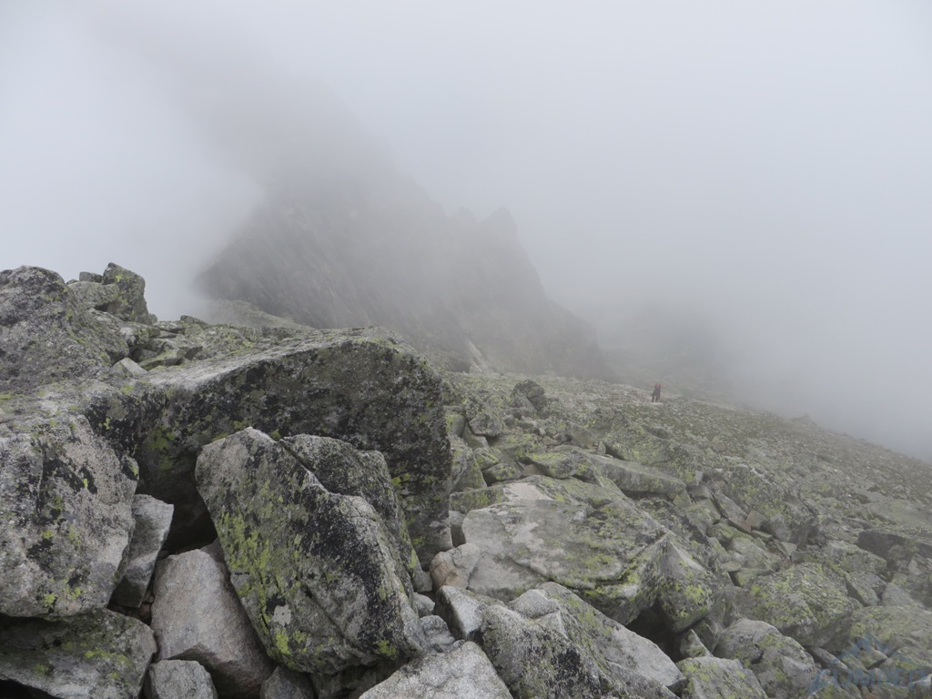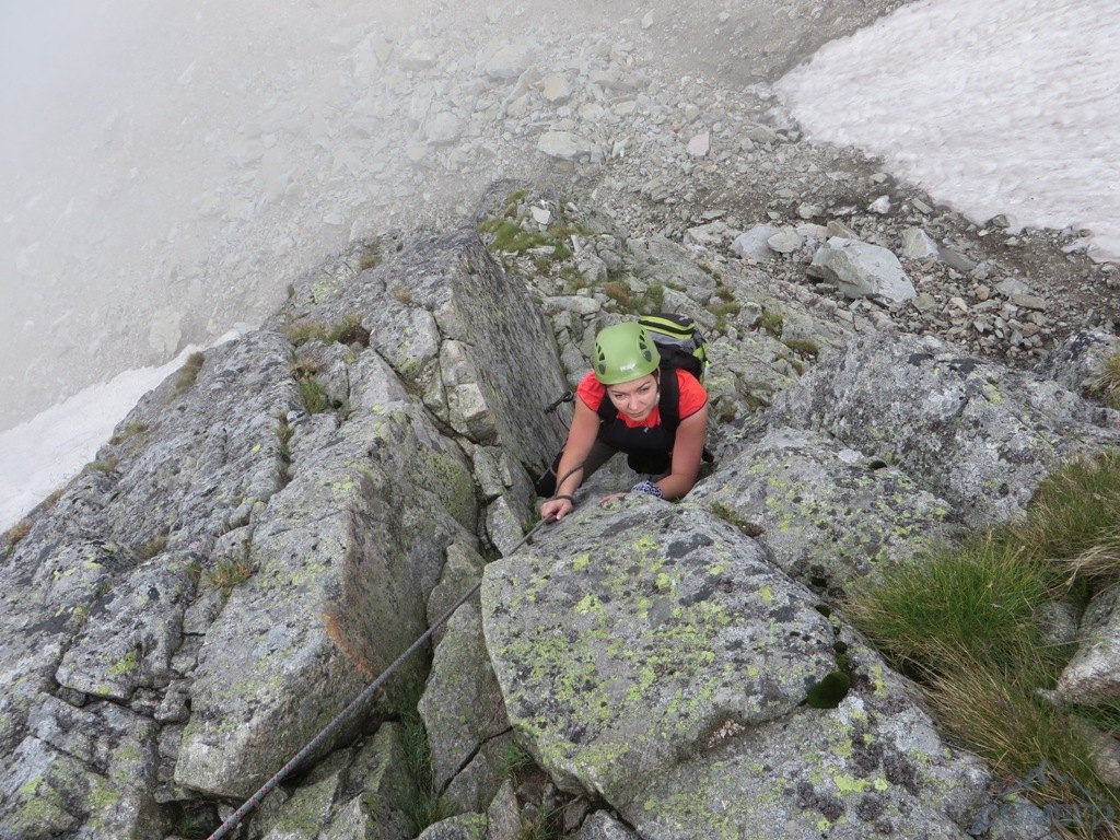 Po pokonaniu progu Doliny Dzikiej dopada nas pierwsza ulewa, nie odpuszczamy jednak i ciśniemy dalej. Wejście z tej strony na Przełęcz jest turystycznie dość wymagające, w wielu miejscach zlikwidowano łańcuchy obecne na istniejącym w przeszłości szlaku. Ula jednak dzielnie prze do góry, z Sedla droga na szczyt jest już prostsza. W tych warunkach jesteśmy oczywiście jedynymi ludźmi w całej okolicy:) Na zejściu zaliczamy jeszcze dwa oberwania chmury i przemoczeni choć szczęśliwi dołączamy na obiad i imprezę do pozostałych klubowiczów ;)