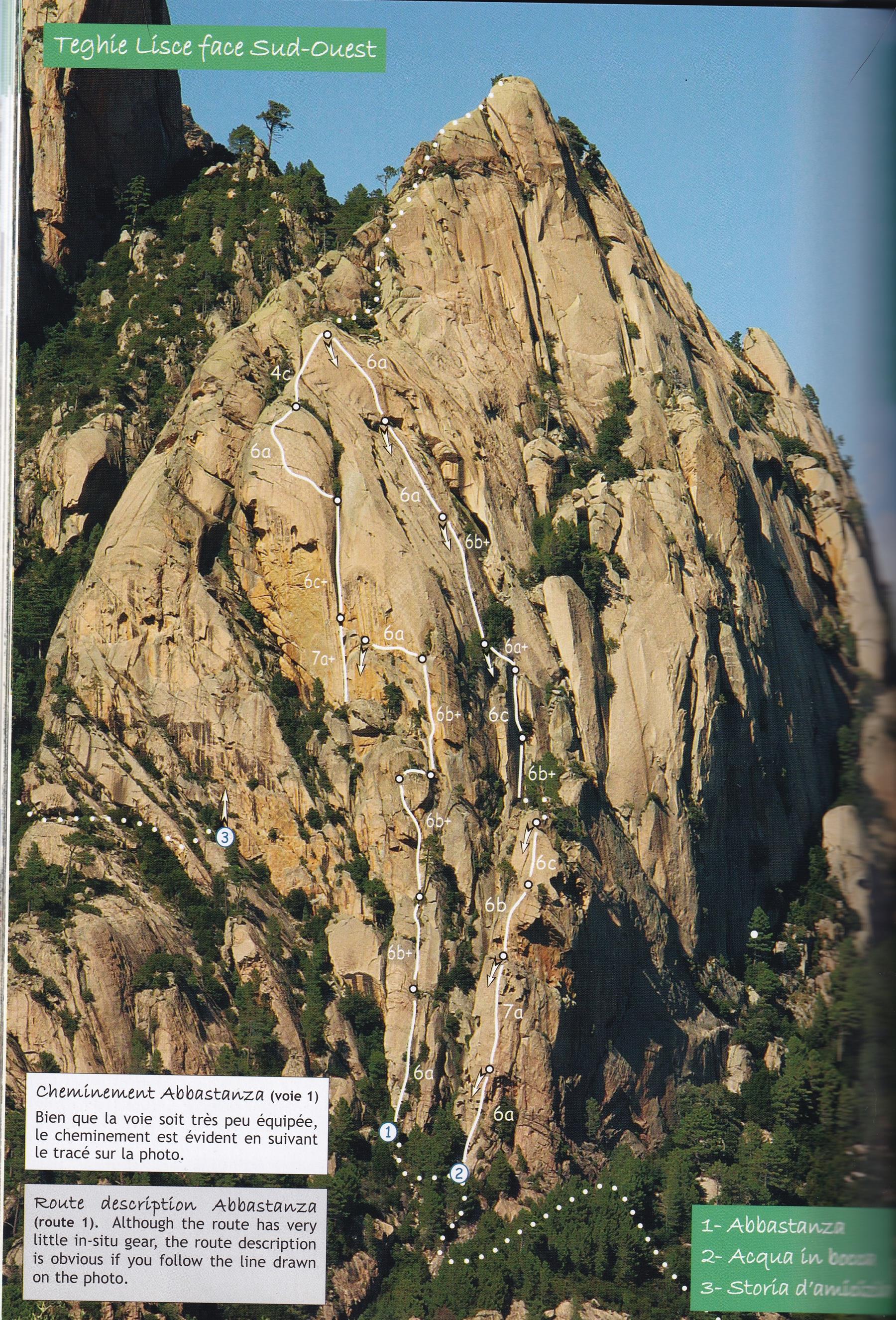 PS. Gładkie płyty i wymagające rysy słynnej Teghie Lisce były przez lata niedostępne, obecnie na ścianie jest kilkanaście dróg w tym m.in. mająca niewiele powtórzeń słynna Octogenese (8a+) czy tradowy mega-klasyk Porte des cieux (mocne 6b słynnych alpinistów z Chamonix) – na tą drugą chciałbym się zresztą kiedyś wybrać, choć i z pozostałcyh jest w czym wybierać!
