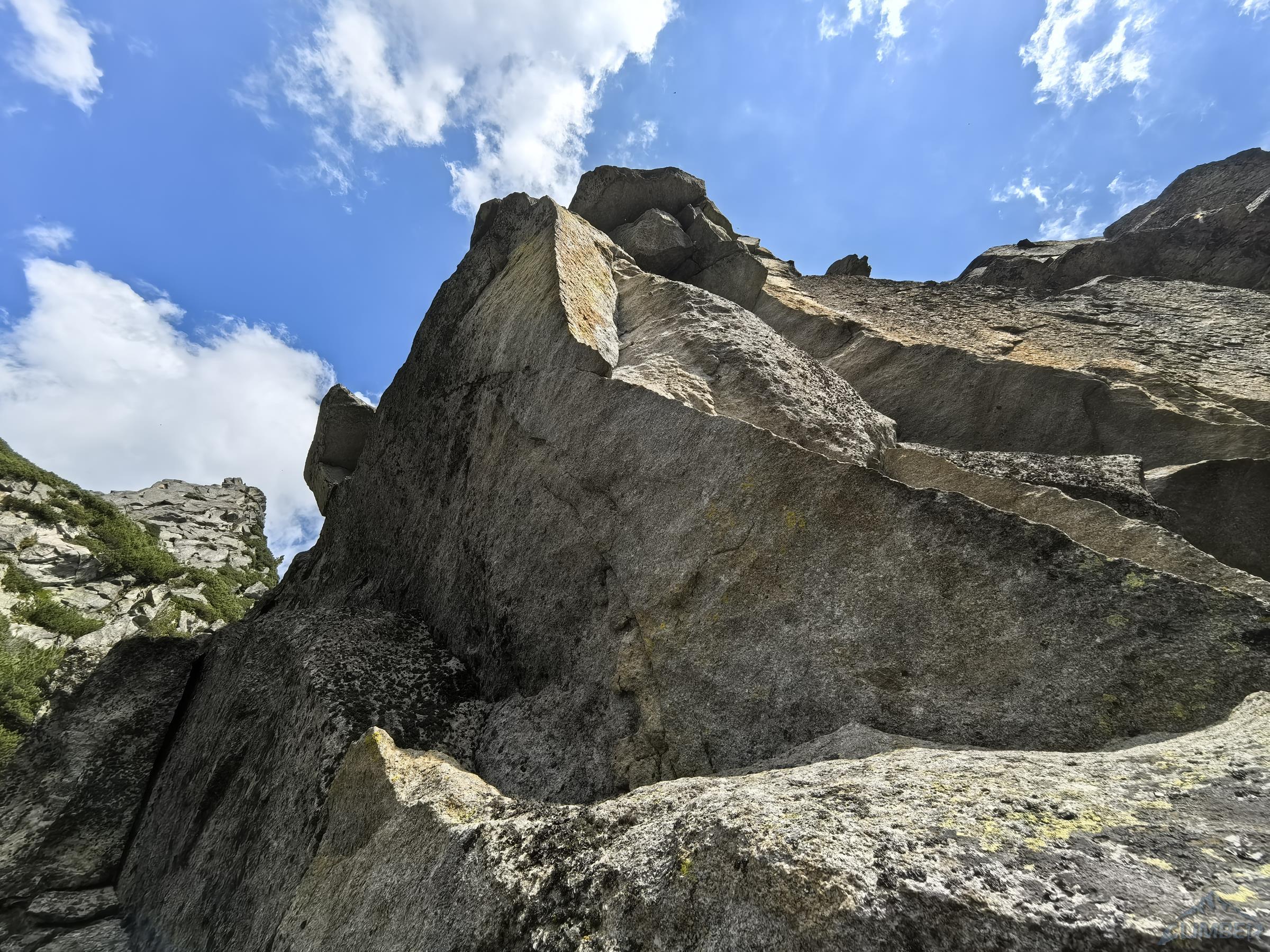 Trudności czekają już zaraz po starcie - trikowe wejście do wąskiego przewieszonego zacięcia i wyjscie z niego, które jest cruxem całej drogi. Znalezienie sposobu na przejście tego fragmentu zajmuje mi sporo czasu, w końcu jednak mam pomysł który rokuje, idę więc zobaczyć co jest dalej. Po kilku łatwiejszych metrach czeka siłowy trawers między okapami – mam słuszne obawy, że może braknąć mocy na przejście w ciągu. Podczas gdy odpoczywam Marcin próbuje cruxa na wędkę, mój patent jednak mu nie podchodzi, a że nie wymyśla nic podobnie przystępnego to odpuszcza. Opinie, że może być nieco trudniej niż IX- (autor podaje 7b+) w przypadku braku trafienia w najłatwiejszy patent mogą być słuszne.