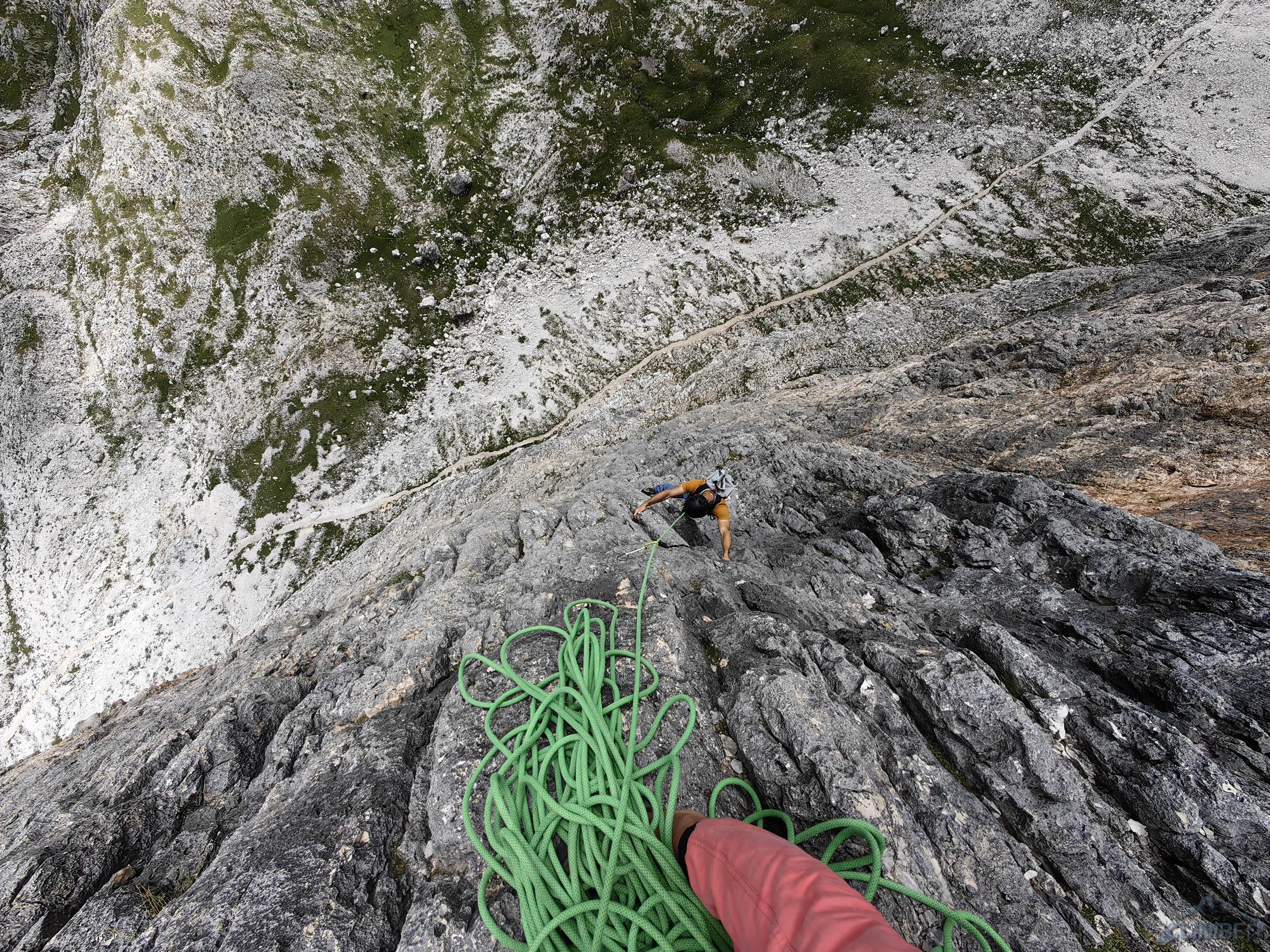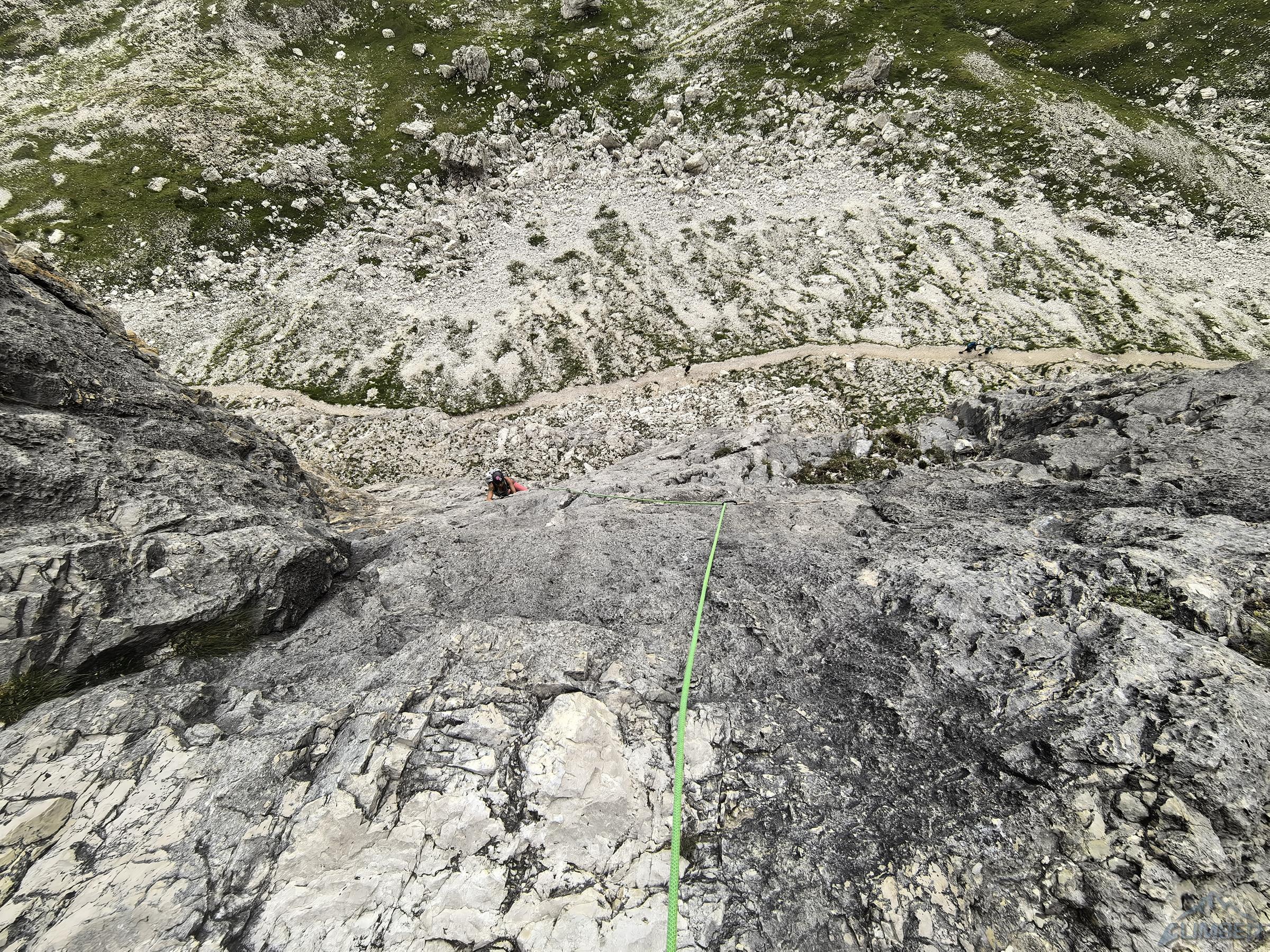 Operującym w tych trudnościach polecam jako świetny cel sam w sobie, mocniejszym wspinaczom – na przyjemny i szybki rozruch. No i te widoki na okoliczne ściany oraz Marmoladę, Civettę czy Grande Muro w oddali – ekstraklasa!
