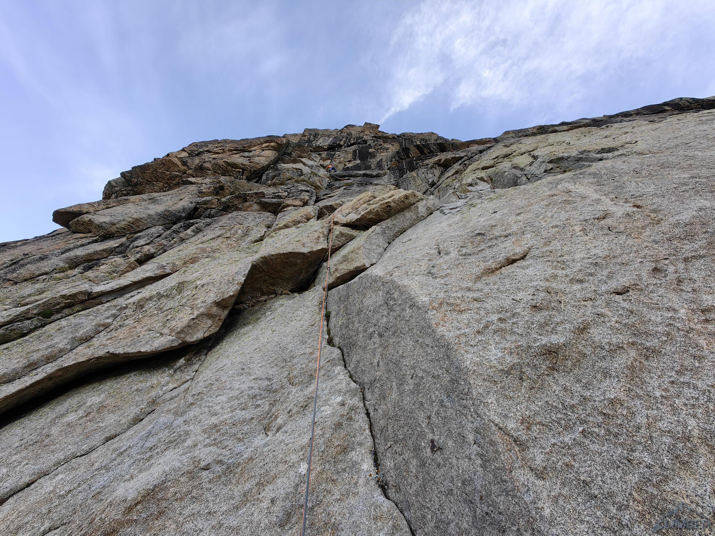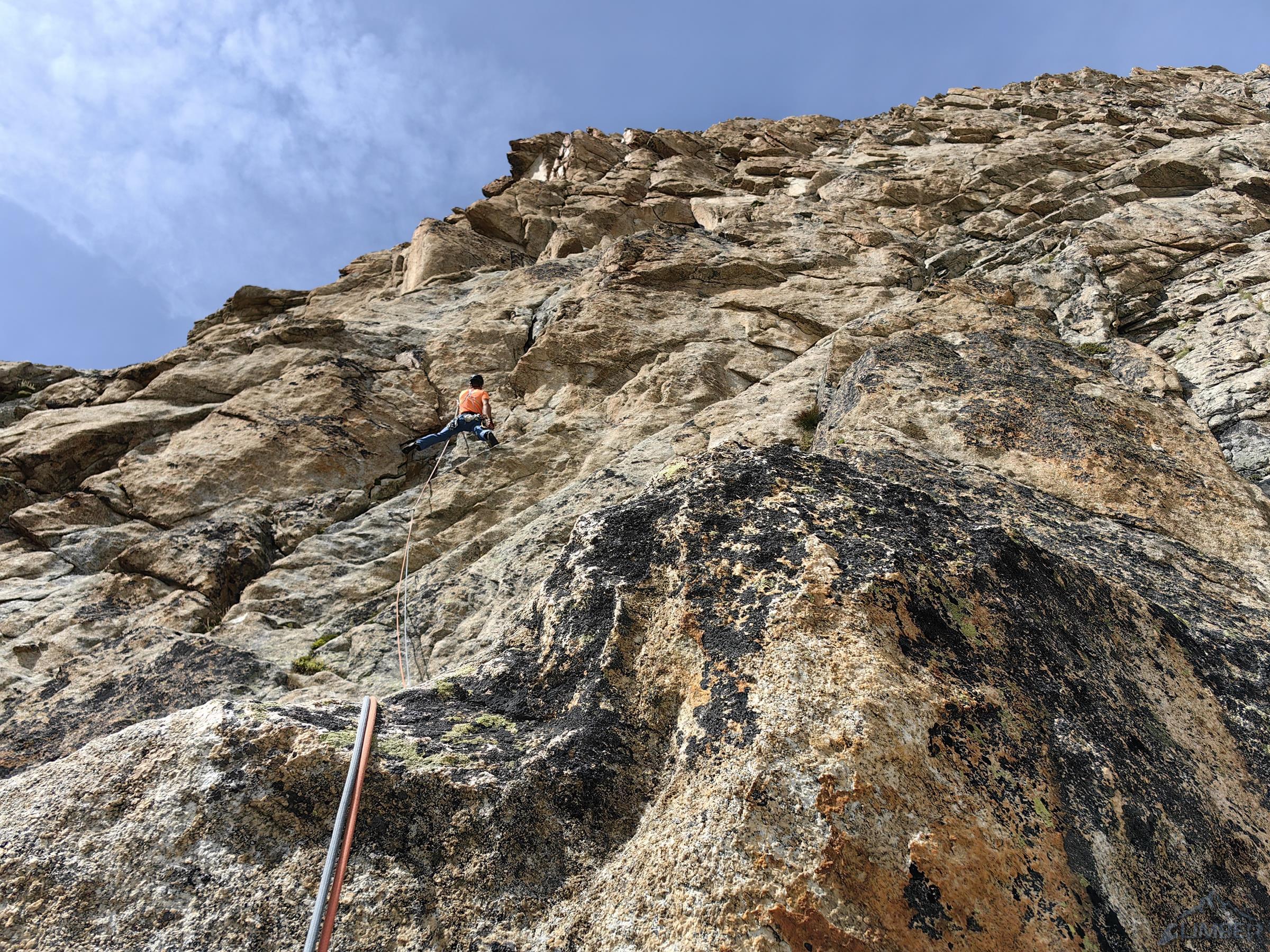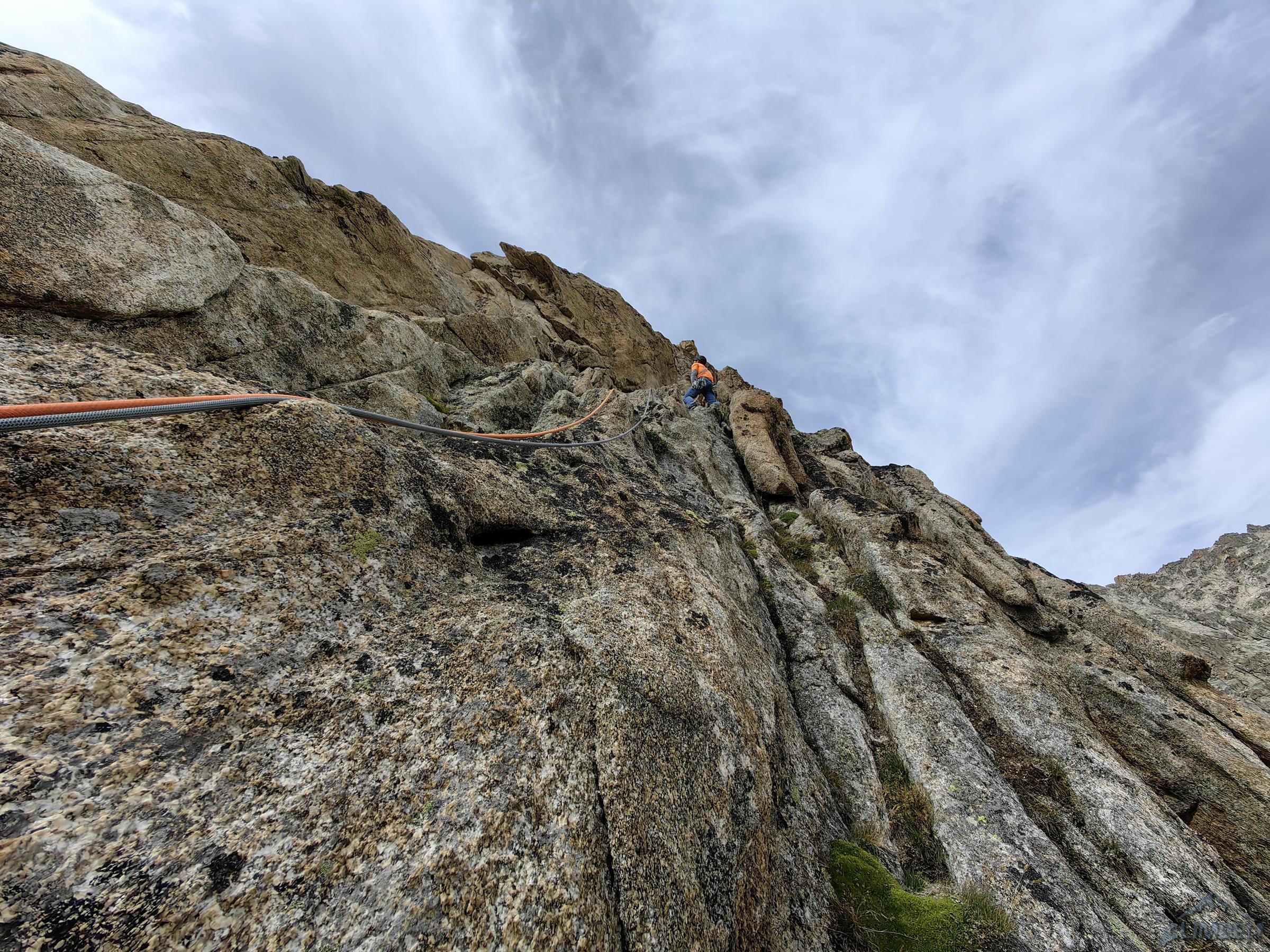 Po przejściu Physique (relacja TUTAJ) będącej jednym z głównych celów w sezonie, drugiego dnia można by odpocząć przed długim powrotem do kraju, ale mając tuż przy schronisku jedną z najlepszych turni w Alpach nie wchodzi to w grę 😊. Z powodu zmęczenia i przeziębienia Ani odpuszczamy przepiękną Lady Bonę (7a 450m, trzeba będzie wrócić!) i idziemy na łatwiejszego klasyka na ścianie wschodniej - Éthique de la Joie (6a+ 420m). Obiecuję, że będzie szybko, łatwo i przyjemnie ale tak nie jest – prowadzę wszystkie wyciągi i prawie każdy kolejny mimo niskiej wyceny daje lekki wycisk. Droga jest bardzo ładna ale i fizyczna, wymagająca świeżego ciała do dziesiątek dilferków i głowy do wychodzenia nad spity pomiędzy którymi często nic nie da się dołożyć.