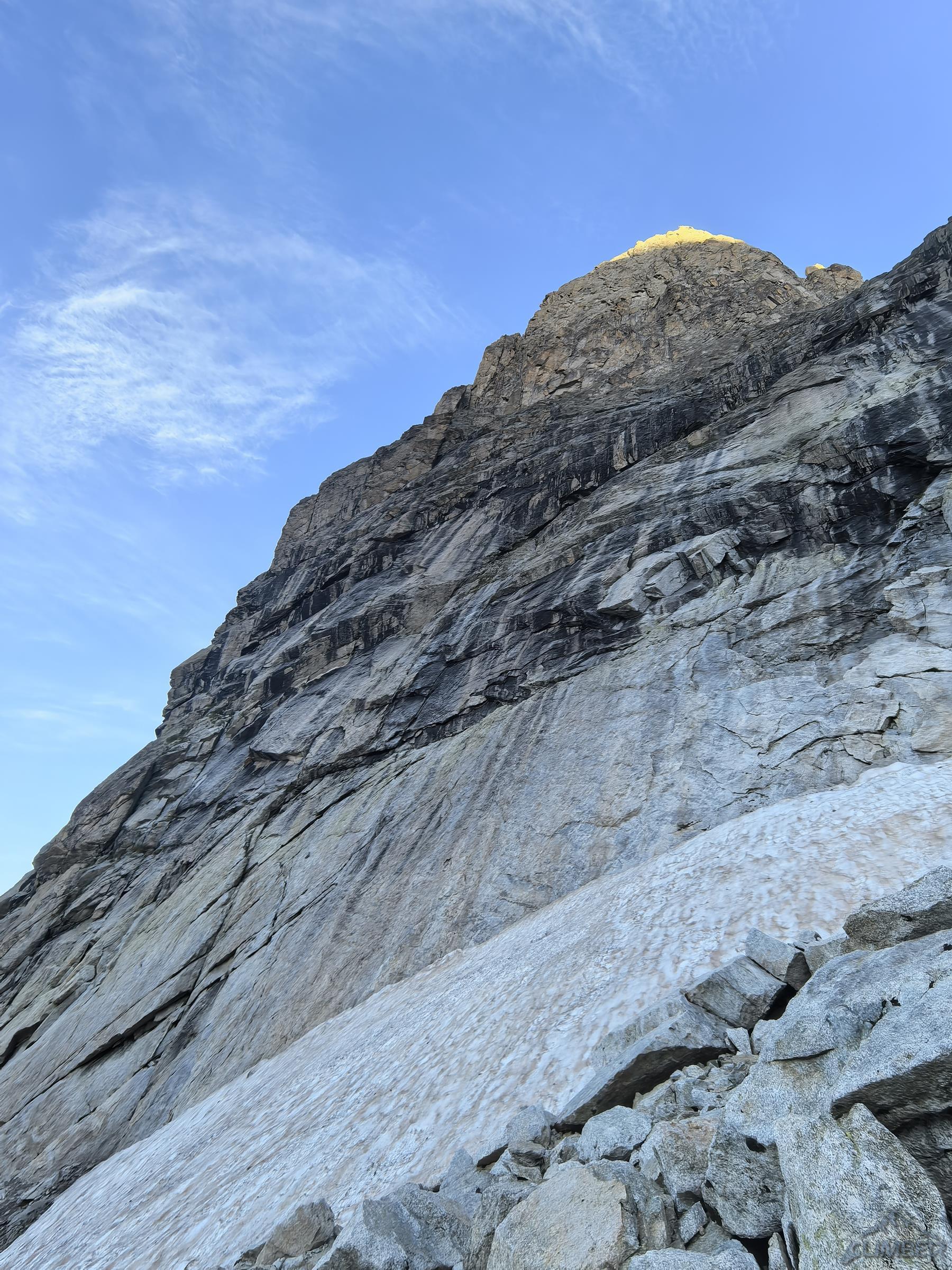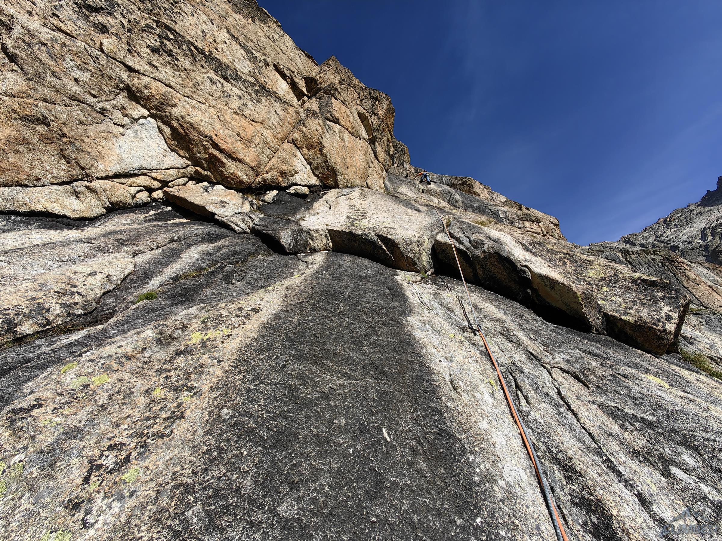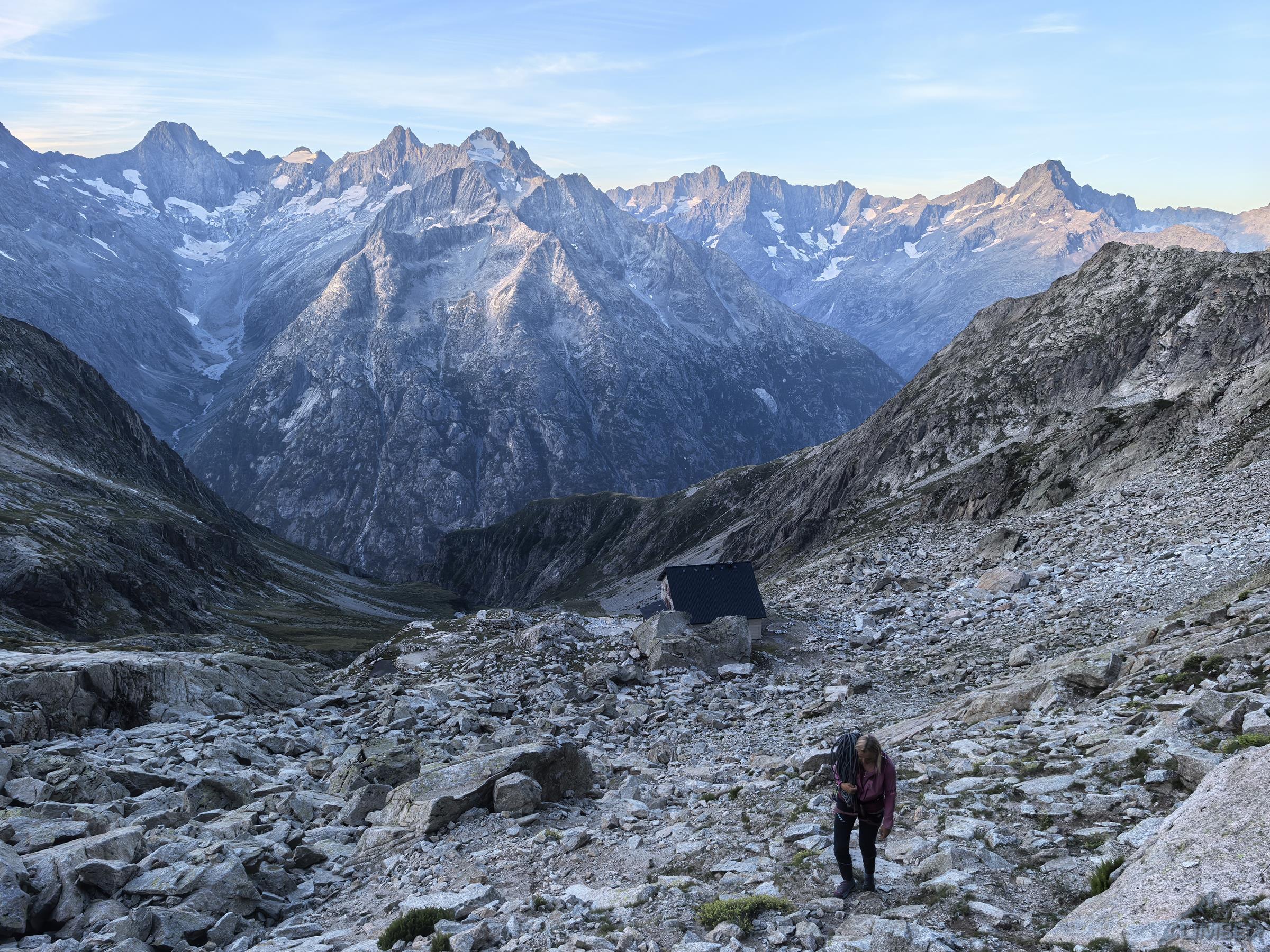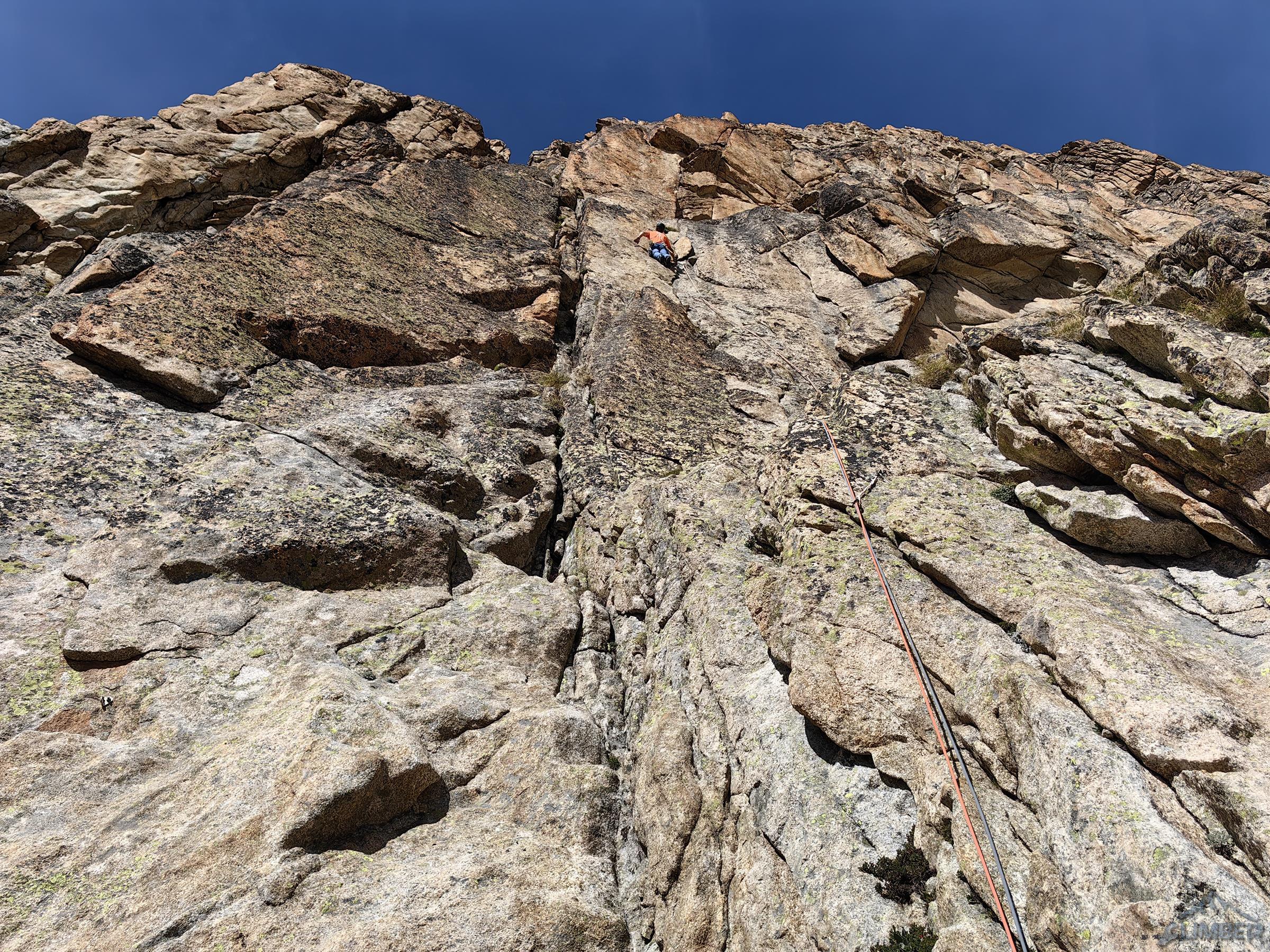 Po przejściu Physique (relacja TUTAJ) będącej jednym z głównych celów w sezonie, drugiego dnia można by odpocząć przed długim powrotem do kraju, ale mając tuż przy schronisku jedną z najlepszych turni w Alpach nie wchodzi to w grę 😊. Z powodu zmęczenia i przeziębienia Ani odpuszczamy przepiękną Lady Bonę (7a 450m, trzeba będzie wrócić!) i idziemy na łatwiejszego klasyka na ścianie wschodniej - Éthique de la Joie (6a+ 420m). Obiecuję, że będzie szybko, łatwo i przyjemnie ale tak nie jest – prowadzę wszystkie wyciągi i prawie każdy kolejny mimo niskiej wyceny daje lekki wycisk. Droga jest bardzo ładna ale i fizyczna, wymagająca świeżego ciała do dziesiątek dilferków i głowy do wychodzenia nad spity pomiędzy którymi często nic nie da się dołożyć.