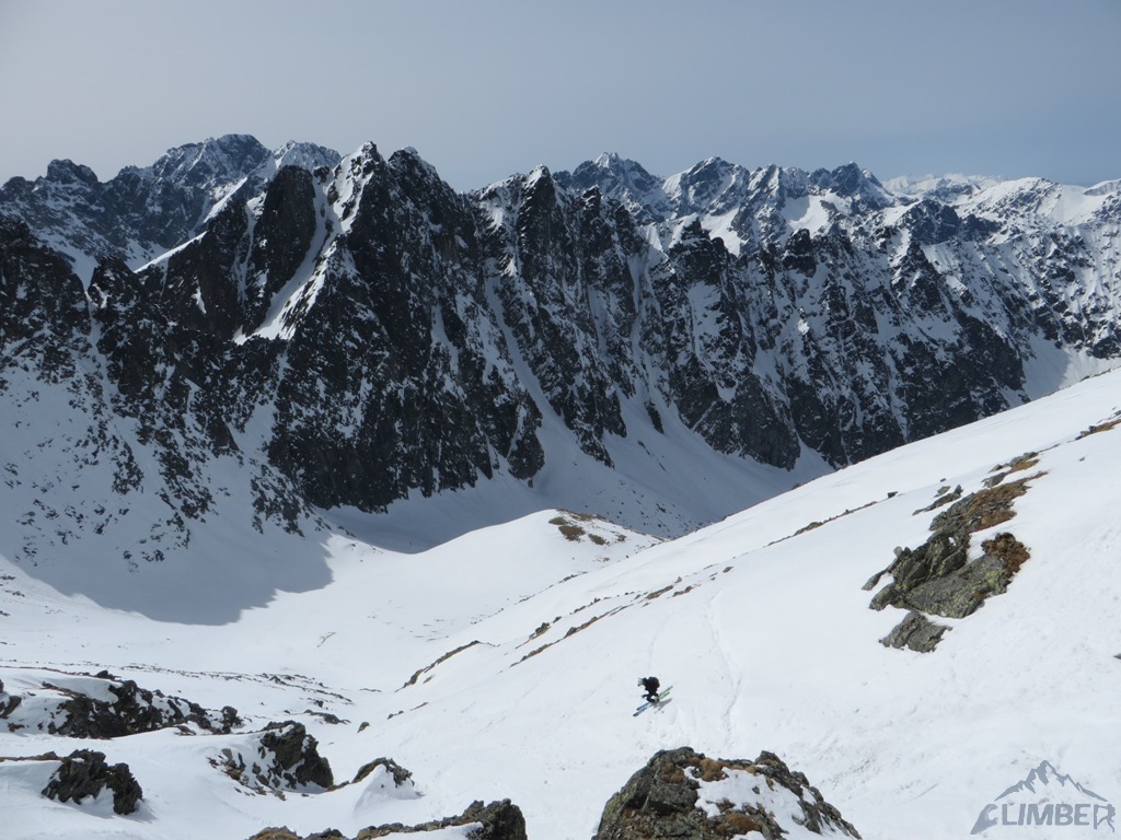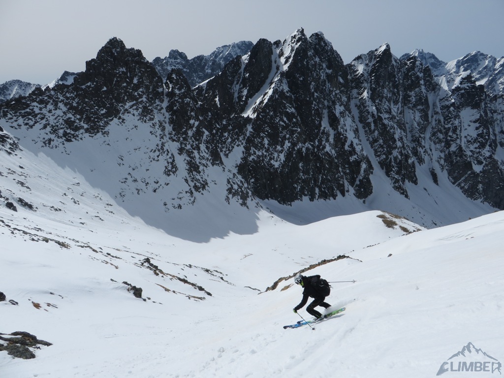 Później jest już jednak lepiej i ochoczo szuramy do góry podziwiając niesamowite widoki na Jaworowy Mur w iście późno-wiosennej temperaturze. Długo oczekiwany zjazd (po przejściu 12-kilometrowego odcinka) daje nam dużo frajdy, chociaż śnieg już jest mocno „puszczony”. Piękna tura w klimatycznej i mało popularnej dolinie przy świetnej pogodzie – to jest to :)