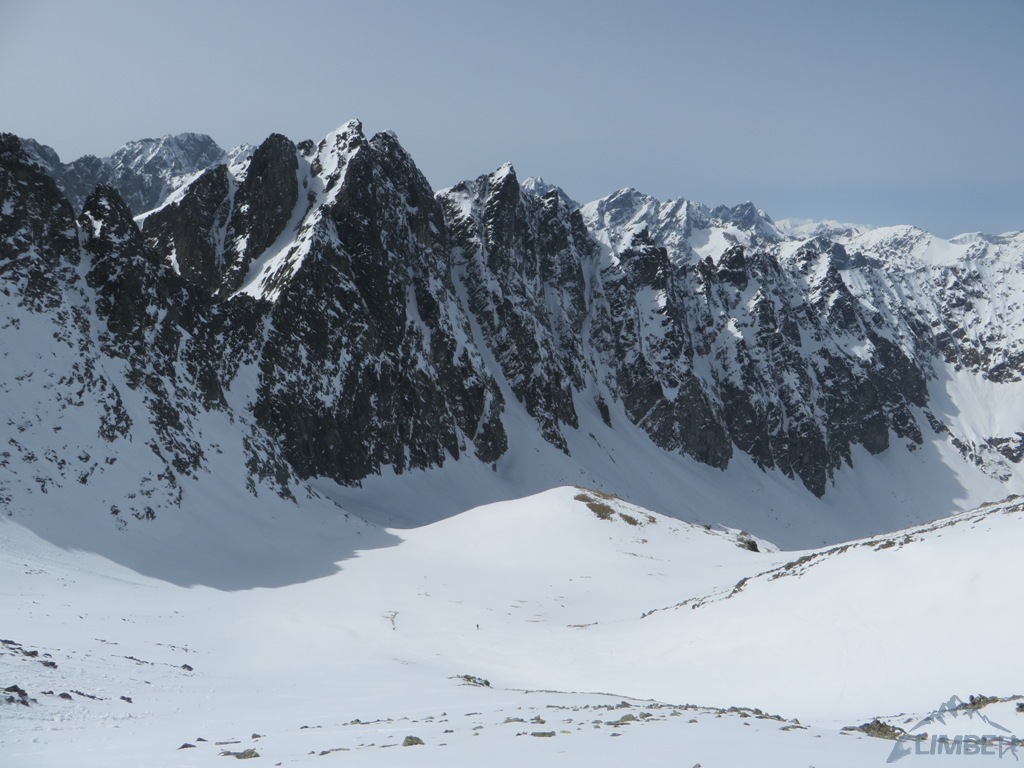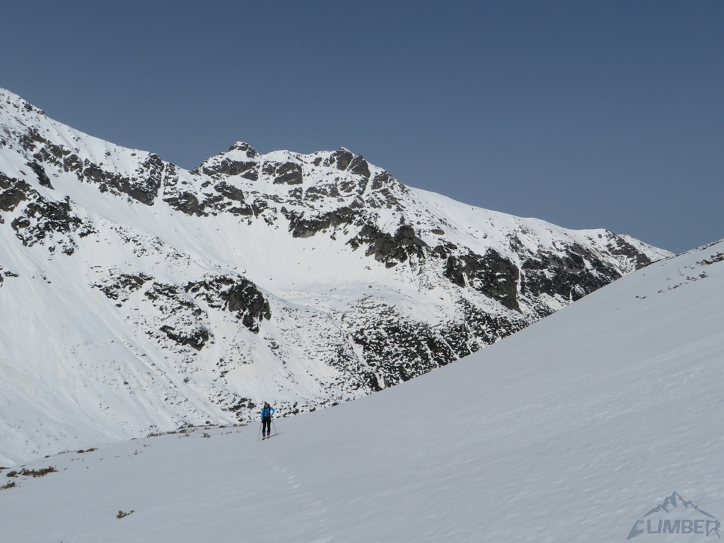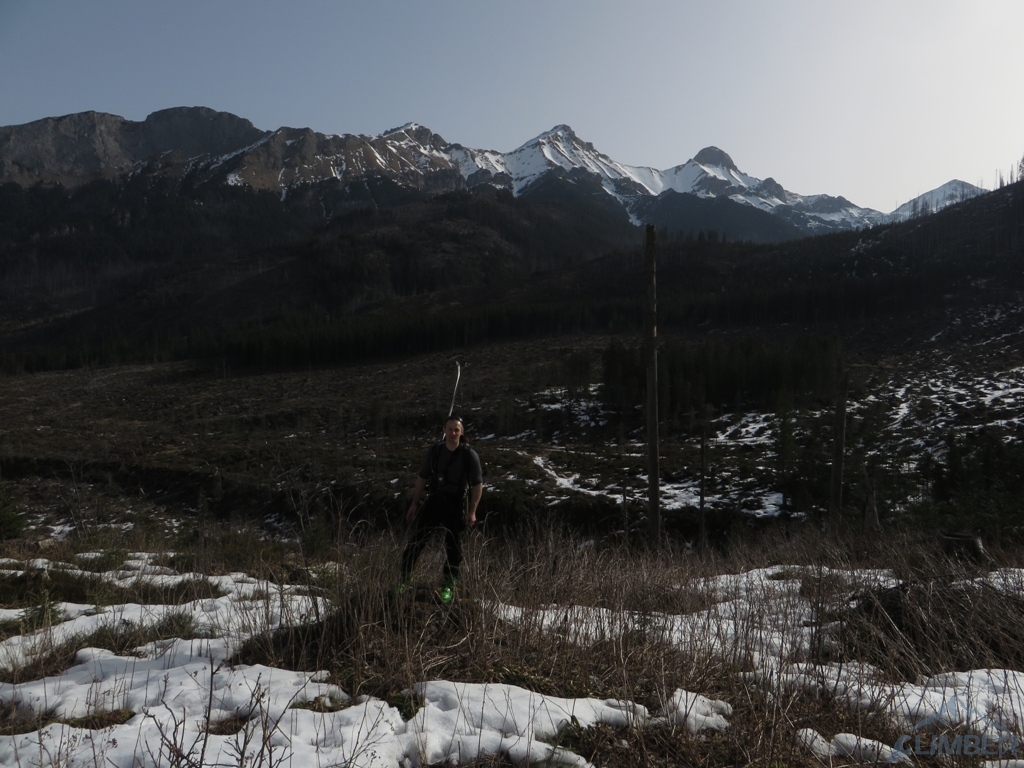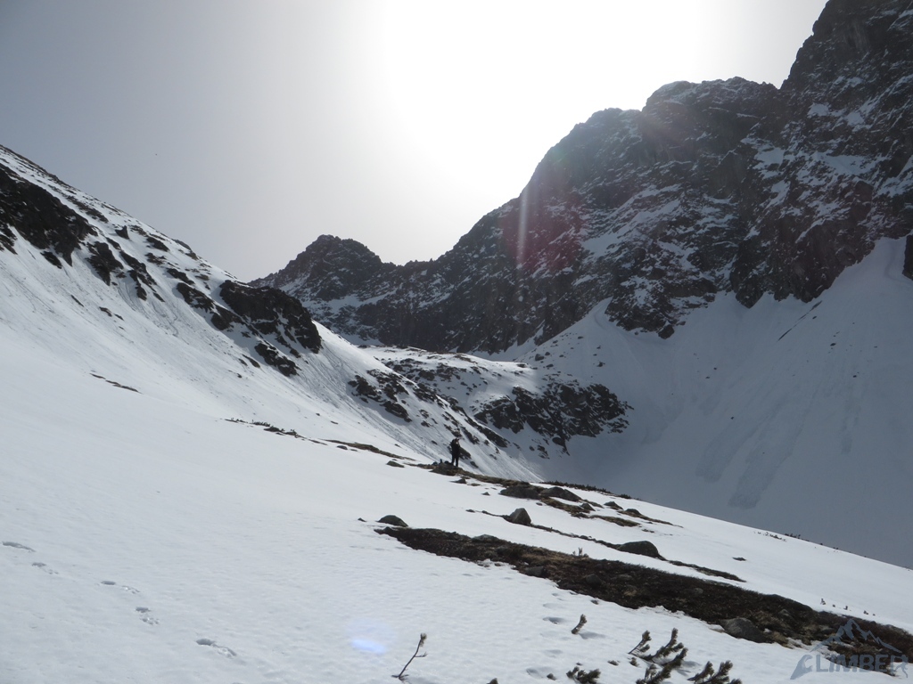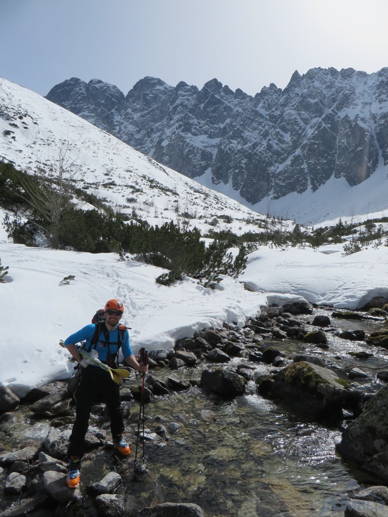 Temperatura mocno poszła w górę więc trzeba korzystać z resztek śniegu w Tatrach :) Dlatego też decydujemy się na przejście trochę zapomnianej Doliny Jaworowej i zjazd z Przełęczy Lodowej. Przez pierwsze kilometry śniegu niestety brak więc narty na plecach czyli klasyczny skitouring tatrzański ;)