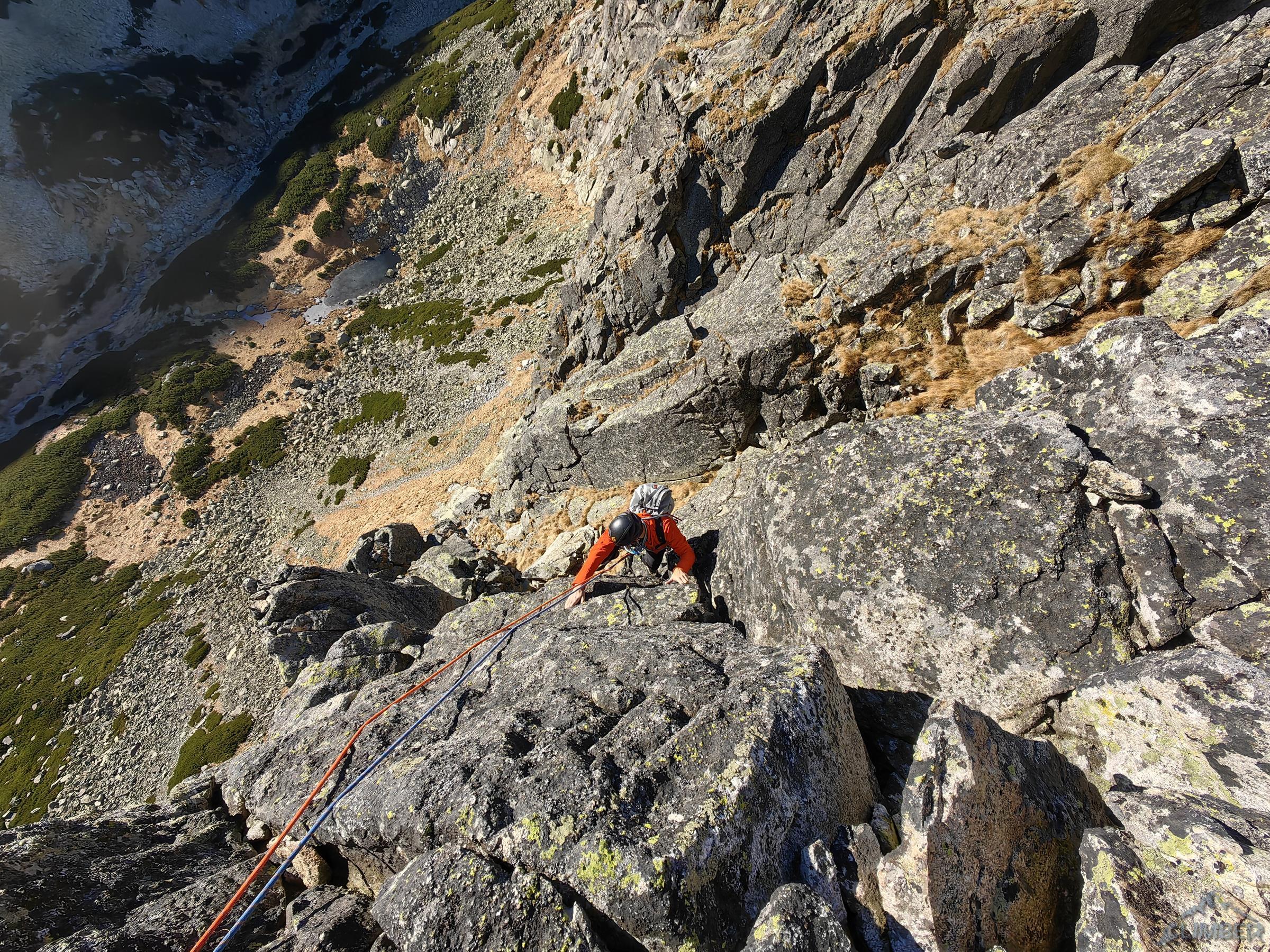 Piękna jesień w Tatrach cały czas trwa, udaje się więc kontynuować wspinaczkowe wycieczki po polecanych drogach. Tym razem wraz z Anią spędzamy weekend w Staroleśnej, pierwszego dnia działając na Strzeleckiej Turni, drugiego na Ostrym Szczycie – w sumie udaje przejść się cztery linie, będące moimi numerami 37-40 w tatrzańskim letnim sezonie 😊. Na Prawy Filar (V) Strzeleckiej wracam po latach (o poprzedniej wizycie TUTAJ) by towarzyszyć partnerce i przy okazji kilka wyciągów zrobić innym wariantem niż poprzednio. Robiony w drugiej kolejności Lewy Filar (V-) choć wyraźnie łatwiejszy, miło zaskoczył – zarówno urodą jak i nowymi stanowiskami z ringów oraz spitem w trudnościach.