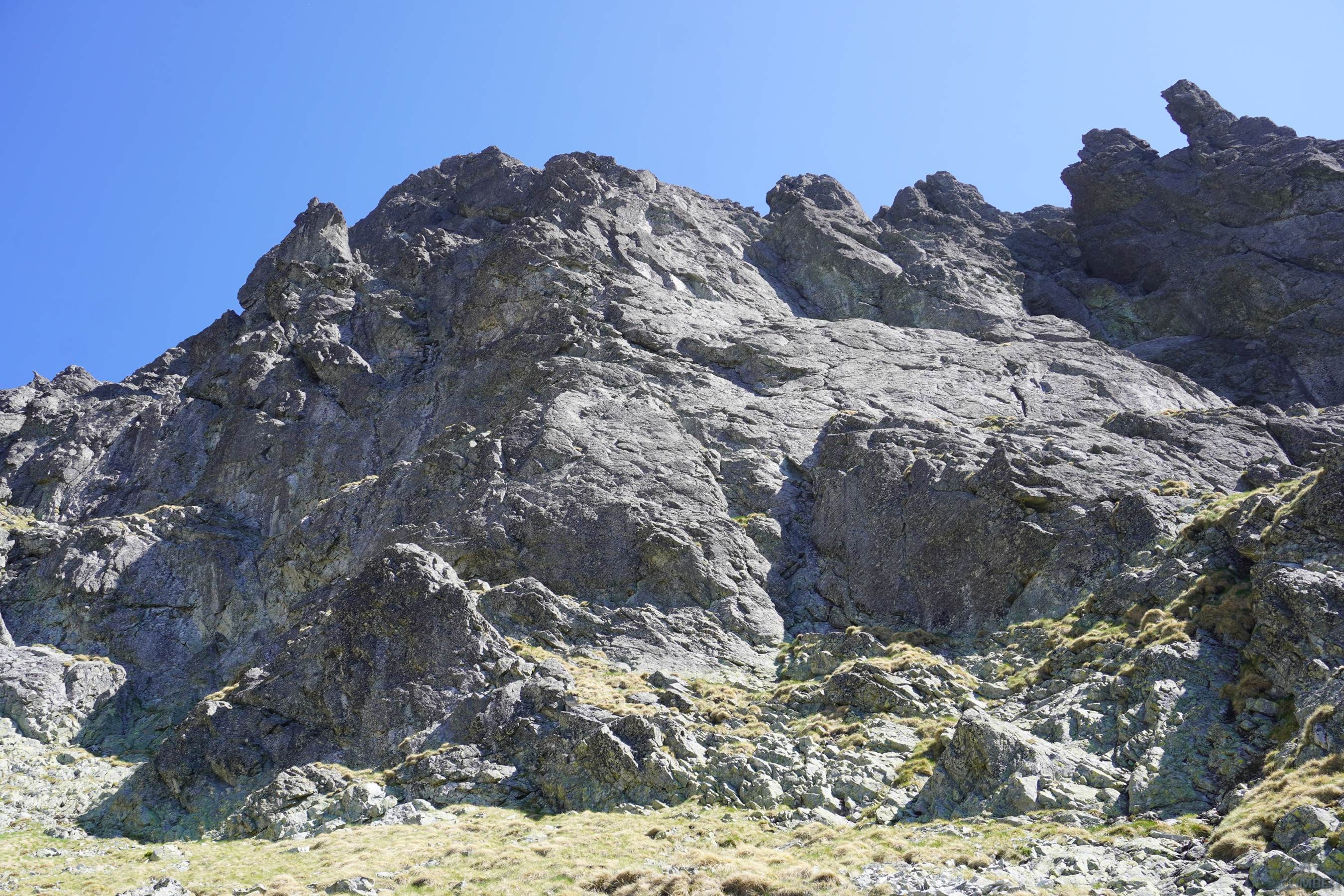 Po sobotnim sportowym wspinaniu na Turni nad Skokiem w niedzielę wybieramy się z Anią na łańcuchówkę w masywie Granatów Wielickich. Plan zakłada połączenie Południowych Filarów Podufałej Baszty i Podufałej Turni, a następnie dorzucenie drogi na północno-zachodniej ścianie Wielickiej Baszty. Finalnie kończy się niestety tylko na drugiej wymienionej drodze, jednak szczegółowy rekonesans nie pójdzie na marne, do tego ktoś być może skorzysta z inspiracji. Pierwsza część planowanej kombinacji narzuca się zresztą intuicyjnie – w ramach podejścia pod Podufałą Turnię aż prosi się bowiem by przejść jedną z dróg na Podufałej Baszcie, z której wychodzimy wprost na Granacką Ławkę, jakieś 50 metrów nad podstawą pierwszej wspomnianej ściany.