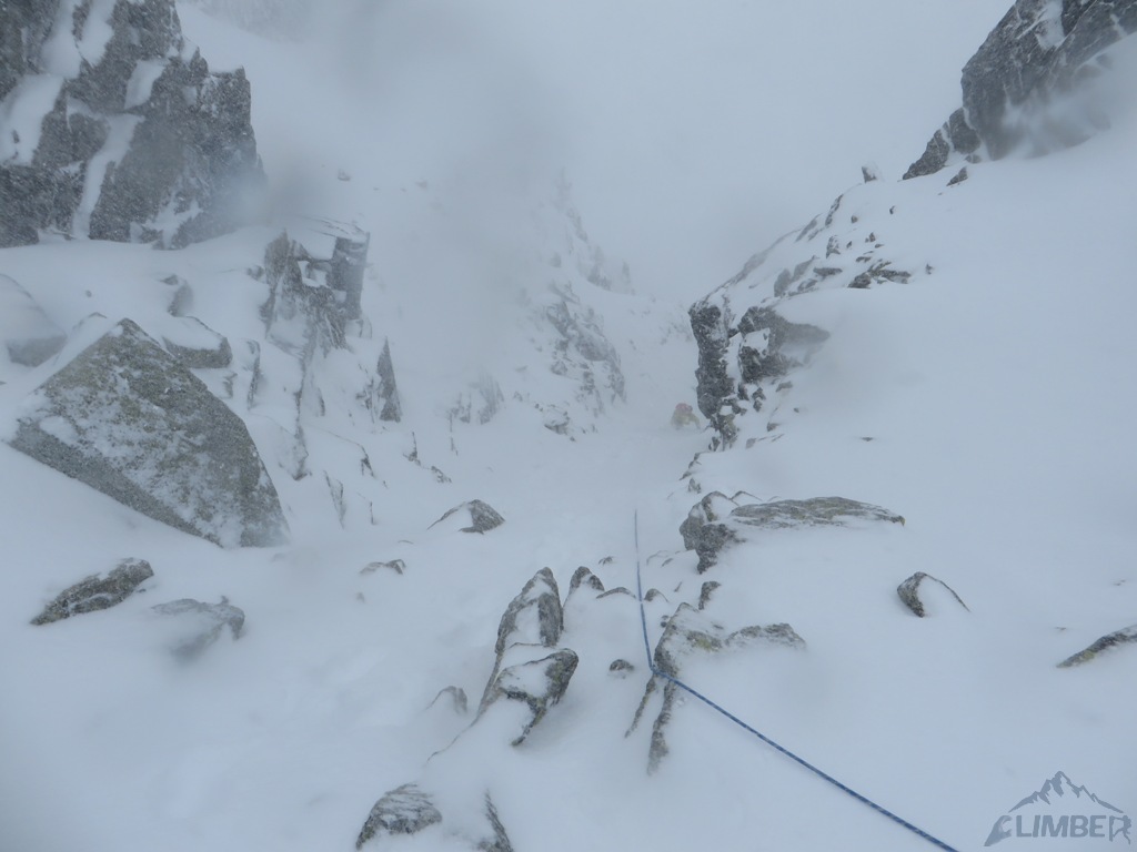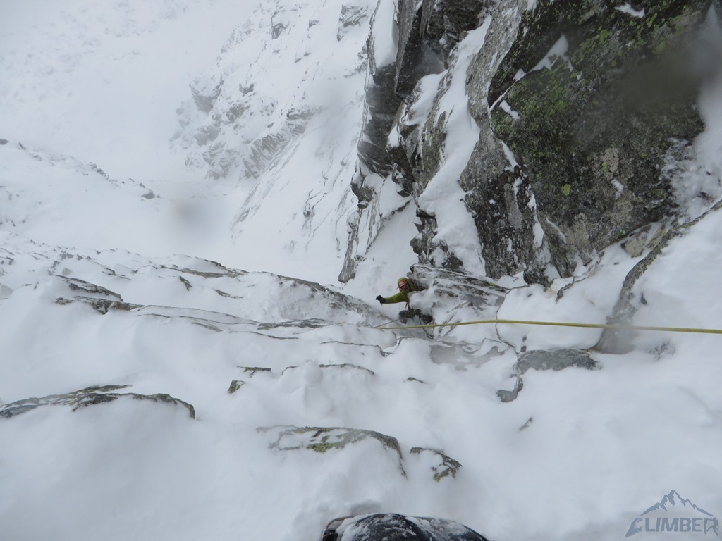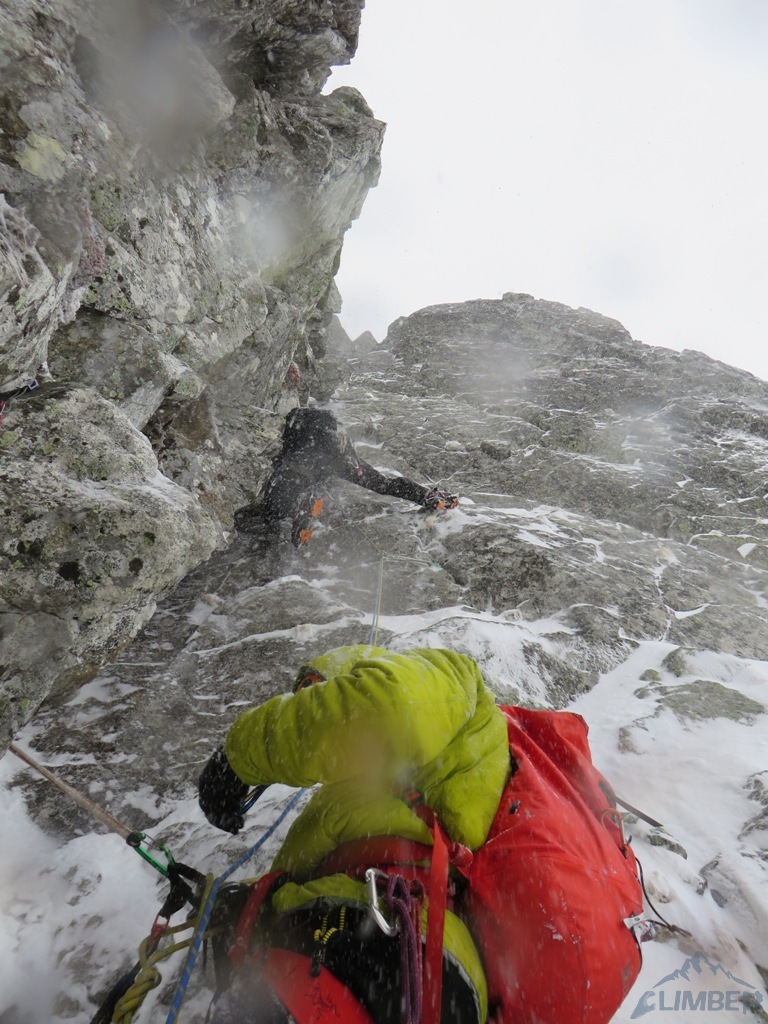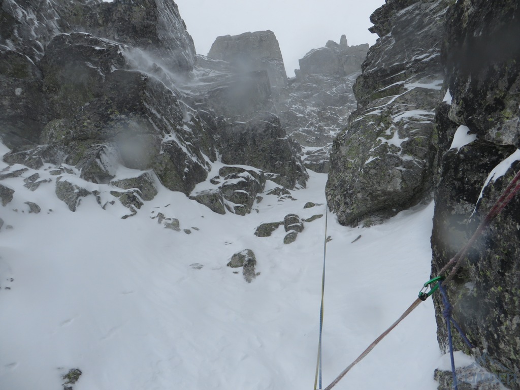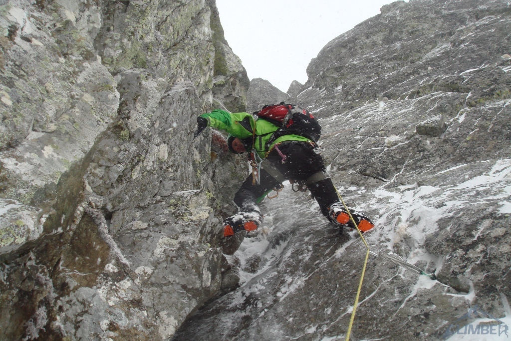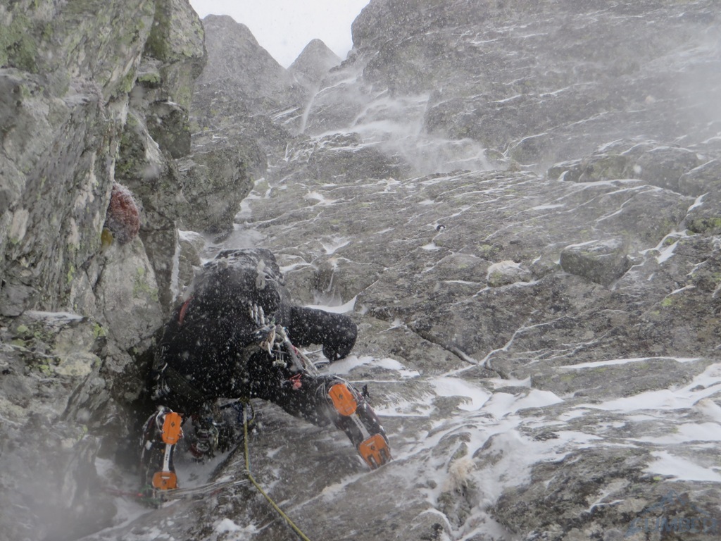 Niedosyt wspinaczkowy po obozie dał się we znaki, więc mimo słabych prognoz pogody namawiam Jacka i Ryśka na wyjazd w Tatry. Po krótkiej dyskusji decydujemy się na podejście Doliną Staroleśną pod Sławkowską Kopę, by w zależności od warunków wybrać coś na miejscu. Nasz wybór pada na drogę Havraní vlasy, wyprowadzającą na przełęcz pomiędzy Warzęchowymi Strażnicami. Decyzja by nie wchodzić w nic dłuższego i trudniejszego (na Vlasach mamy dwa krótkie wyciągi z trudnościami, reszta to teren do żywcowania) okazuje się bardzo dobra bo pogoda zamiast się polepszać, ulega załamaniu. To powoduje, że mimo iż wspinanie nie zajmuje nam długo (2 godziny), z drogi zjeżdżamy - zejść z powodu warunków na drugą stronę się nie dało. Kluczowy wyciąg (wariant M5-) jest bardzo fajny, wspominać go jednak będziemy również ze względu na sypiące się z góry pyłówki 😊.
