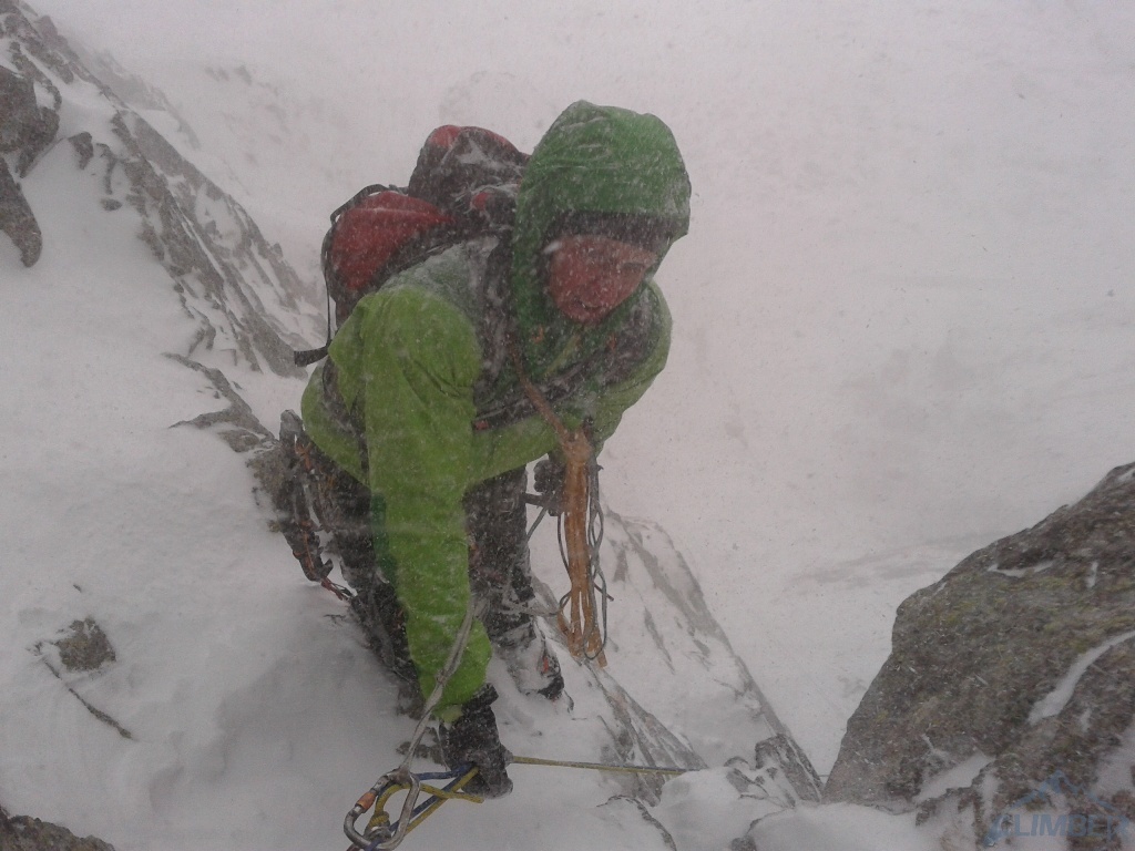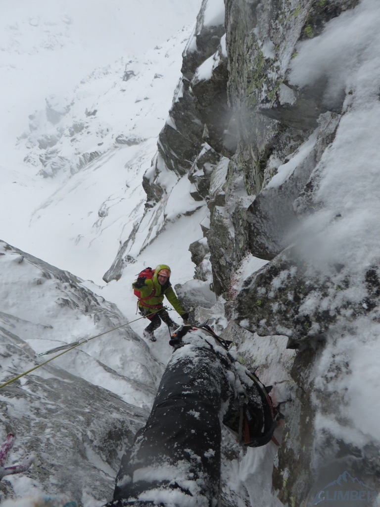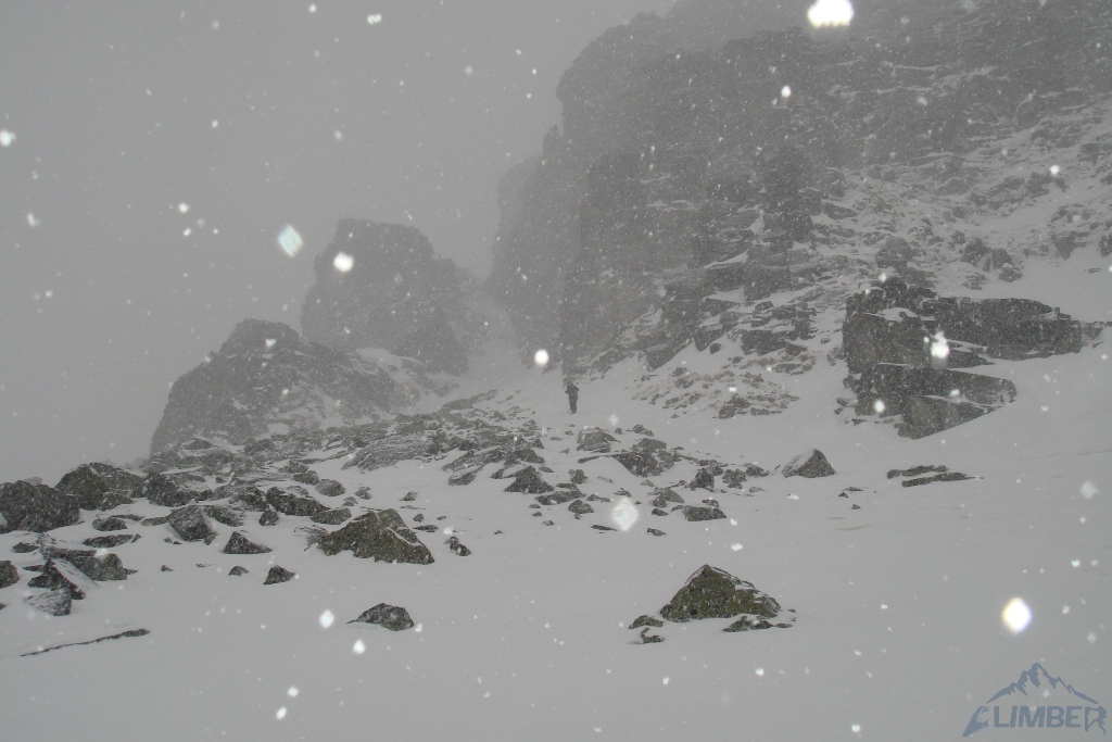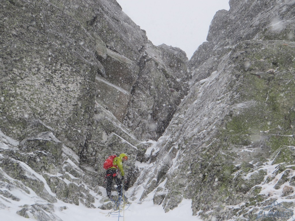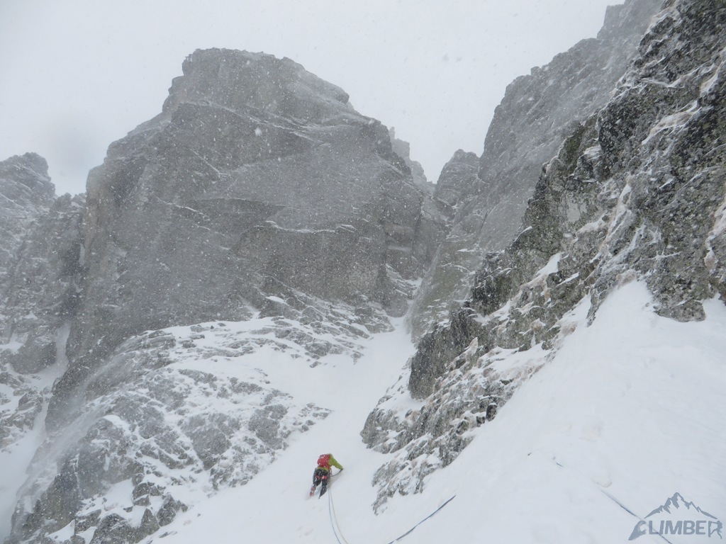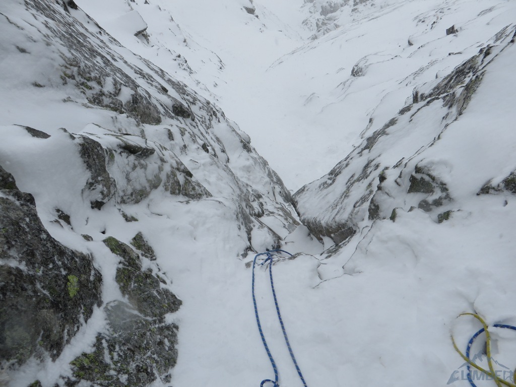 Niedosyt wspinaczkowy po obozie dał się we znaki, więc mimo słabych prognoz pogody namawiam Jacka i Ryśka na wyjazd w Tatry. Po krótkiej dyskusji decydujemy się na podejście Doliną Staroleśną pod Sławkowską Kopę, by w zależności od warunków wybrać coś na miejscu. Nasz wybór pada na drogę Havraní vlasy, wyprowadzającą na przełęcz pomiędzy Warzęchowymi Strażnicami. Decyzja by nie wchodzić w nic dłuższego i trudniejszego (na Vlasach mamy dwa krótkie wyciągi z trudnościami, reszta to teren do żywcowania) okazuje się bardzo dobra bo pogoda zamiast się polepszać, ulega załamaniu. To powoduje, że mimo iż wspinanie nie zajmuje nam długo (2 godziny), z drogi zjeżdżamy - zejść z powodu warunków na drugą stronę się nie dało. Kluczowy wyciąg (wariant M5-) jest bardzo fajny, wspominać go jednak będziemy również ze względu na sypiące się z góry pyłówki 😊.