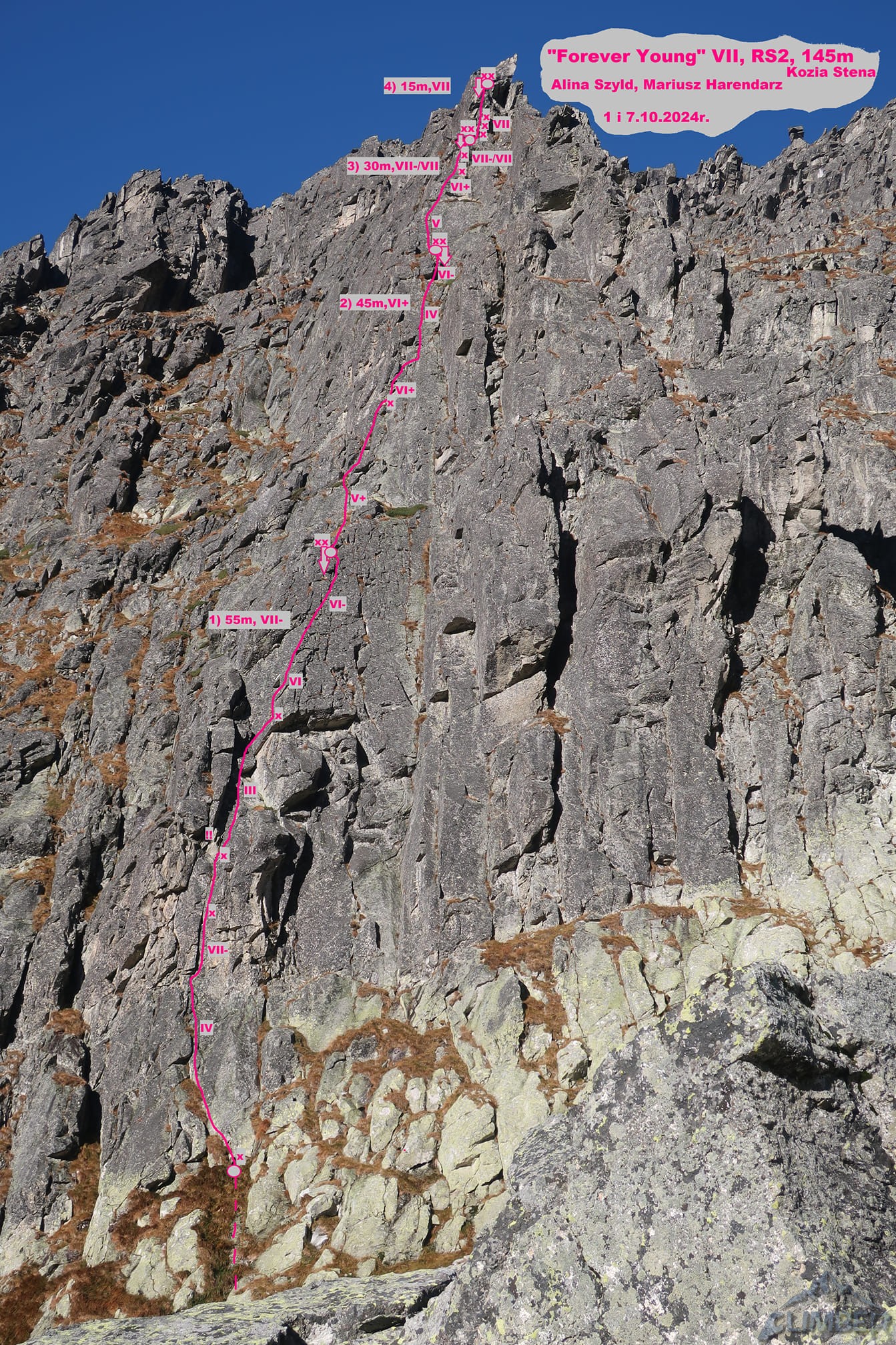 Wyjątkowo pogodny długi weekend w Tatrach rozpoczynamy od wizyty na Skrajnej Liptowskiej Turni. Jesienią zeszłego roku na jej południowo-wschodniej ścianie nową drogę Forever Young (VII) otworzyli Alina z Mariuszem czyli bratnie tatrzańskie dusze 😊. Intensywne kolejne dwa dni w zanadrzu oraz fakt, że piątek jest pierwszym dniem po opadach, do tego z dość mroźnym wiatrem sprawia że cel idealnie pasuje do planu. Droga okazuje się godna polecenia - ma logiczny przebieg i kilka ciekawych pasaży w ładnej skale, do tego gotowe stanowiska zjazdowe oraz kilka spitów, które dobrze uzupełnia własna asekuracja. Wydaje się więc w tym momencie najciekawszą linią na ścianie i popularnością przebić powinna powtarzaną co jakiś czas Sumę Wszystkich Strachów (relacja z niej TUTAJ).