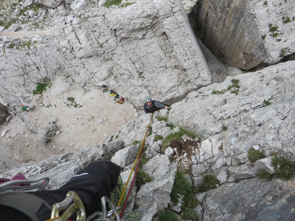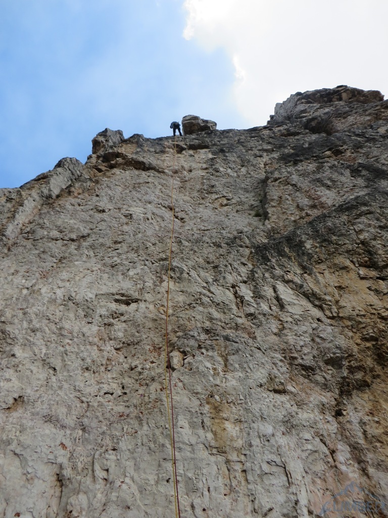 Korzystając z tego, że nadal nie pada postanawiamy wbić się w 3-wyciągową drogę sportową o wycenie VI.1+ ale niestety po zrobieniu jednego wyciągu musimy zjeżdżać bo okazuje się, że coś źle zostaliśmy poinformowani (nie mamy topo) i wbiliśmy w Mimozę (V+) 😊.