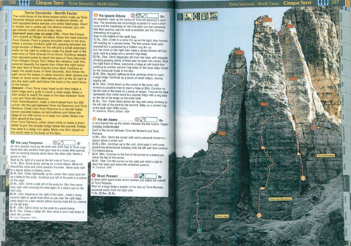 Diedro Scoiattoli (Zacięcie Północne), Torre Romana i Armida, Torre Grande (Cinque Torri)