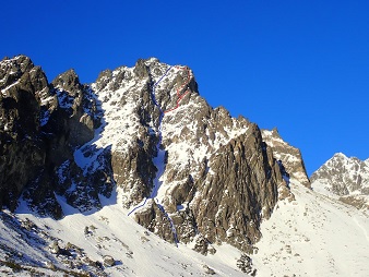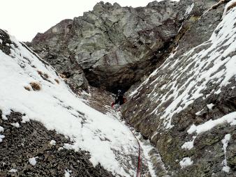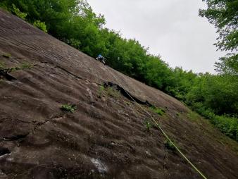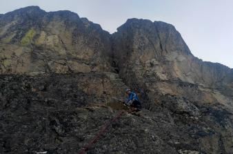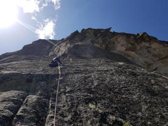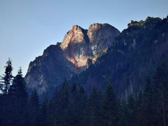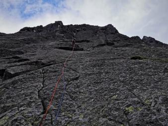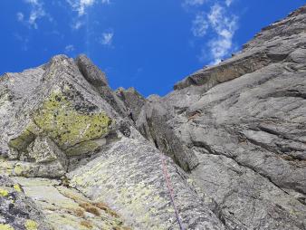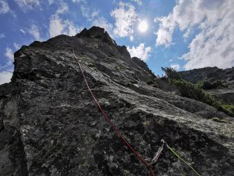 Poniedziałek to trzeci (na szczęście ostatni taki) dzień z pogodą w kratkę, dlatego też wracamy na południową ścianę Pierwszej Turni Selli - pierwszego dnia, zaraz po przyjeździe, robiliśmy tutaj drogę Delenda Carthago. Tym razem w planach mamy rozgrzewkę na tradowym klasyku (Trenker Crack) i spróbowanie Icterusa (6c+/7a w zależności od topo), o ile ściana wyschnie i nie zdąży jej ponownie zalać... Pierwsza droga jest bardzo popularna i prawie zawsze ktoś się na niej wspina – na szczęście uprzejmy zespół przepuszcza nas przodem, a my obiecujemy, że będziemy się sprężać 😊.